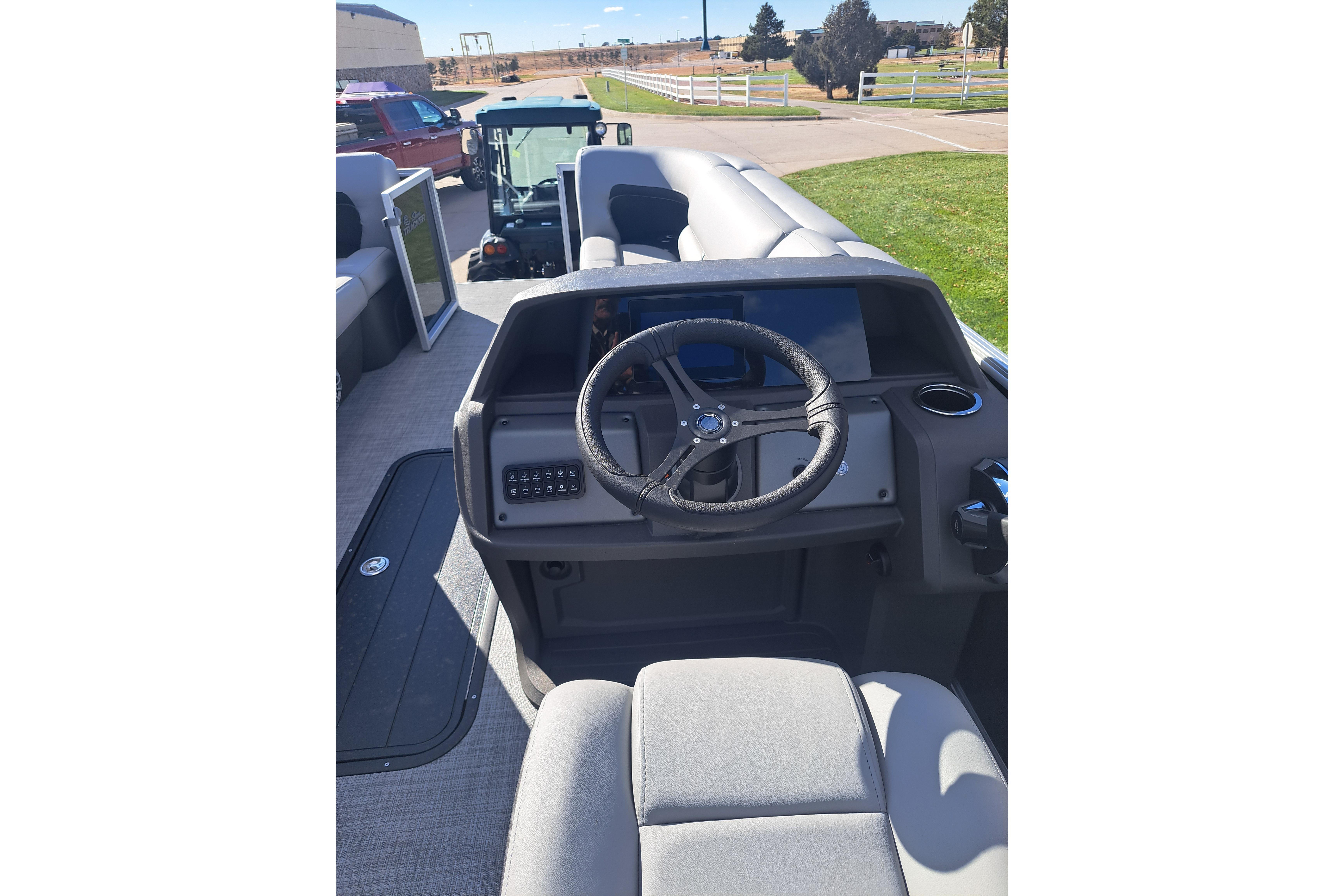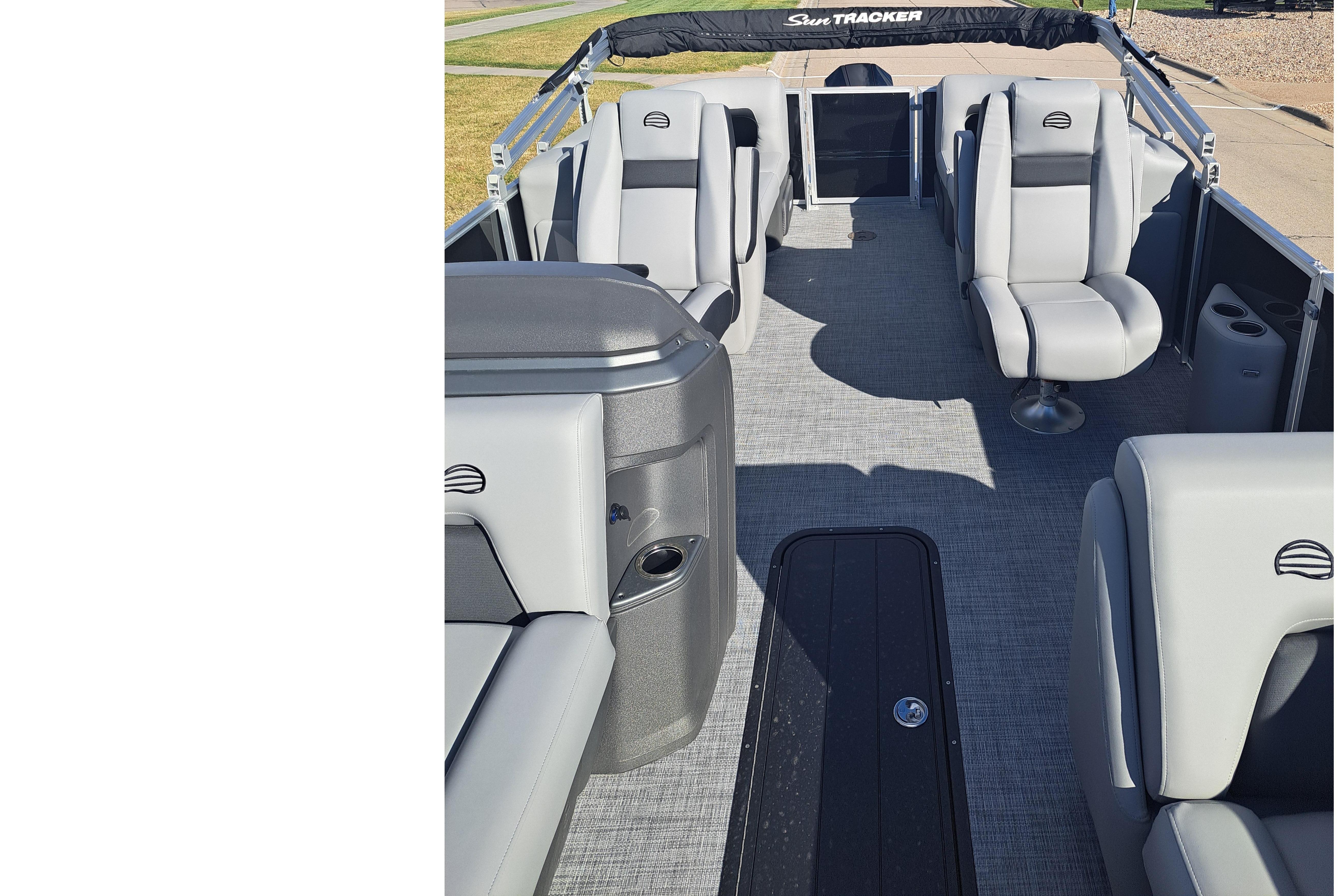This year's 22 XP3 has an all-new interior has some exciting new features, including backrest cubbies that increase storage space and add extra cupholders that can keep larger bottles out of the way. The couches have bright accents that match the fence colors for an extra splash of style. The driver's console also got a big facelift with upgraded tech, making the PARTY BARGE the best-looking pontoon on the lake.