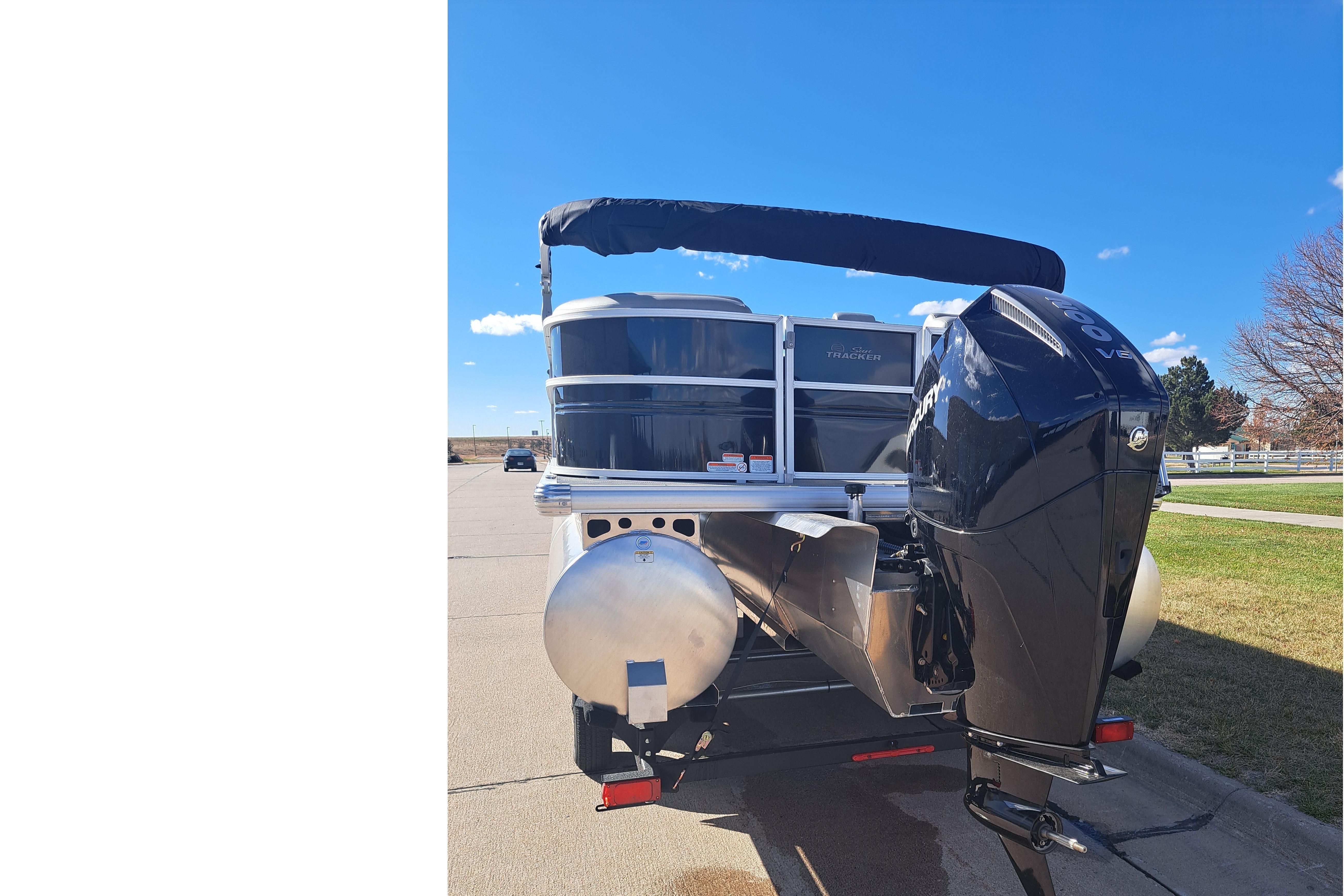 • 10' (3.05 m) Black SUN TRACKER® QuickLift™ Bimini top w/LED courtesy lights, storage pockets & protective boot