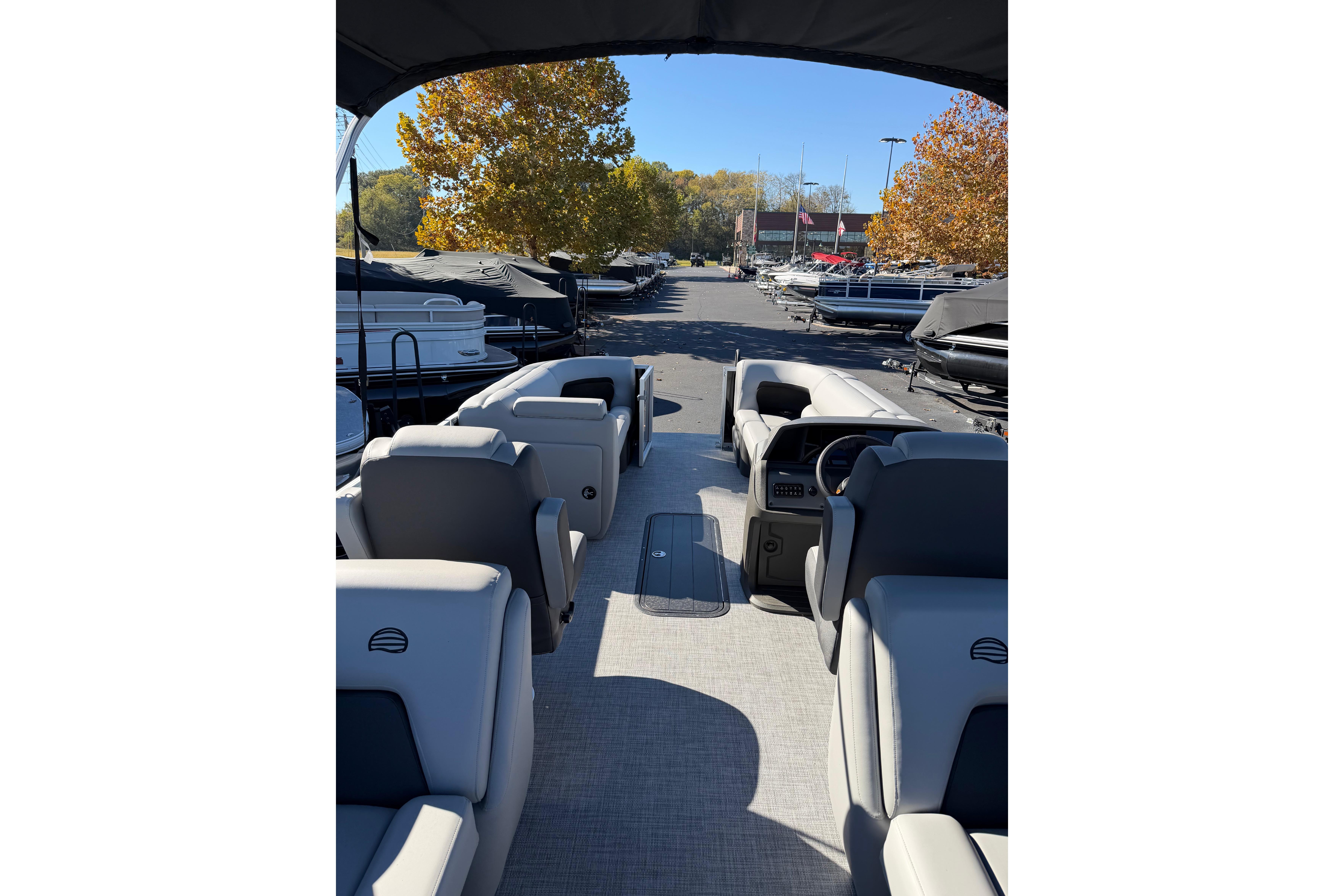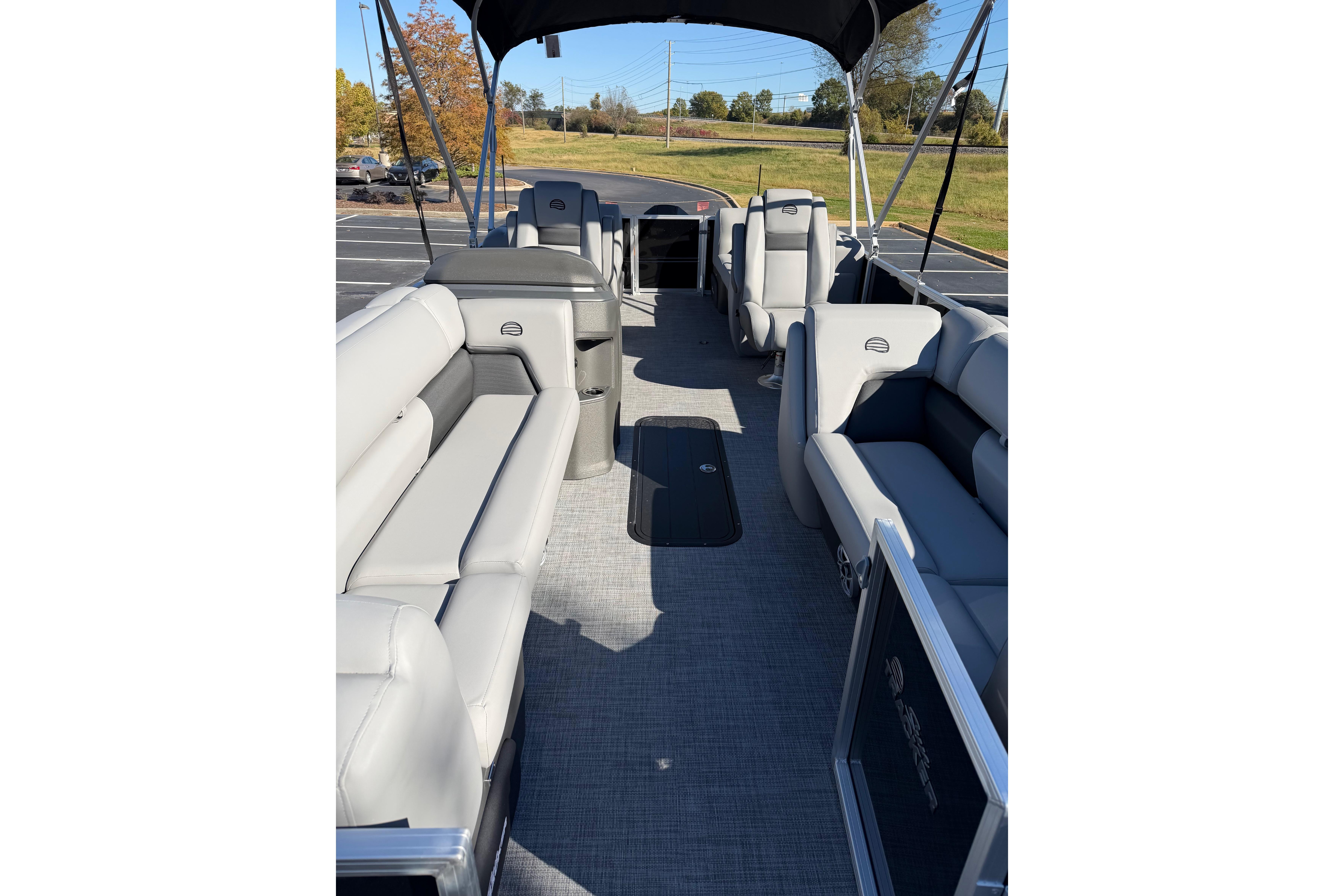 This year's 22 XP3 has an all-new interior has some exciting new features, including backrest cubbies that increase storage space and add extra cupholders that can keep larger bottles out of the way. The couches have bright accents that match the fence colors for an extra splash of style. The driver's console also got a big facelift with upgraded tech, making the PARTY BARGE the best-looking pontoon on the lake.