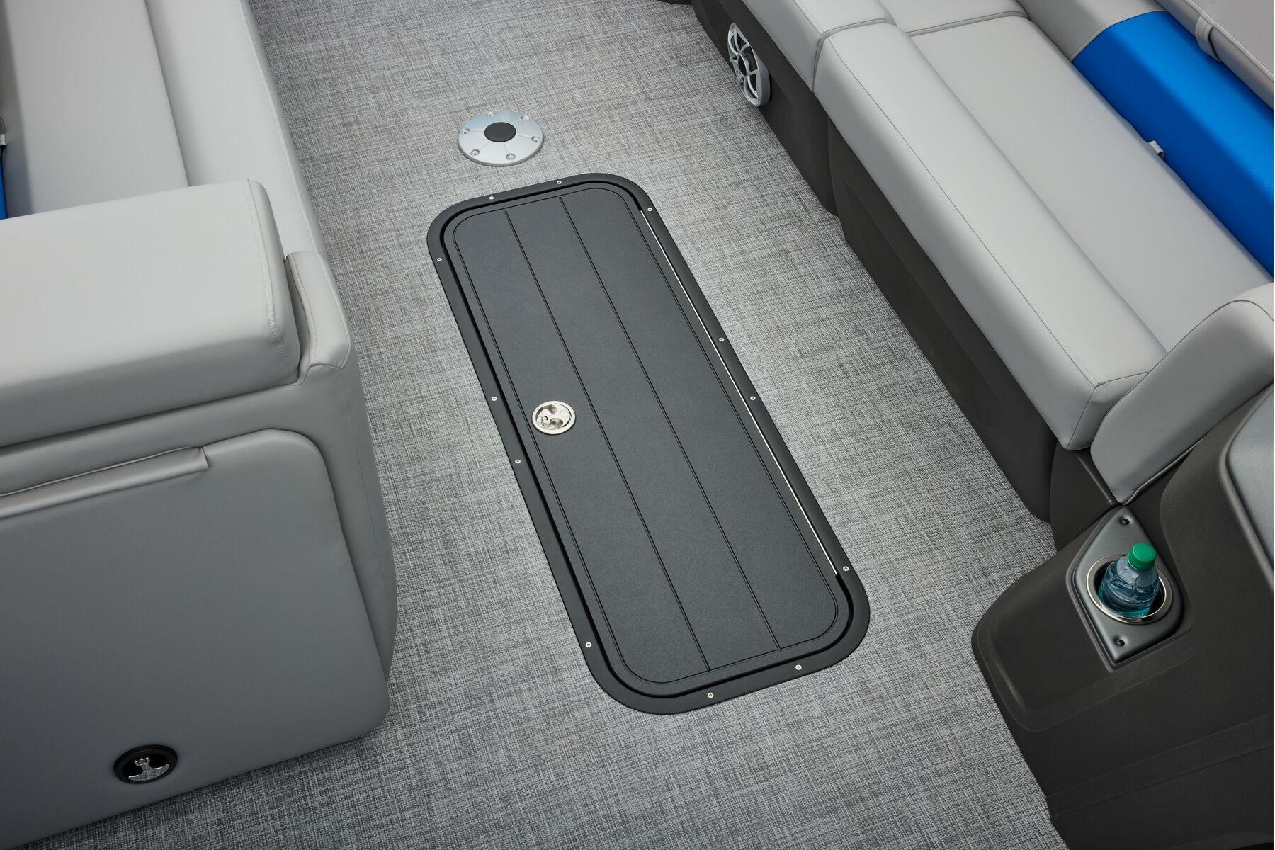 • In-floor lighted storage compartment — 88" (2.24 m) long, 23" (58.42 cm) deep — w/bilge pump in center log