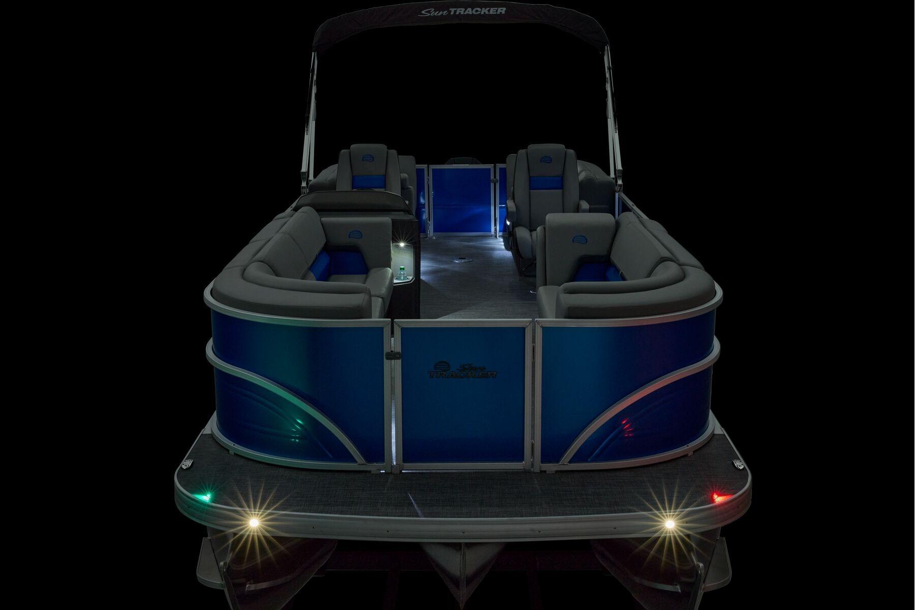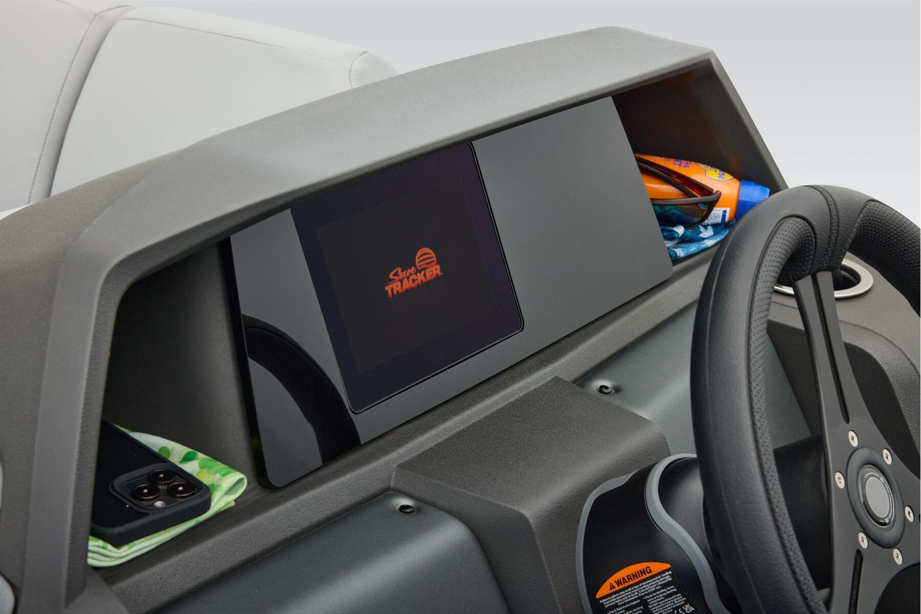 The captain can control everything through the completely redesigned console's new SUN TRACKER FLARE™ touch-screen gauge display with an improved GPS system and upgraded four-speaker Bluetooth®-capable stereo.