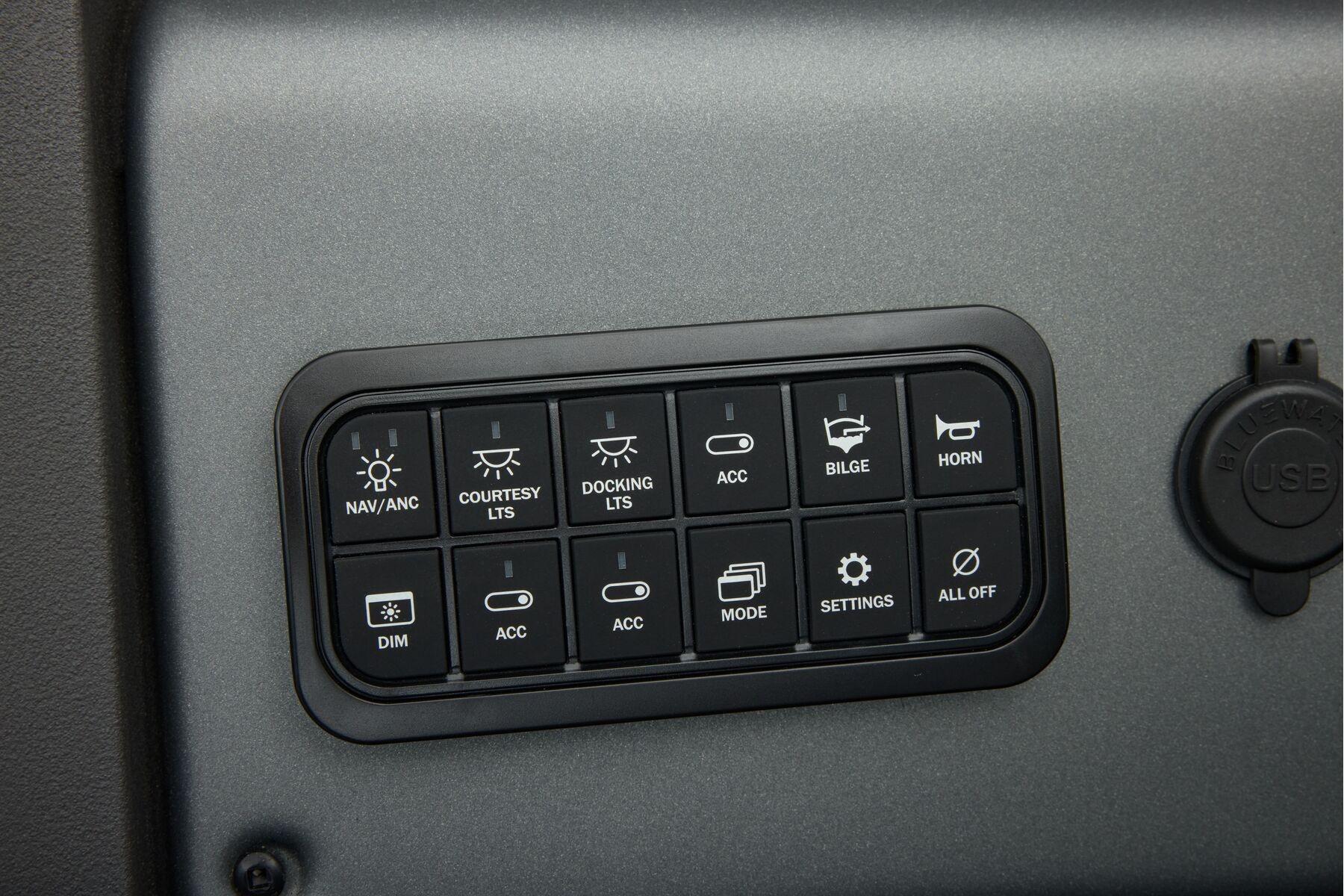 • Easy-access marine-grade automotive-style fuse panel w/latching fuse block door