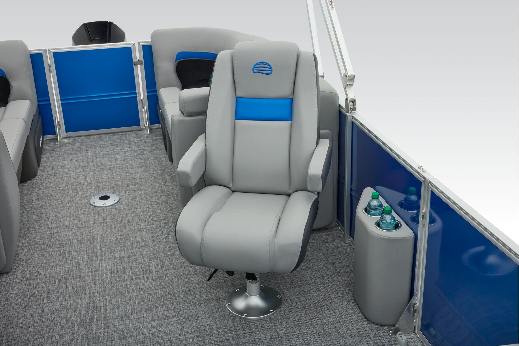 • Reclining, high-back swiveling port & helm bucket seats w/self-leveling armrests
