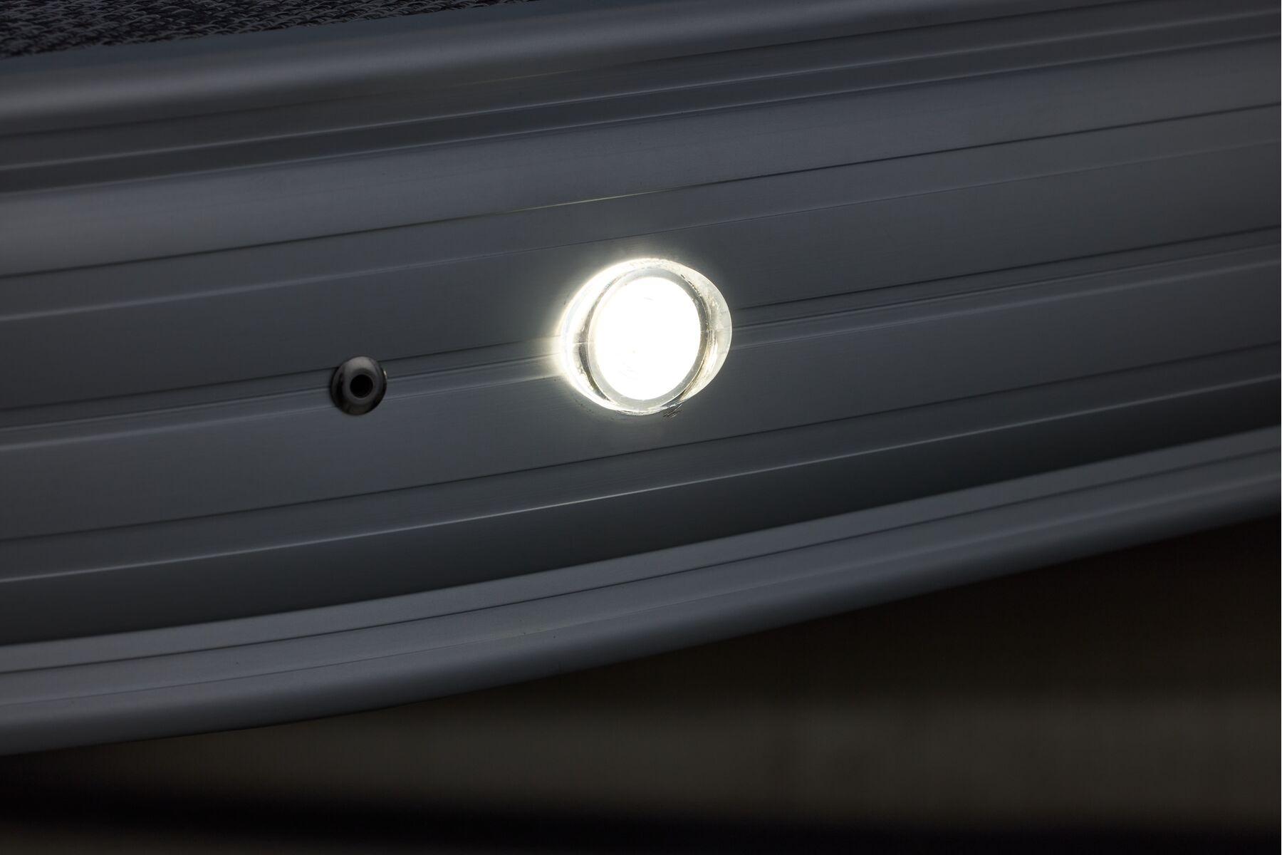 • 10' (3.05 m) Black SUN TRACKER® QuickLift™ Bimini top w/LED courtesy lights, storage pockets & protective boot