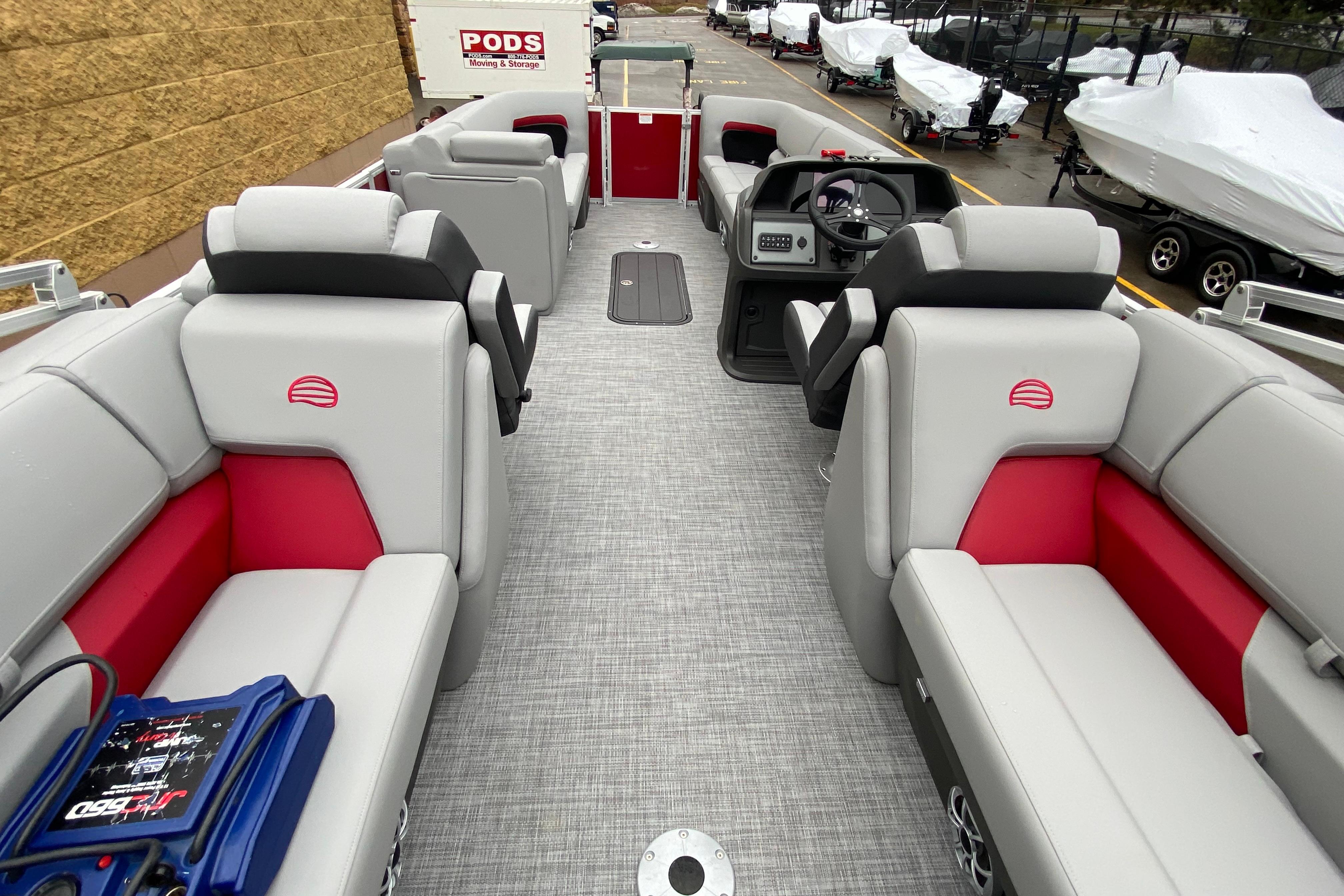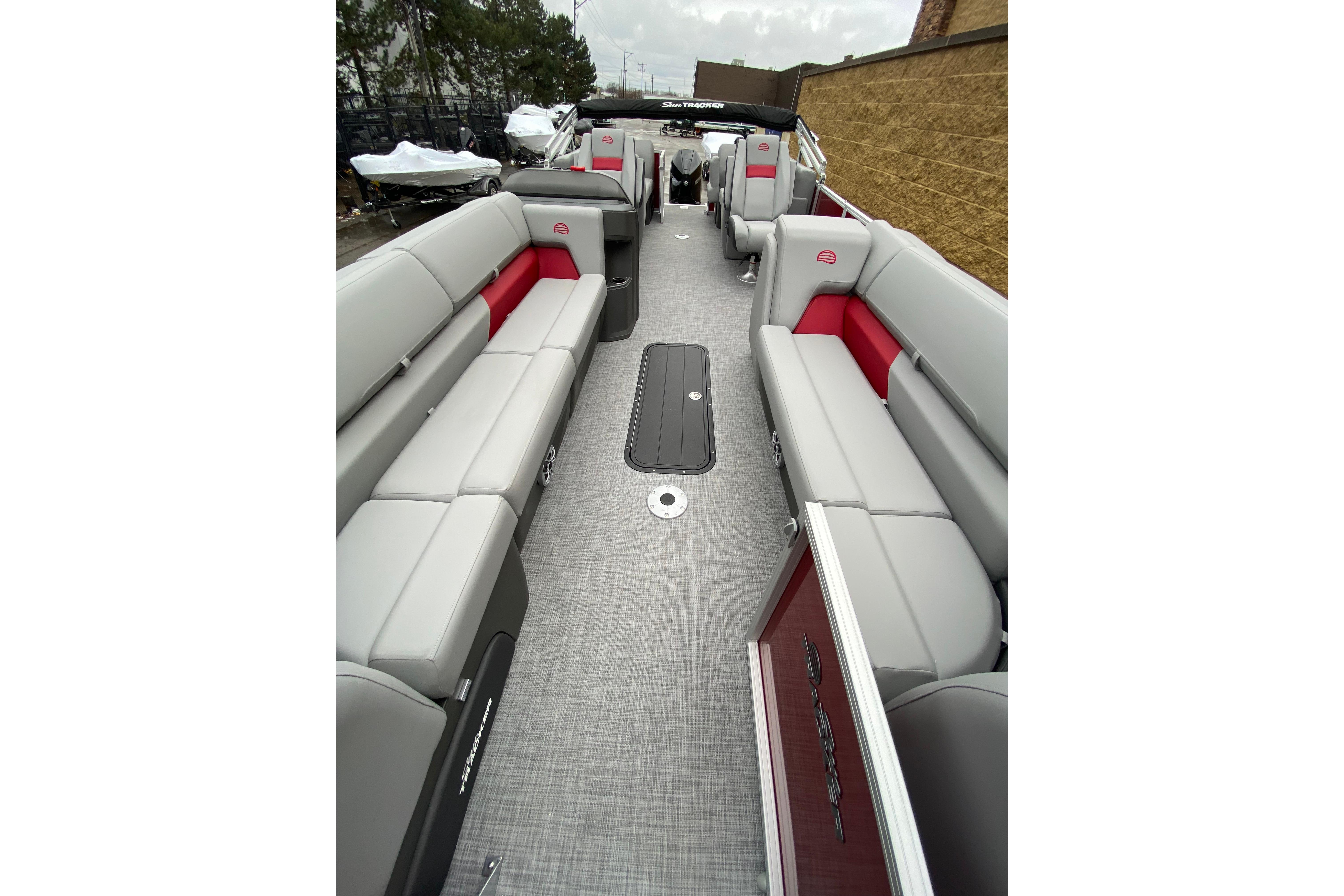 The captain can control everything through the completely redesigned console's new SUN TRACKER FLARE™ touch-screen gauge display with an improved GPS system and upgraded four-speaker Bluetooth®-capable stereo.