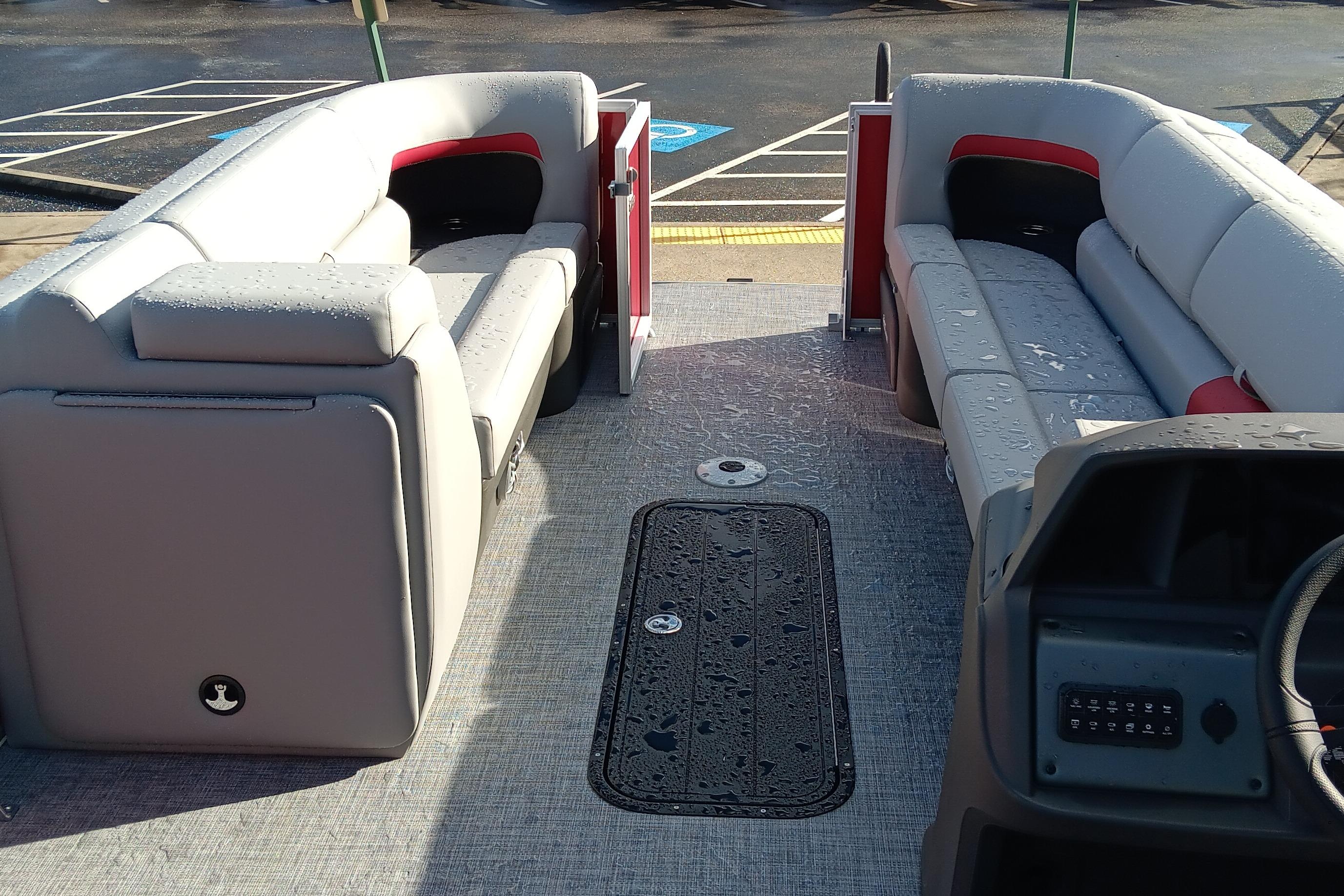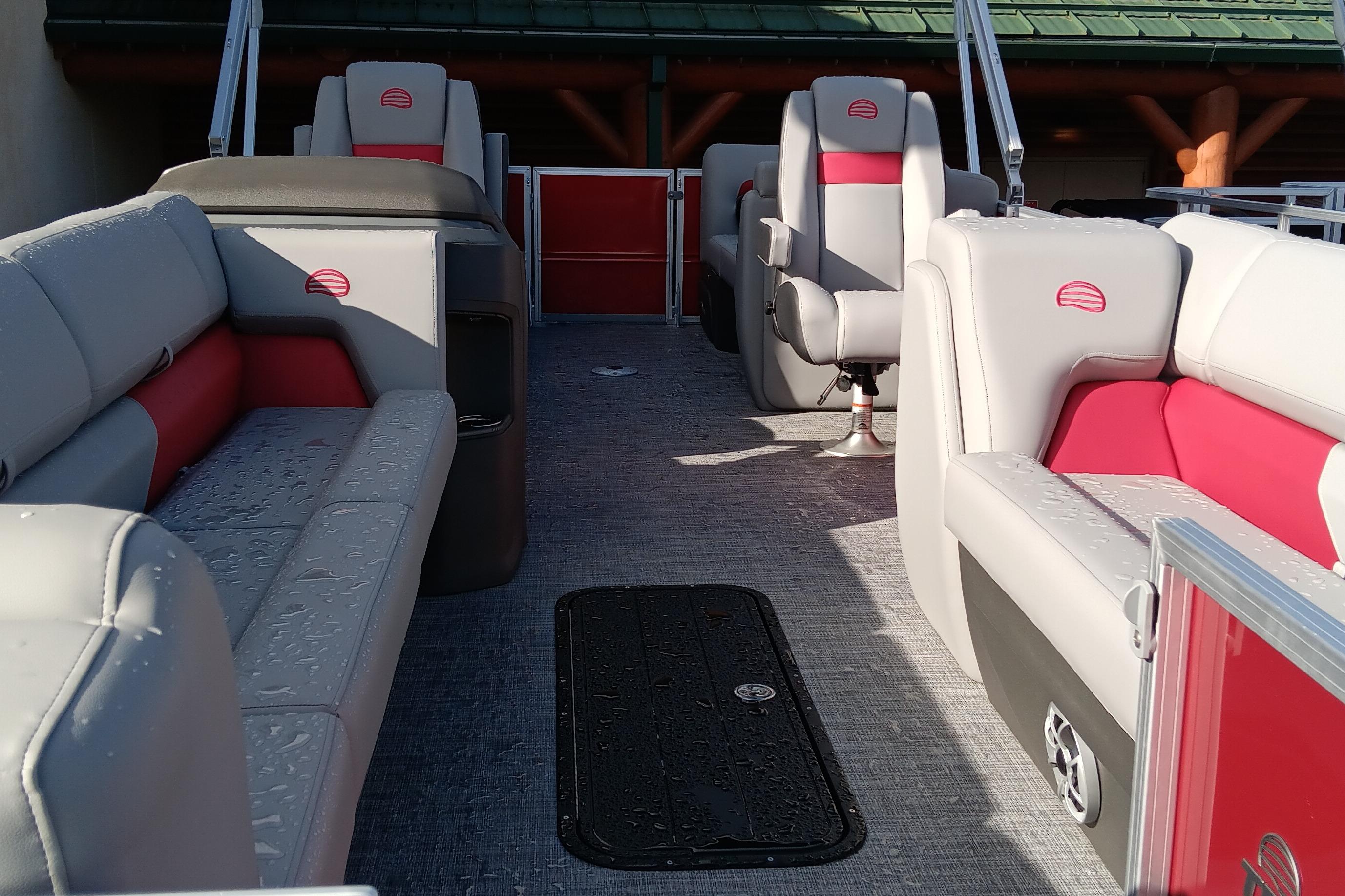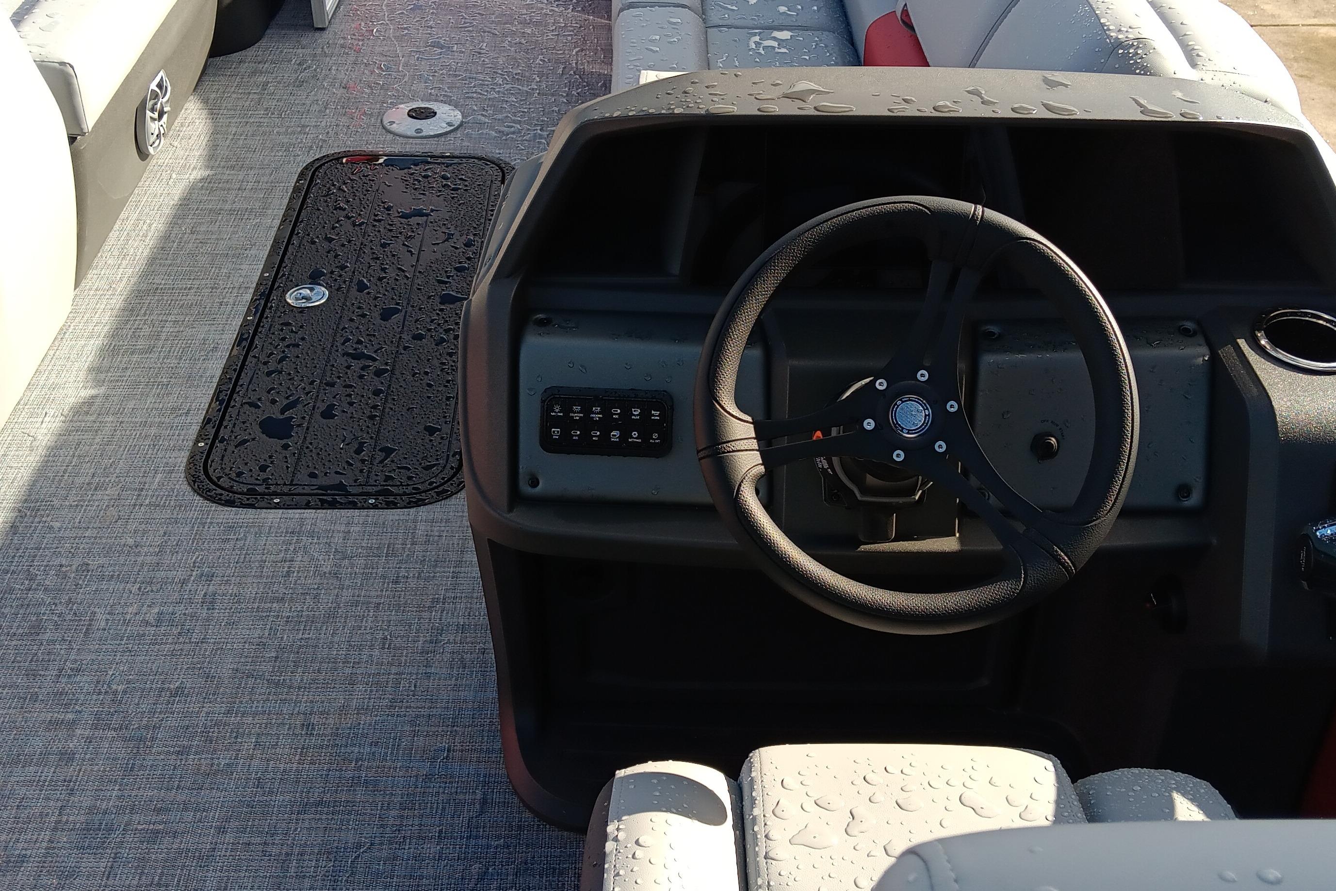 The captain can control everything through the completely redesigned console's new SUN TRACKER FLARE™ touch-screen gauge display with an improved GPS system and upgraded four-speaker Bluetooth®-capable stereo.