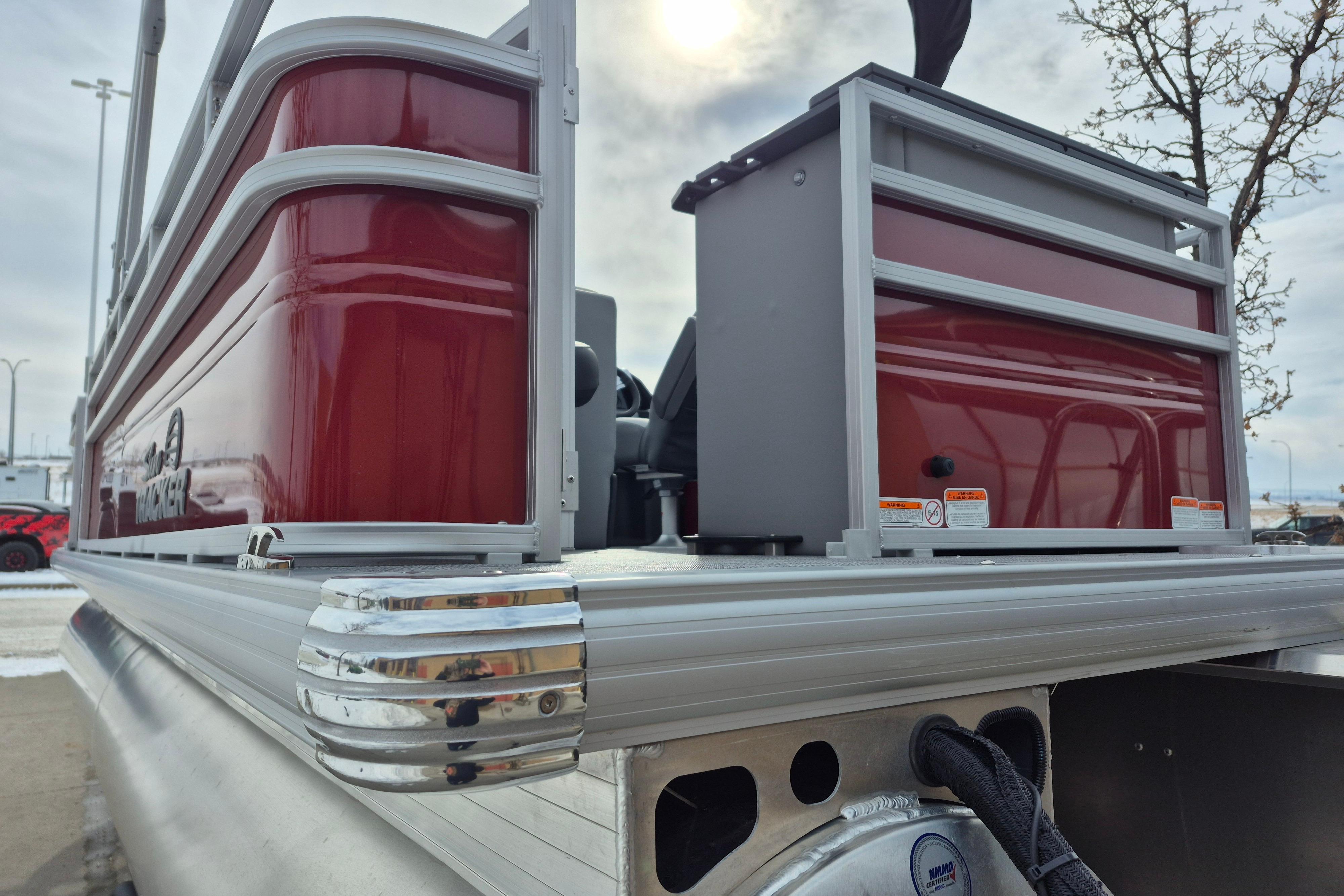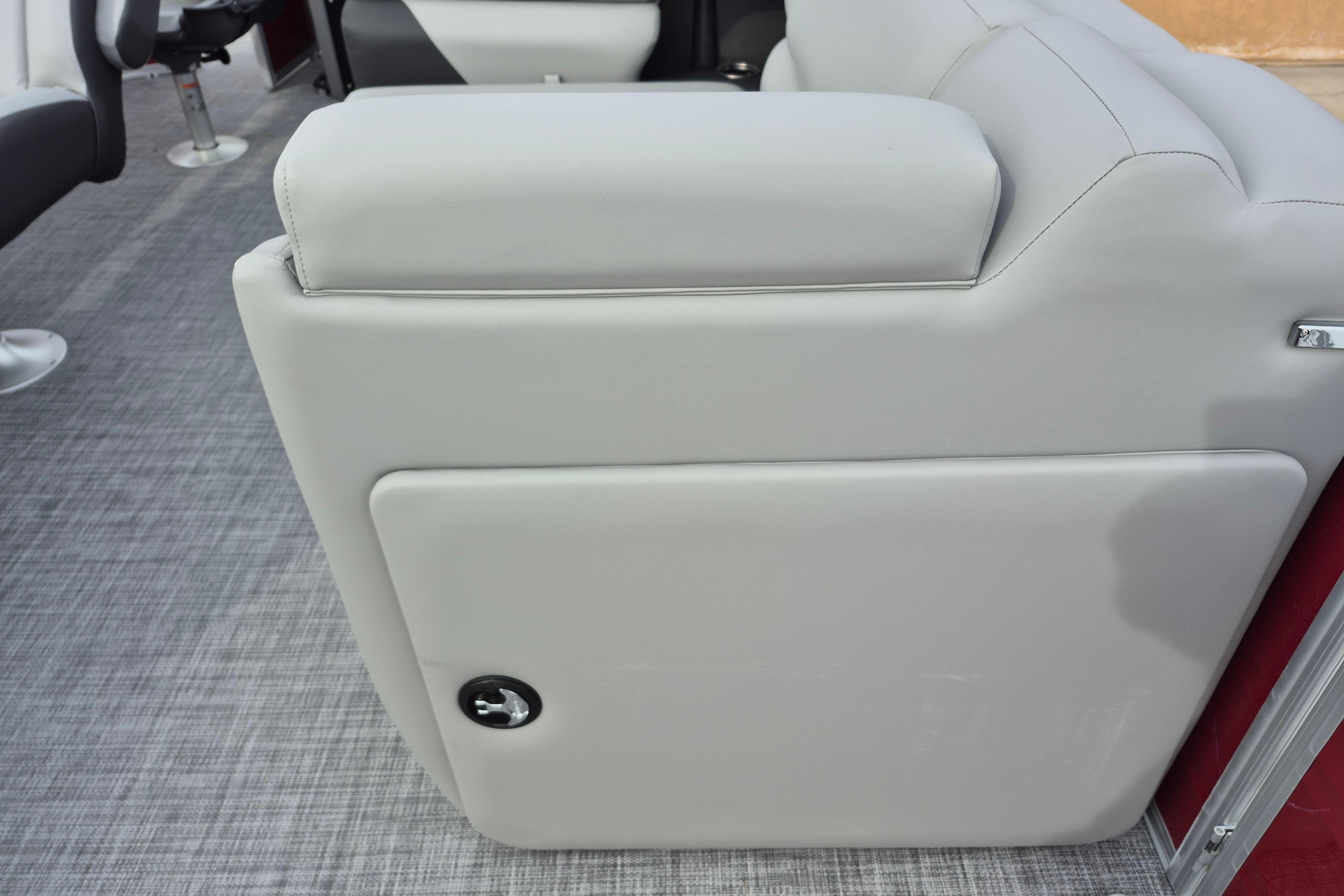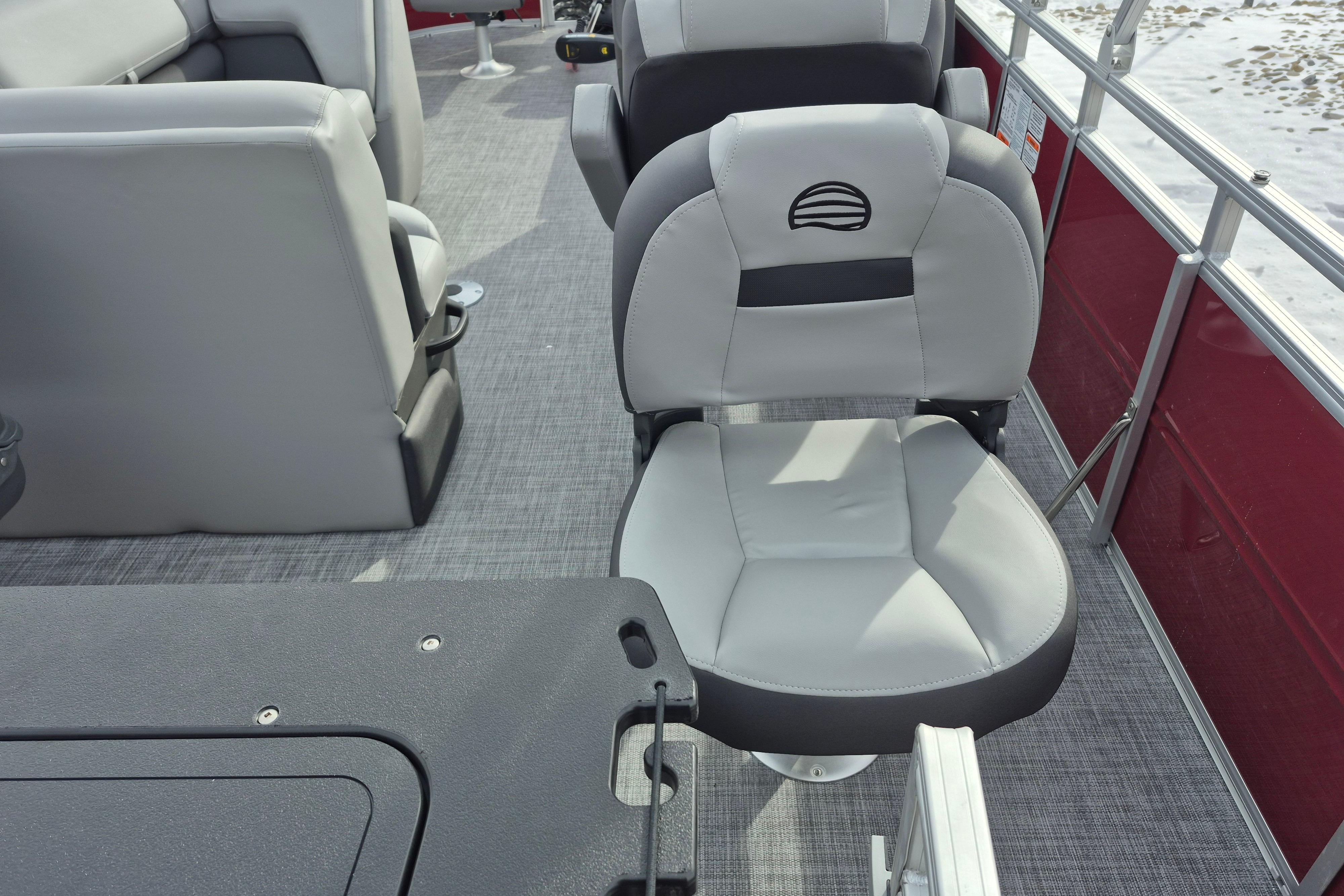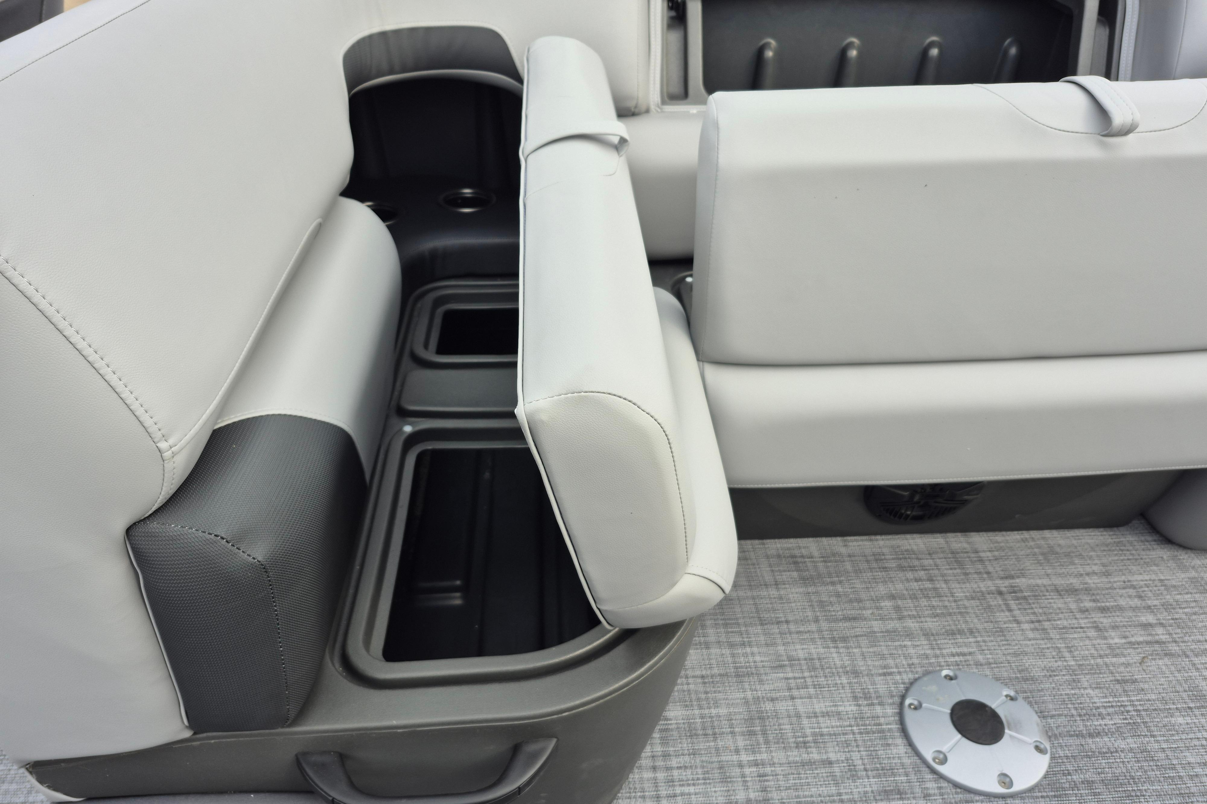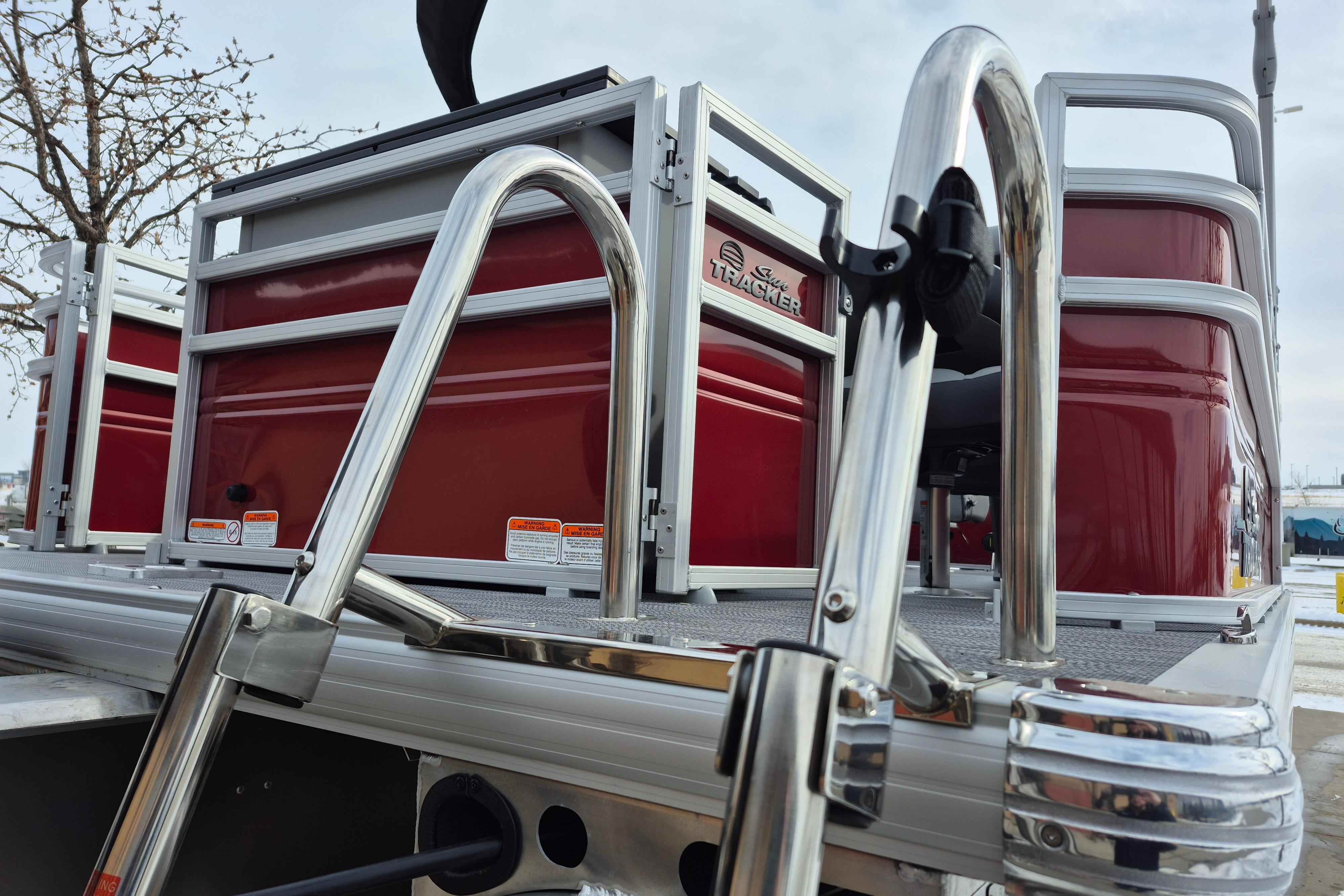 The party for up to 10 people starts with the dual lounges that boast STOW MORE™ compartments for packing and securing supplies. The 2026 model adds a new, wider ladder that makes reboarding easier. The new year also brings cut-out sections in the backrests that give you more cupholders and space for gear. For the anglers, there are swiveling pedestal fishing chairs on both ends of the pontoon and an 8-gal. aerated livewell complete with a rod holder and a composite lid with an integrated fish ruler.