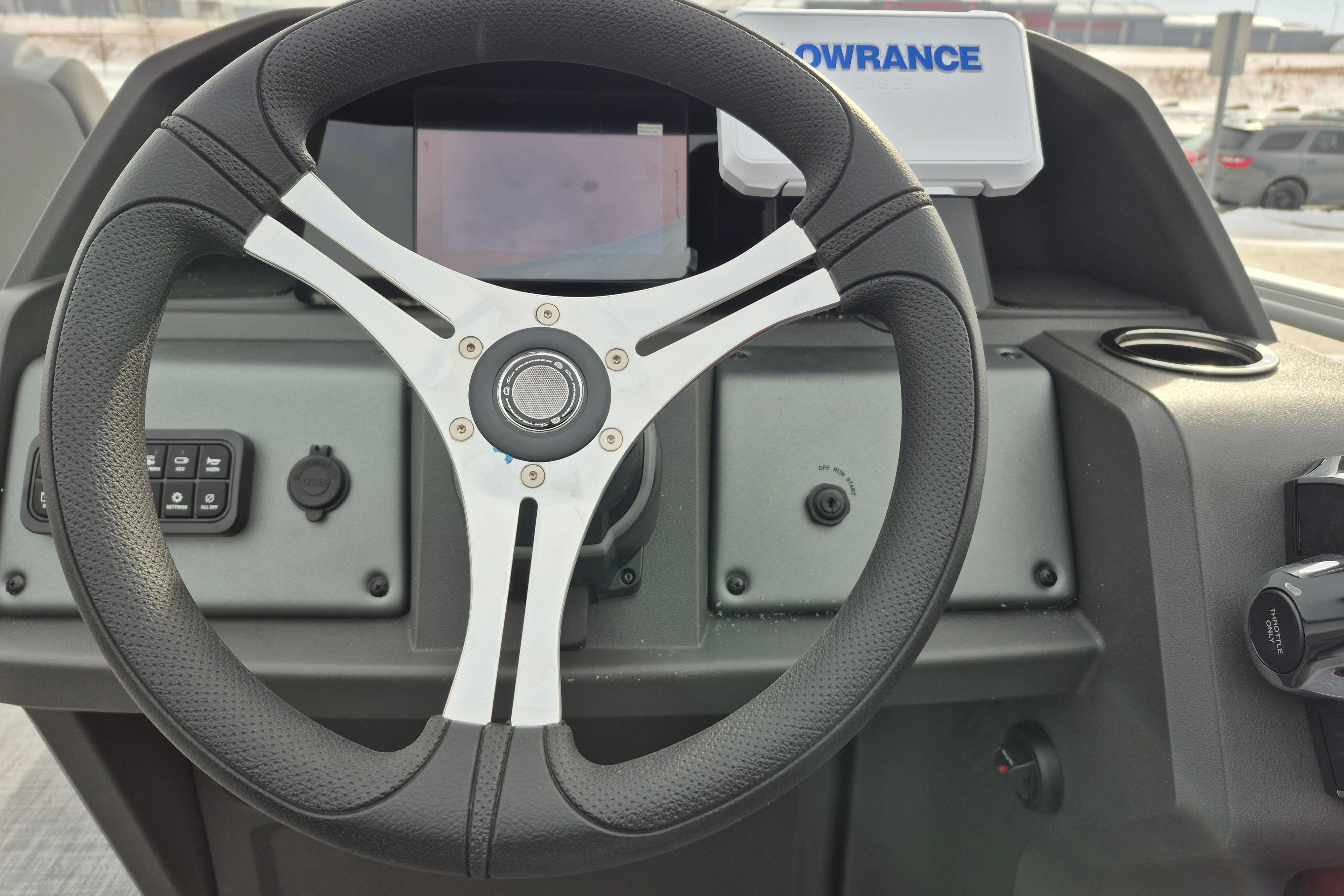 • SUN TRACKER FLARE™ touchscreen gauge display w/NEW integrated GPS & NEW stereo control