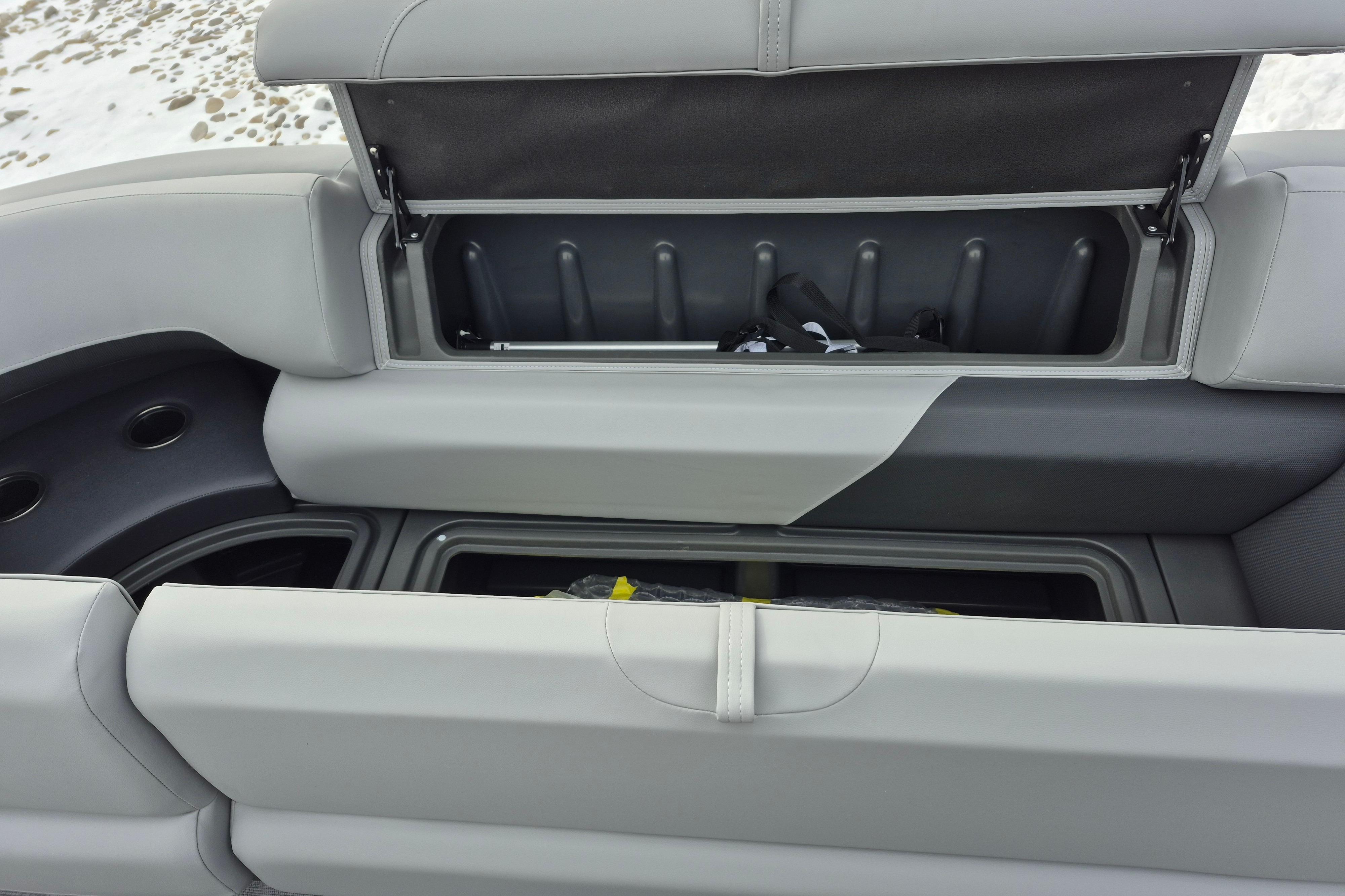• Aft L-lounge couches w/STOW MORE™ & underseat, lockable storage