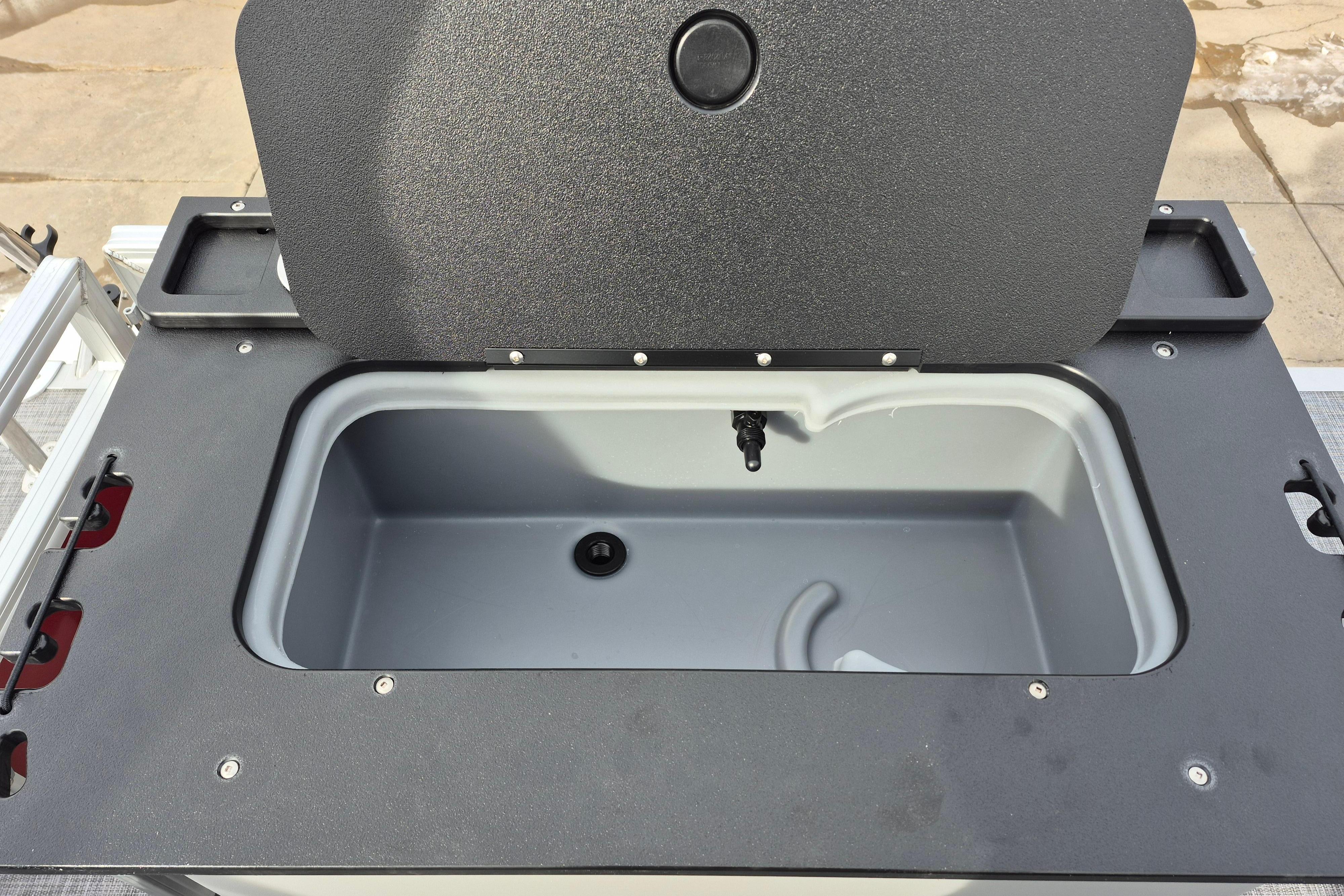 • Aft 15-gal. (56.78 L) aerated livewell/baitwell w/shutoff valve, drink holder, rod holder & composite lid w/fish ruler