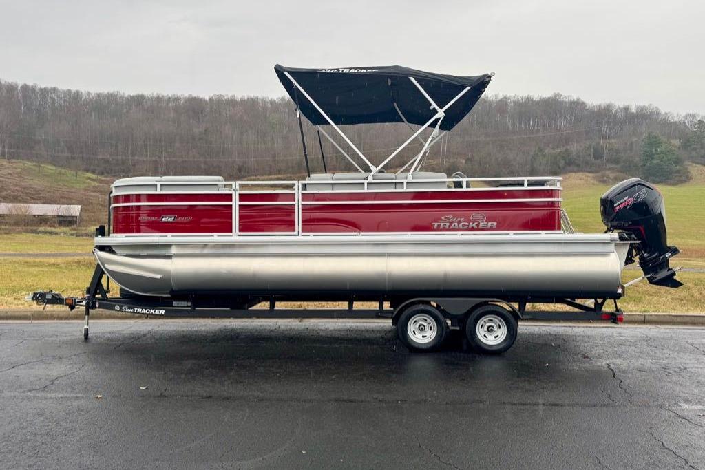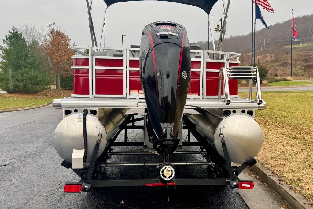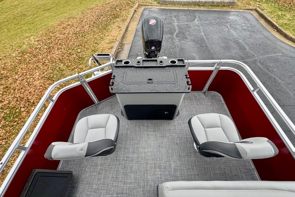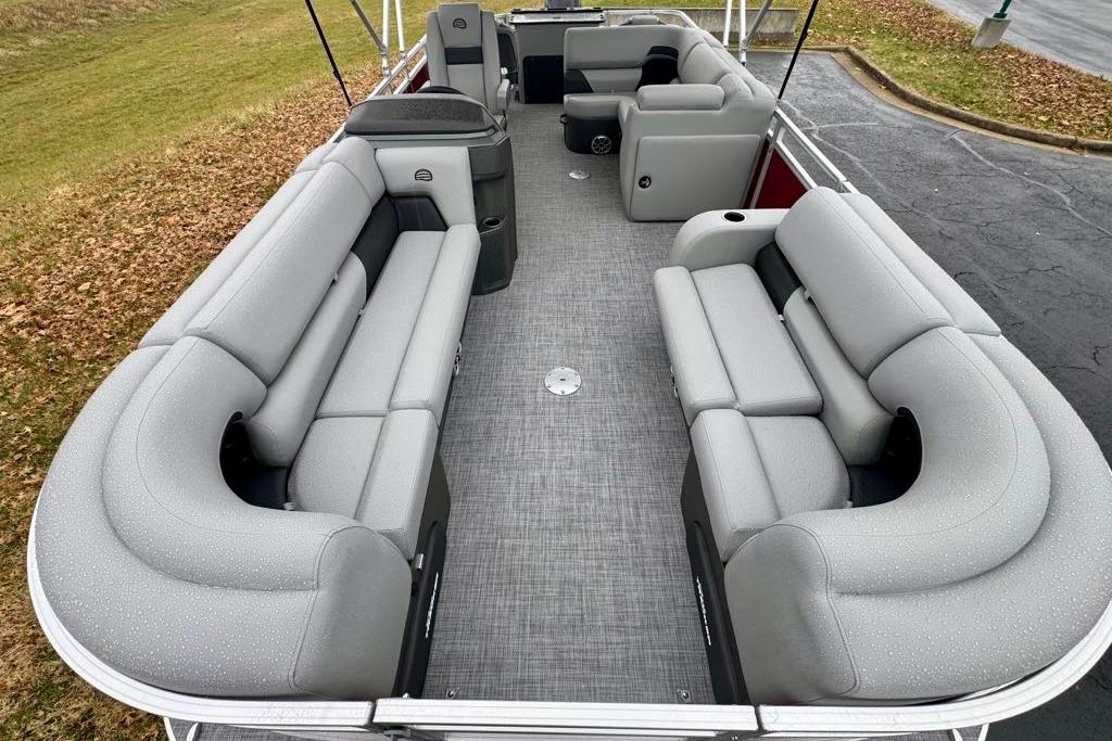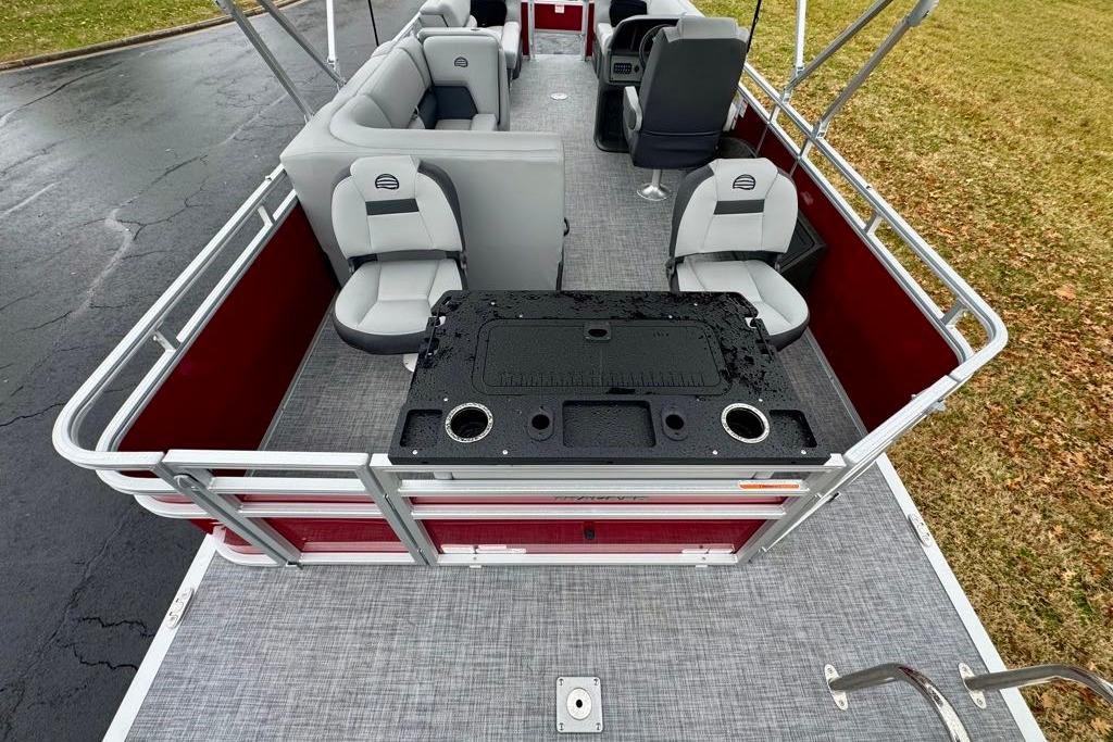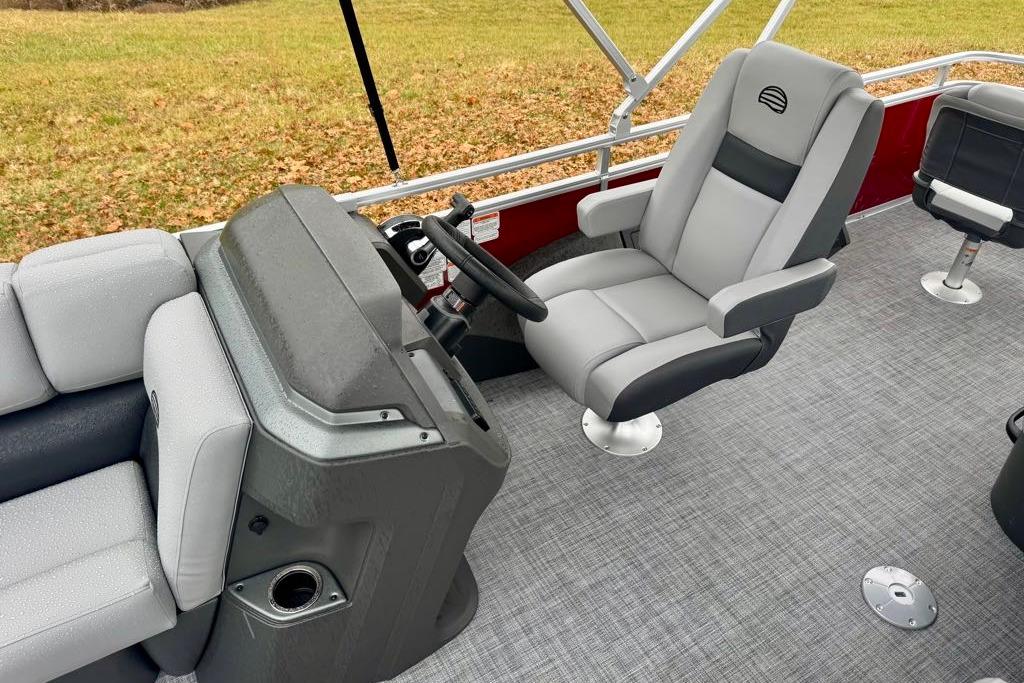 This is the fishing pontoon the whole family can enjoy. This SPORTFISH introduces a third lounge and pushes back the second casting chair to the aft casting deck. The 22 DLX also introduces a lockable rod box that can fit up to six rods. The 2026 model year brings some fine-tuned changes, including a wider boarding ladder, open storage spaces with cupholders built into the seatbacks, and more.