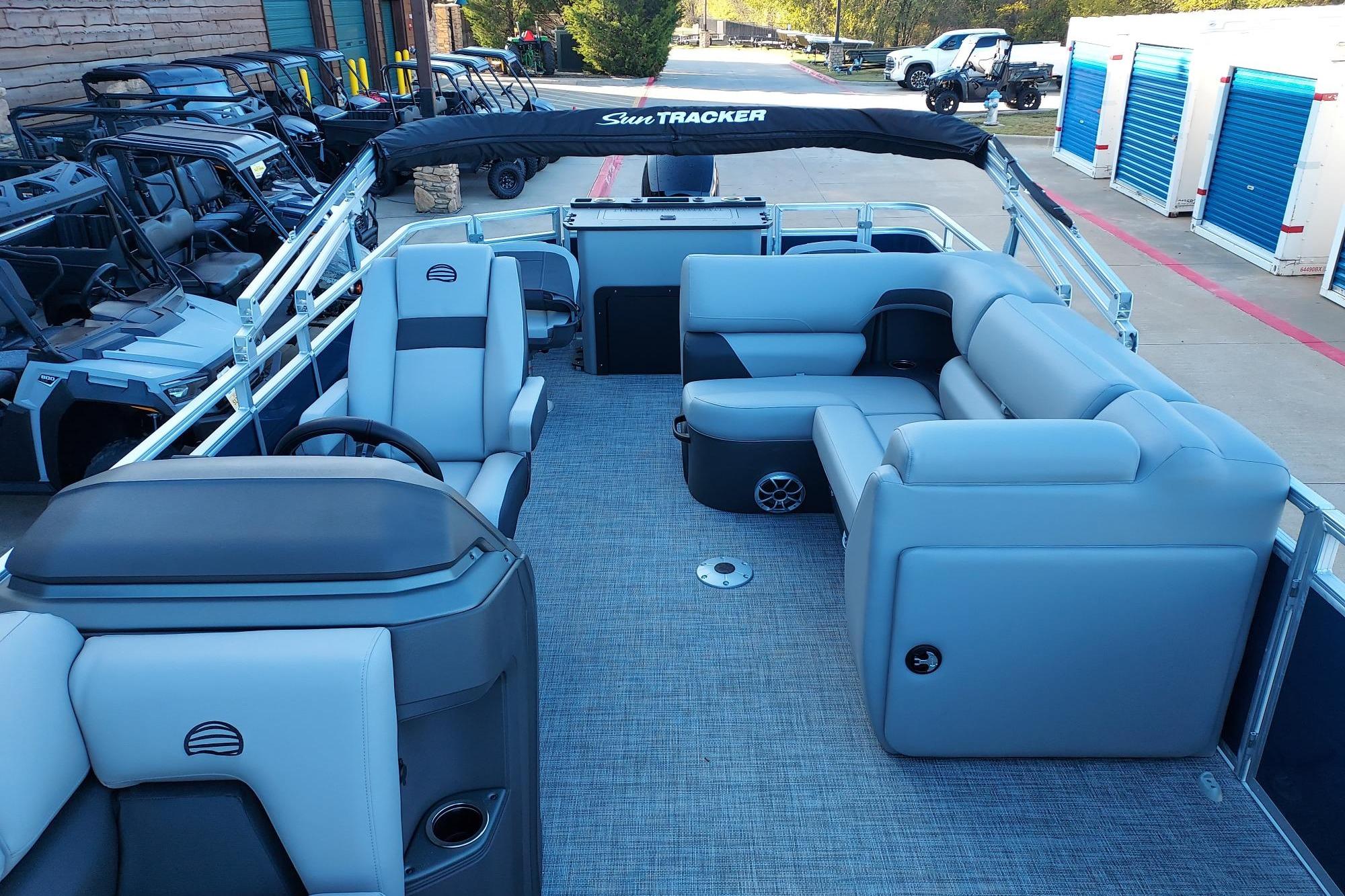 The 2026 SUN TRACKER® SPORTFISH™ 22 DLX lends itself to creating the best days of the summer for up to 10 passengers. Whether you’re relaxing on one of the three lounges under the 10' bimini or casting from the dual aft fishing chairs, you’re in for a good time.