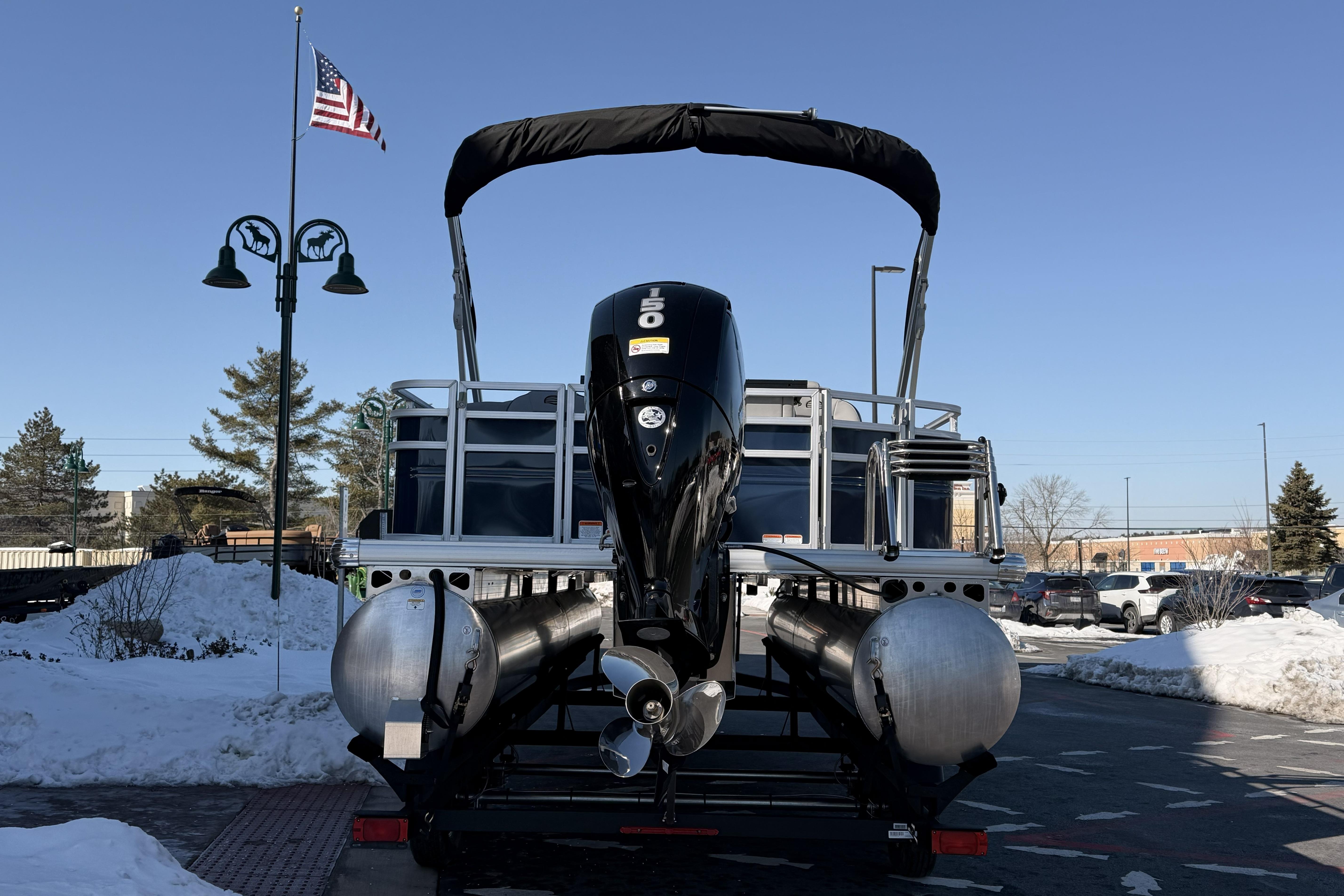 • 10' (3.05 m) Black SUN TRACKER® QuickLift™ Bimini top w/LED courtesy lights, storage pockets & protective boot