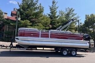 This is the fishing pontoon the whole family can enjoy. This SPORTFISH introduces a third lounge and pushes back the second casting chair to the aft casting deck. The 22 DLX also introduces a lockable rod box that can fit up to six rods. The 2026 model year brings some fine-tuned changes, including a wider boarding ladder, open storage spaces with cupholders built into the seatbacks, and more.