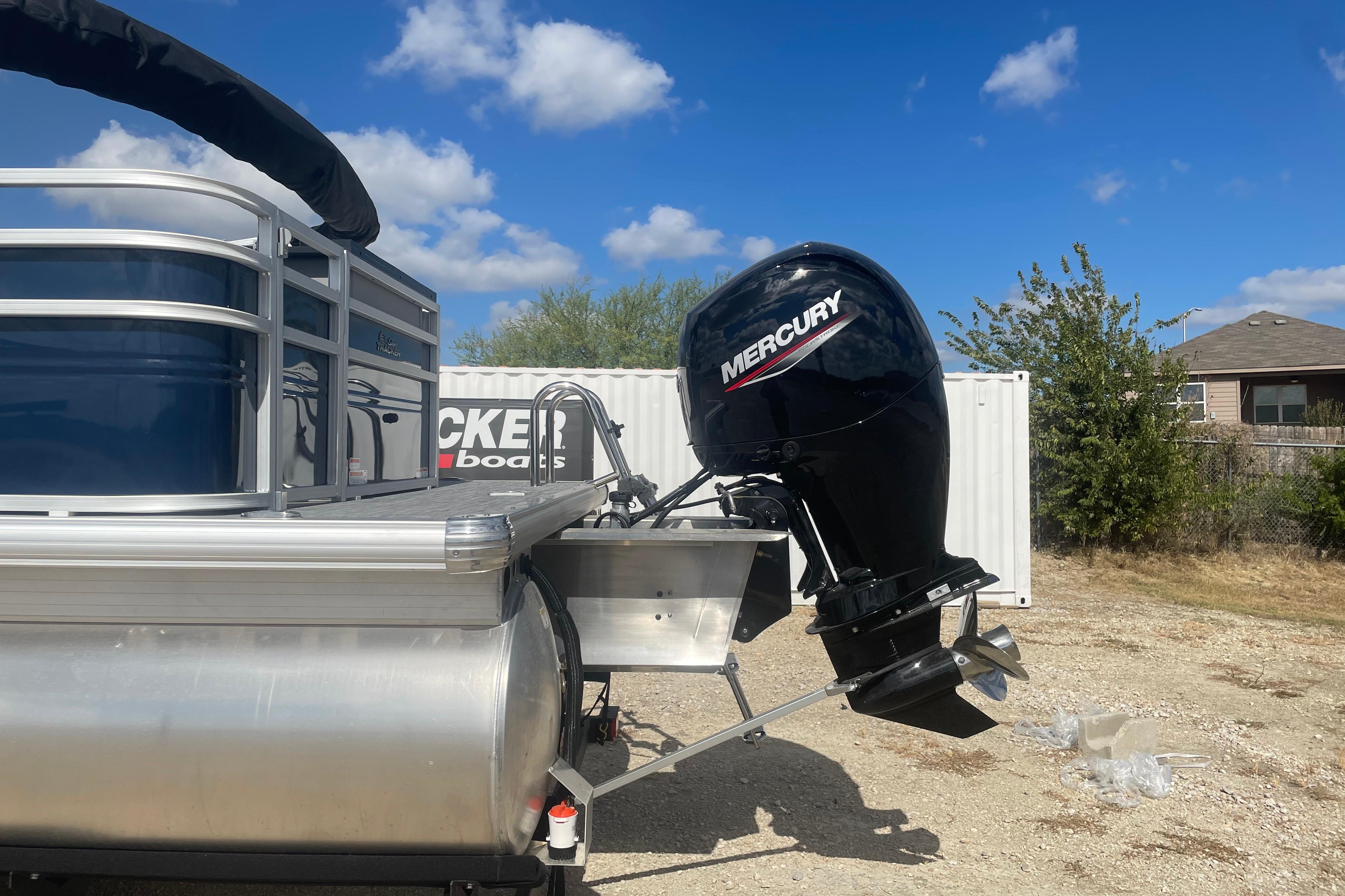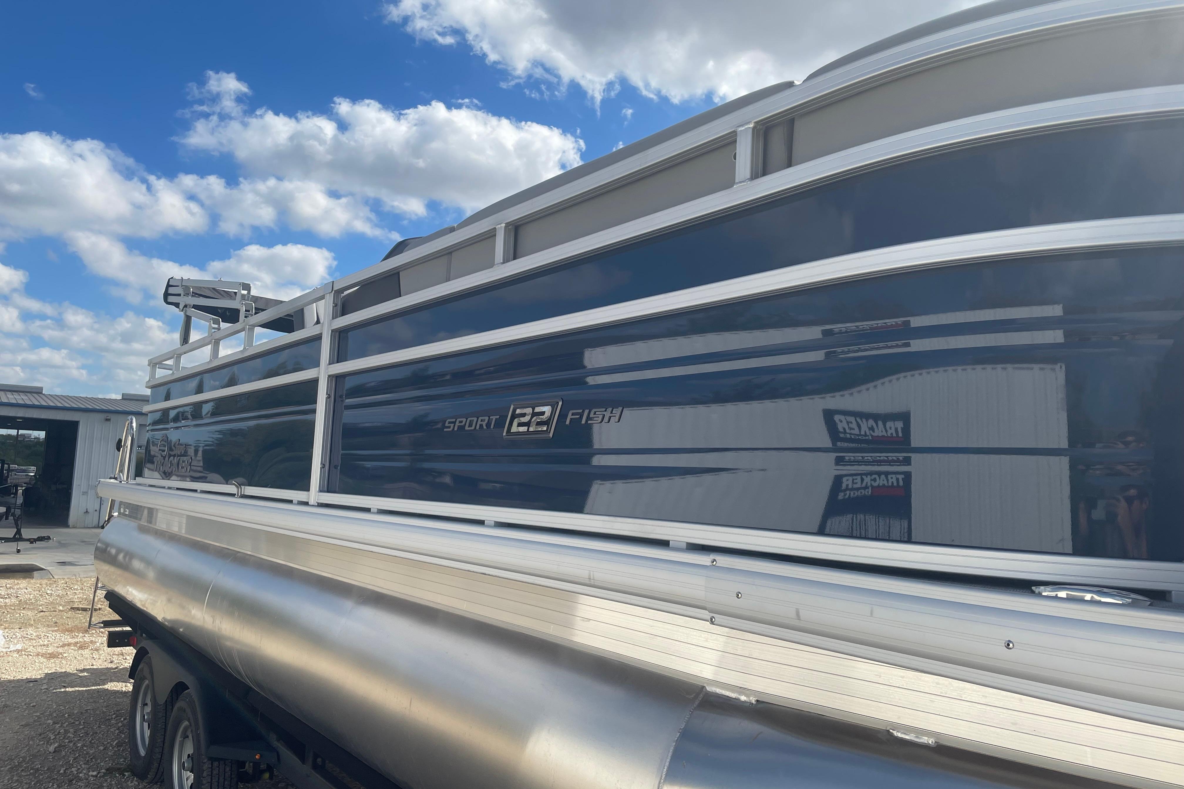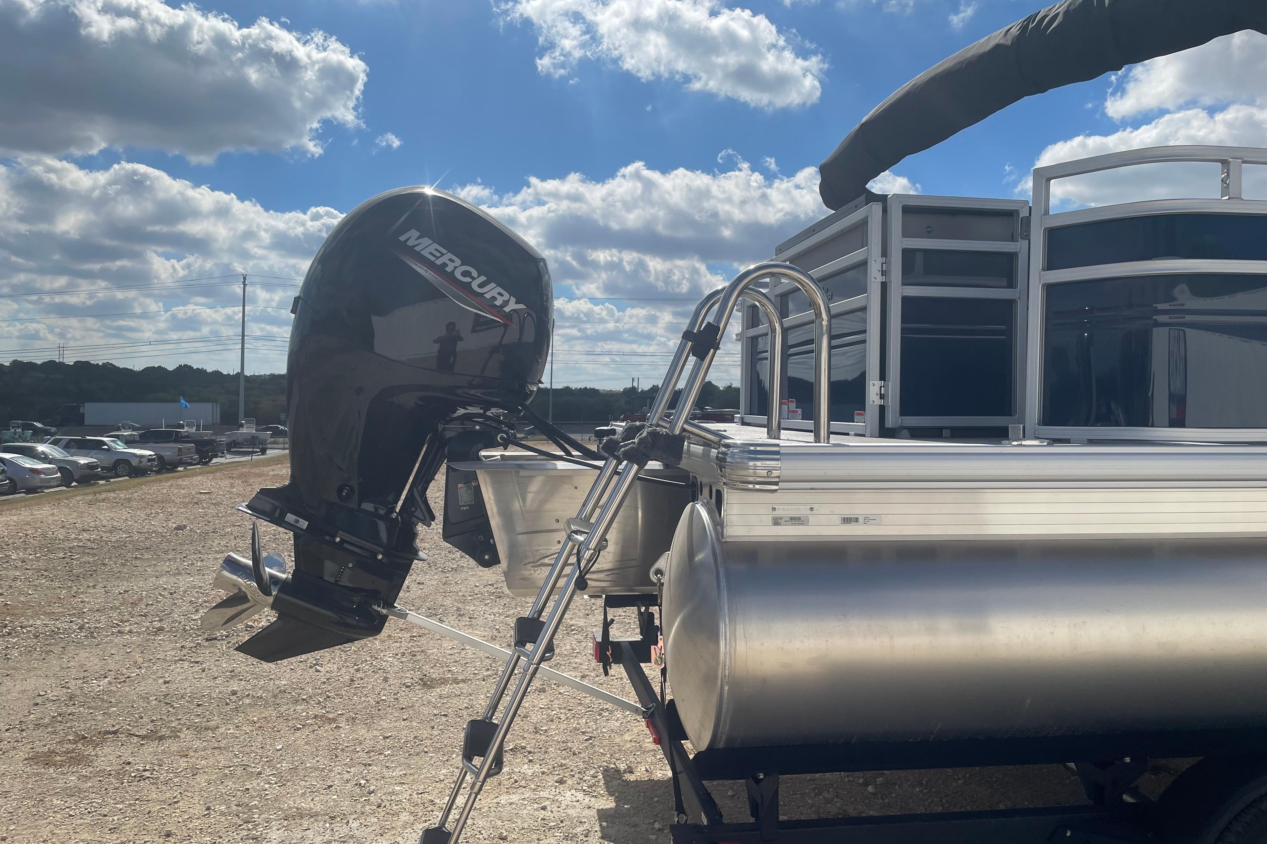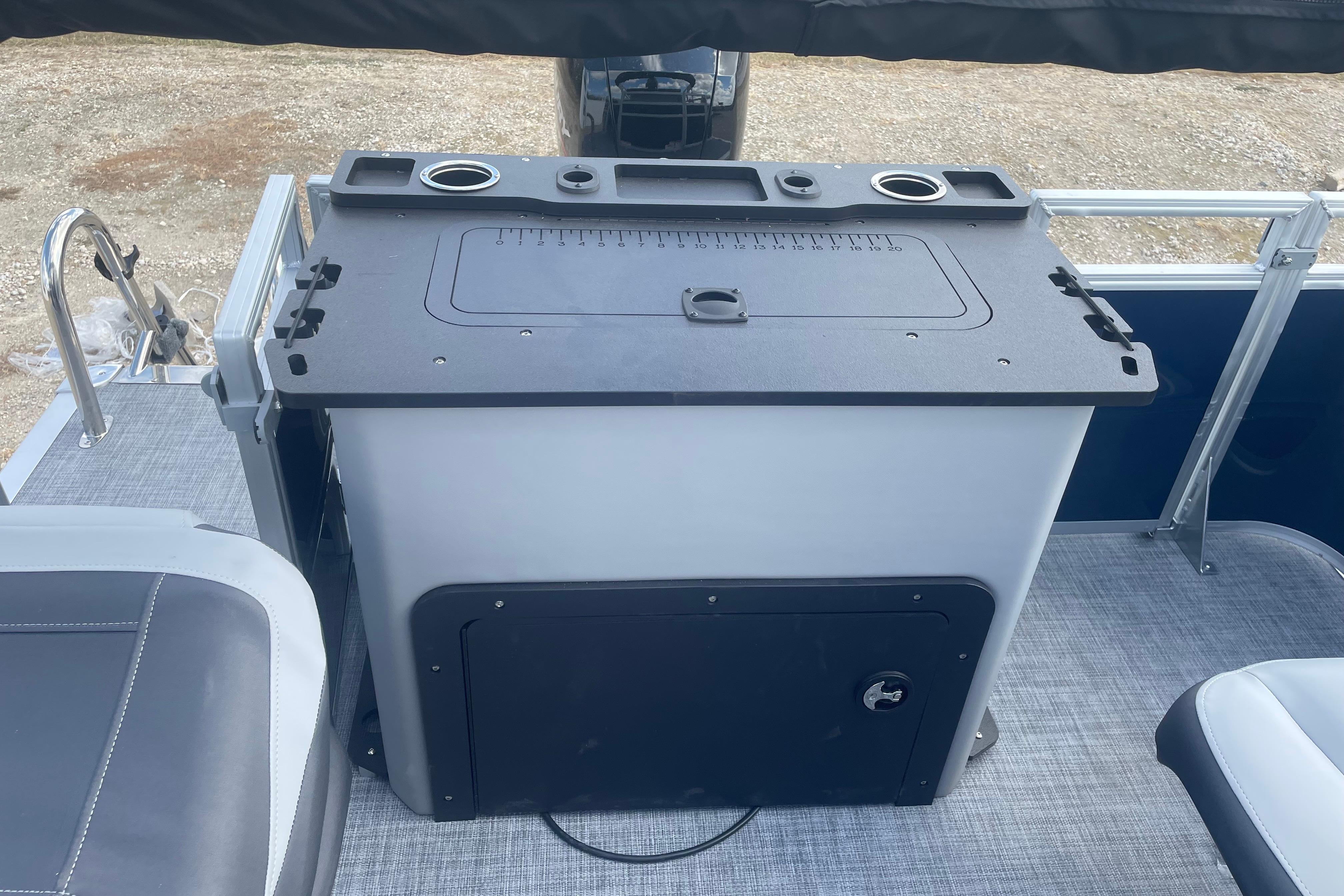 This is the fishing pontoon the whole family can enjoy. This SPORTFISH introduces a third lounge and pushes back the second casting chair to the aft casting deck. The 22 DLX also introduces a lockable rod box that can fit up to six rods. The 2026 model year brings some fine-tuned changes, including a wider boarding ladder, open storage spaces with cupholders built into the seatbacks, and more.