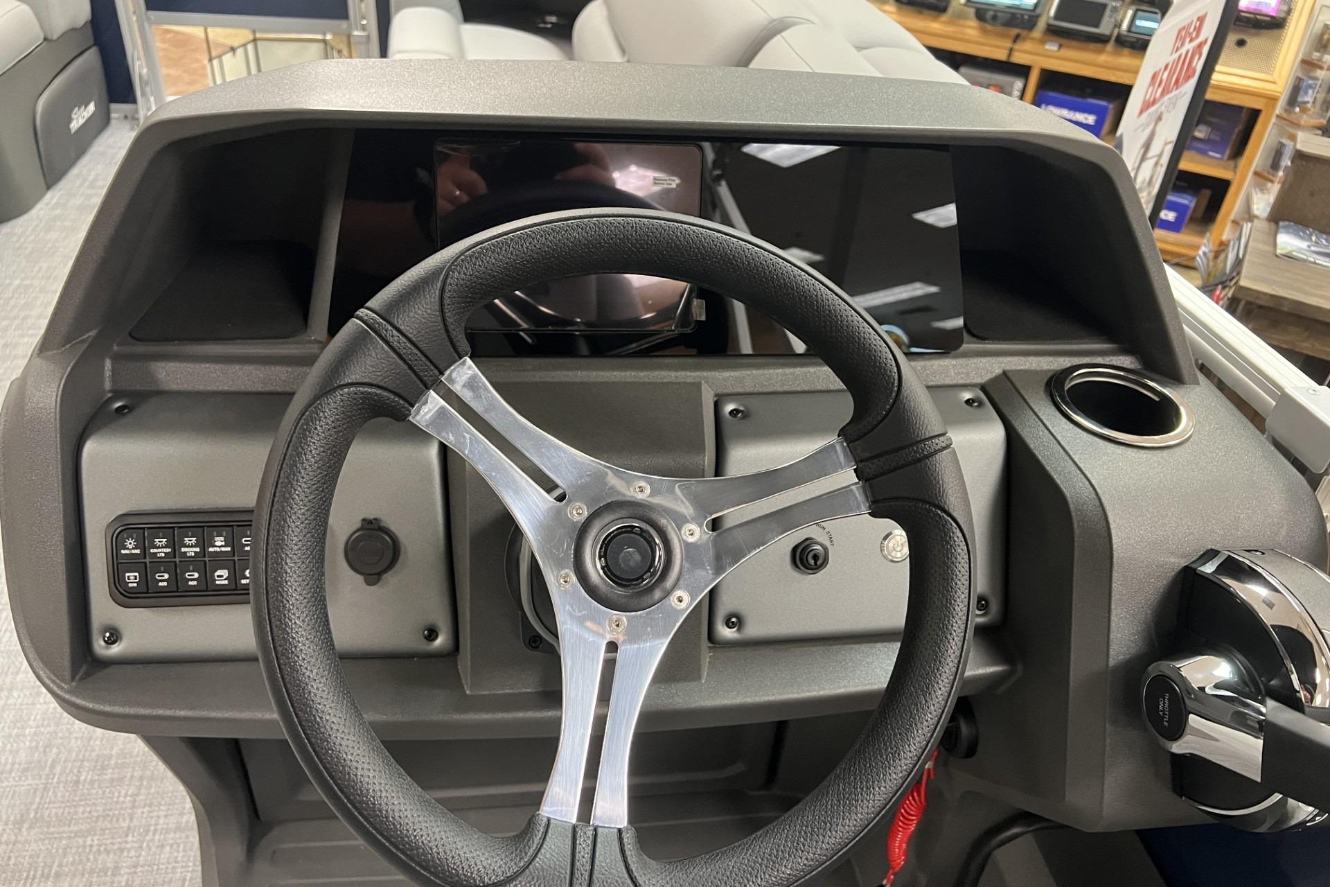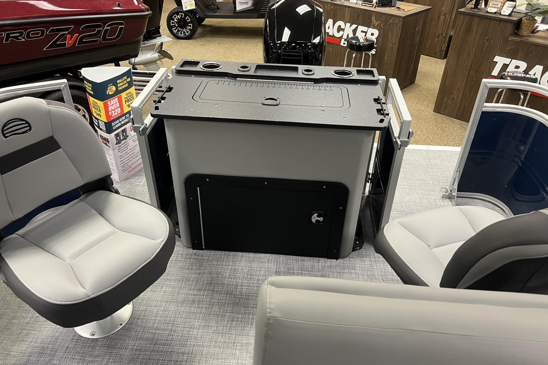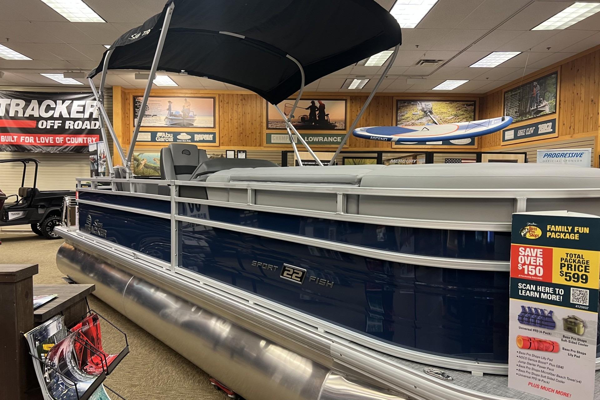 This is the fishing pontoon the whole family can enjoy. This SPORTFISH introduces a third lounge and pushes back the second casting chair to the aft casting deck. The 22 DLX also introduces a lockable rod box that can fit up to six rods. The 2026 model year brings some fine-tuned changes, including a wider boarding ladder, open storage spaces with cupholders built into the seatbacks, and more.