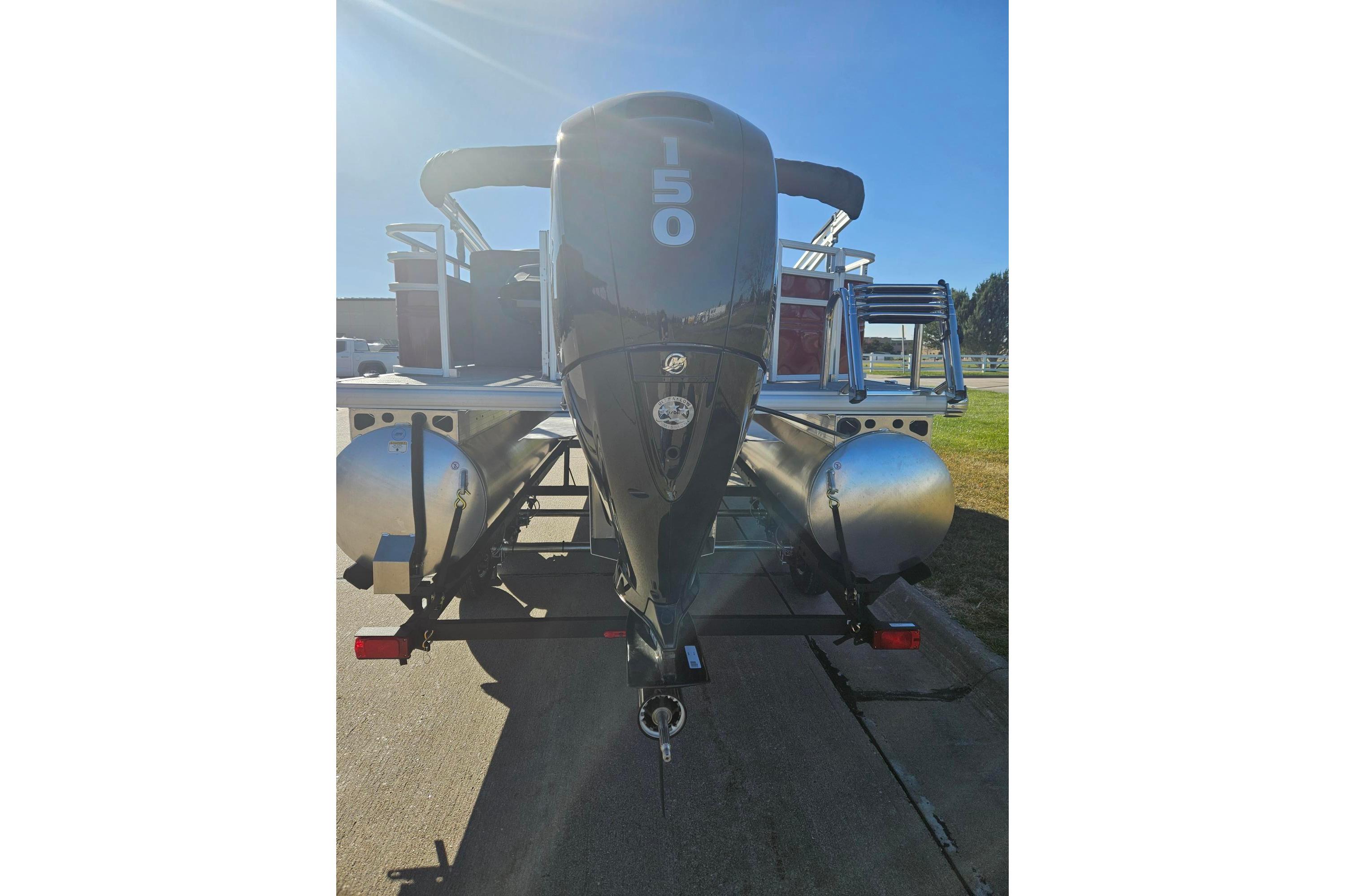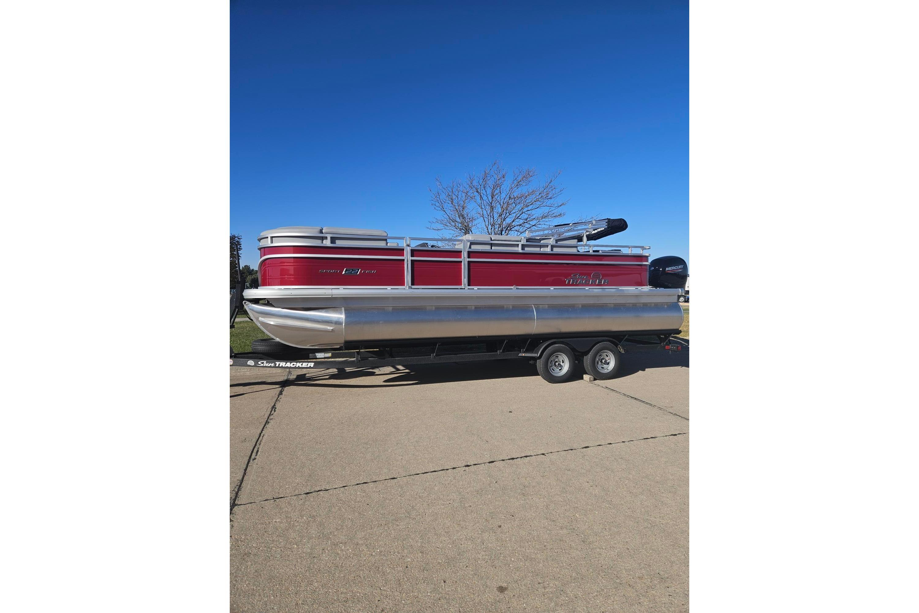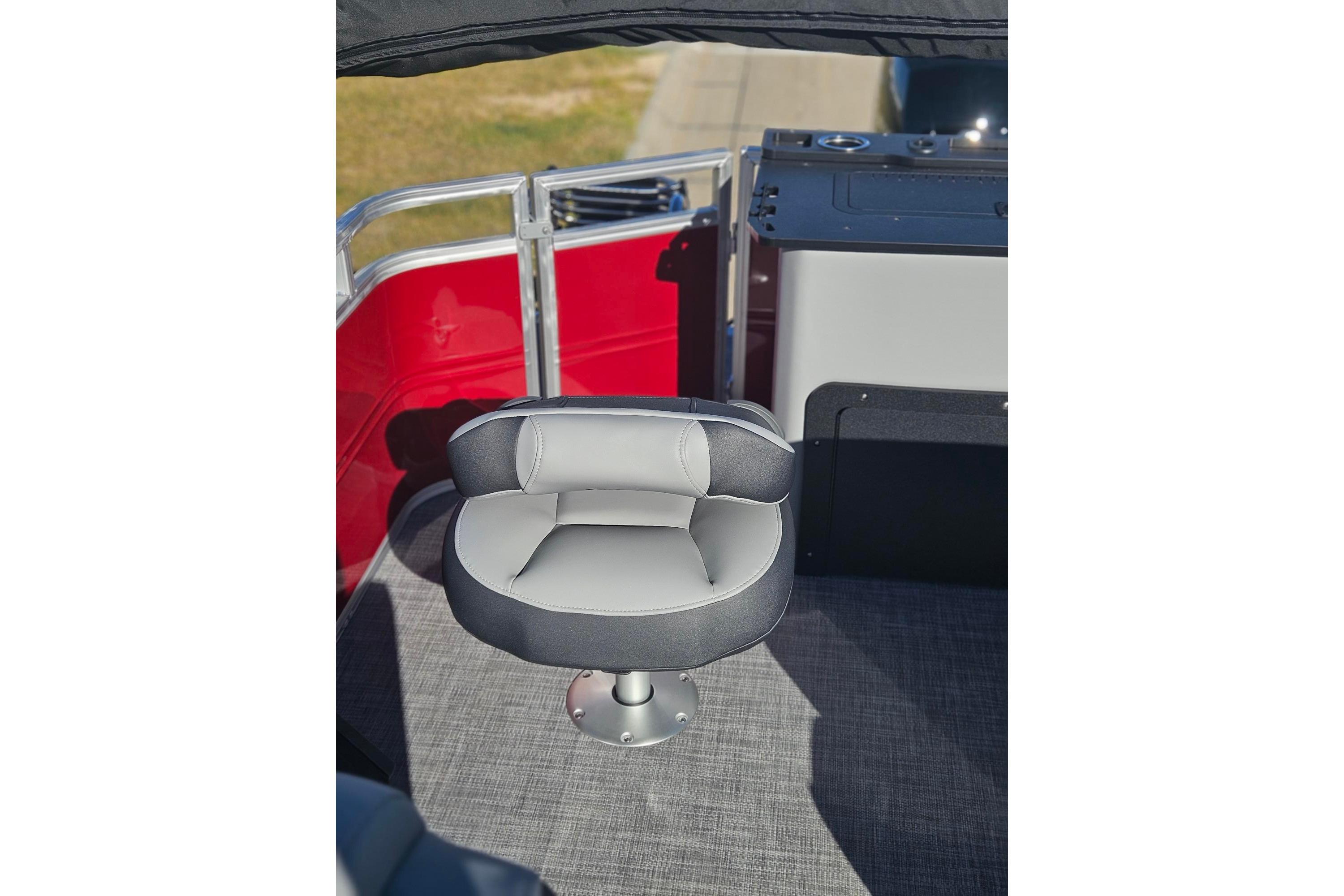 This is the fishing pontoon the whole family can enjoy. This SPORTFISH introduces a third lounge and pushes back the second casting chair to the aft casting deck. The 22 DLX also introduces a lockable rod box that can fit up to six rods. The 2026 model year brings some fine-tuned changes, including a wider boarding ladder, open storage spaces with cupholders built into the seatbacks, and more.