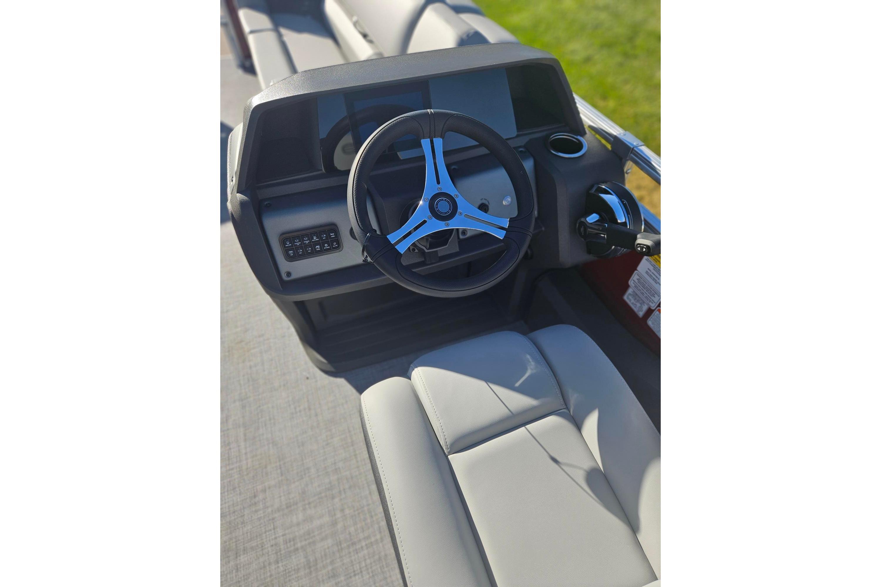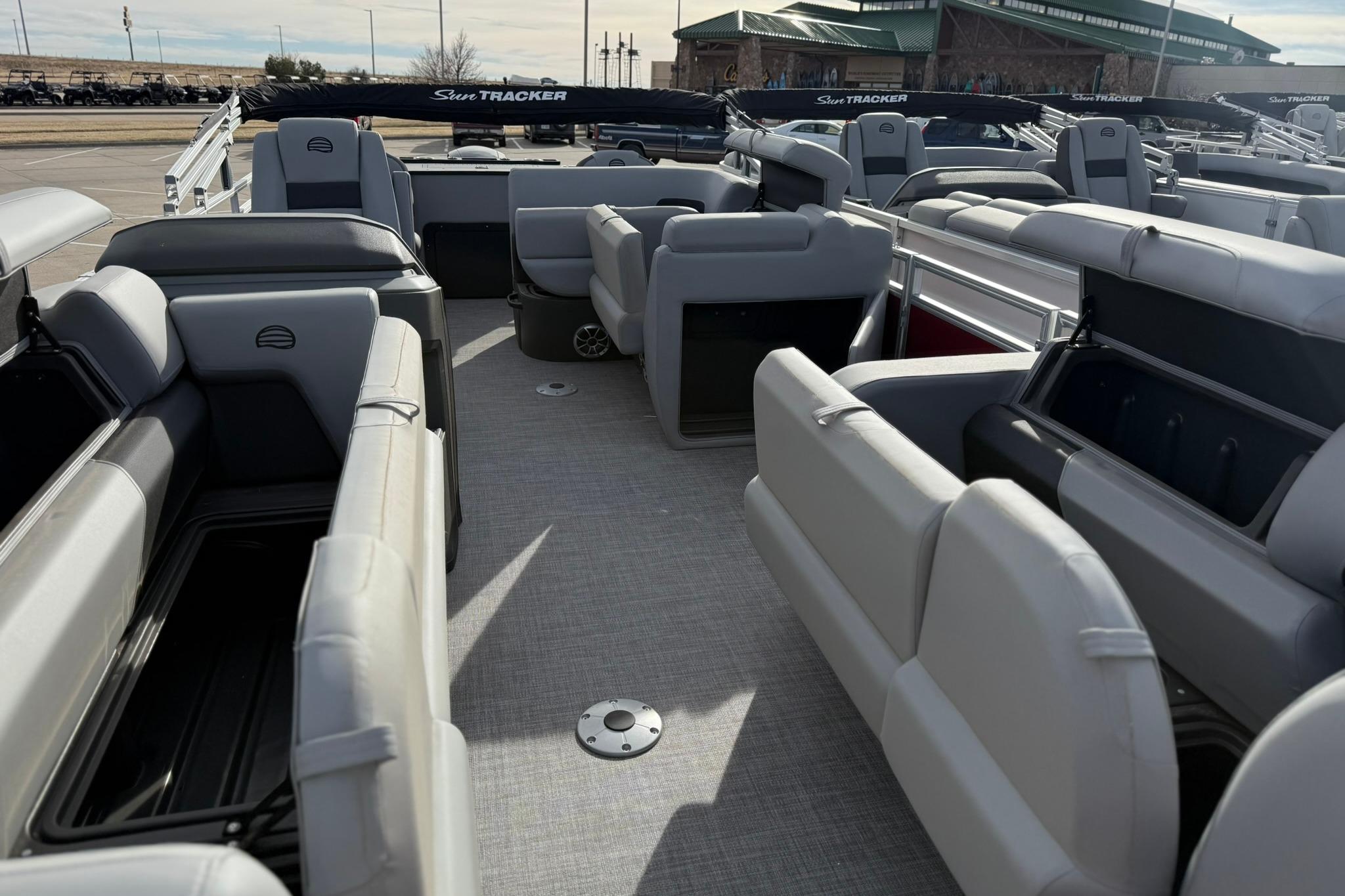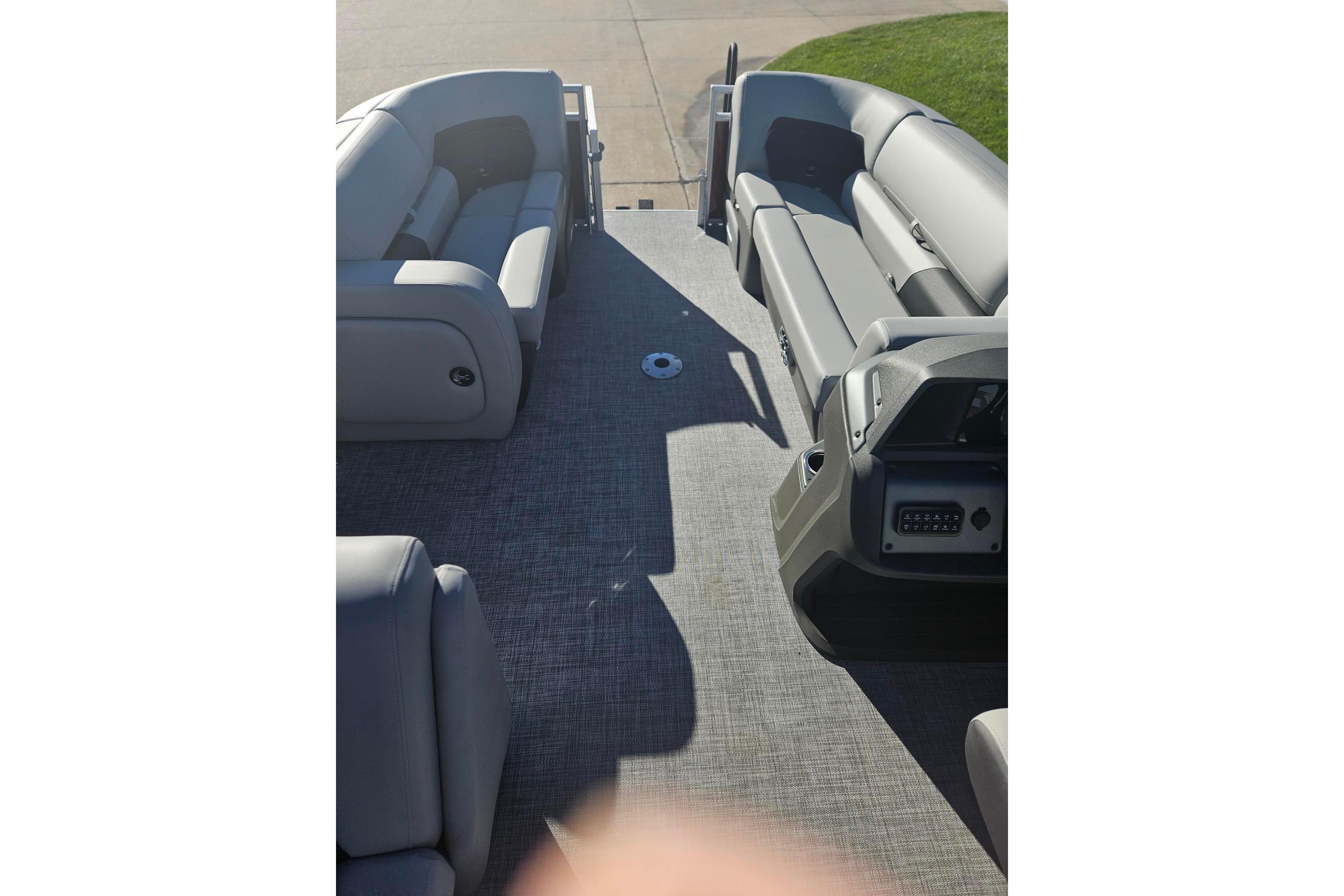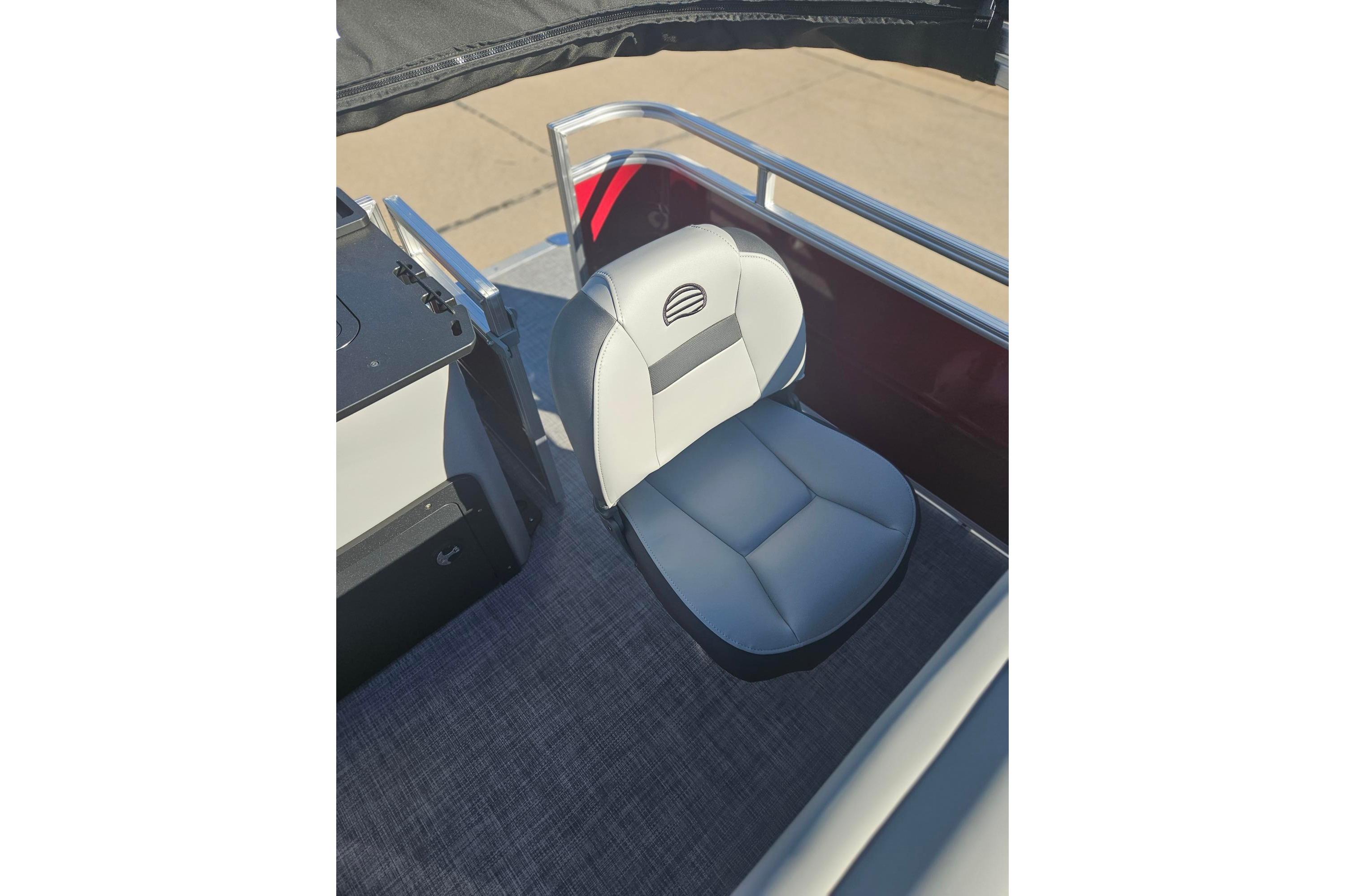 This is the fishing pontoon the whole family can enjoy. This SPORTFISH introduces a third lounge and pushes back the second casting chair to the aft casting deck. The 22 DLX also introduces a lockable rod box that can fit up to six rods. The 2026 model year brings some fine-tuned changes, including a wider boarding ladder, open storage spaces with cupholders built into the seatbacks, and more.