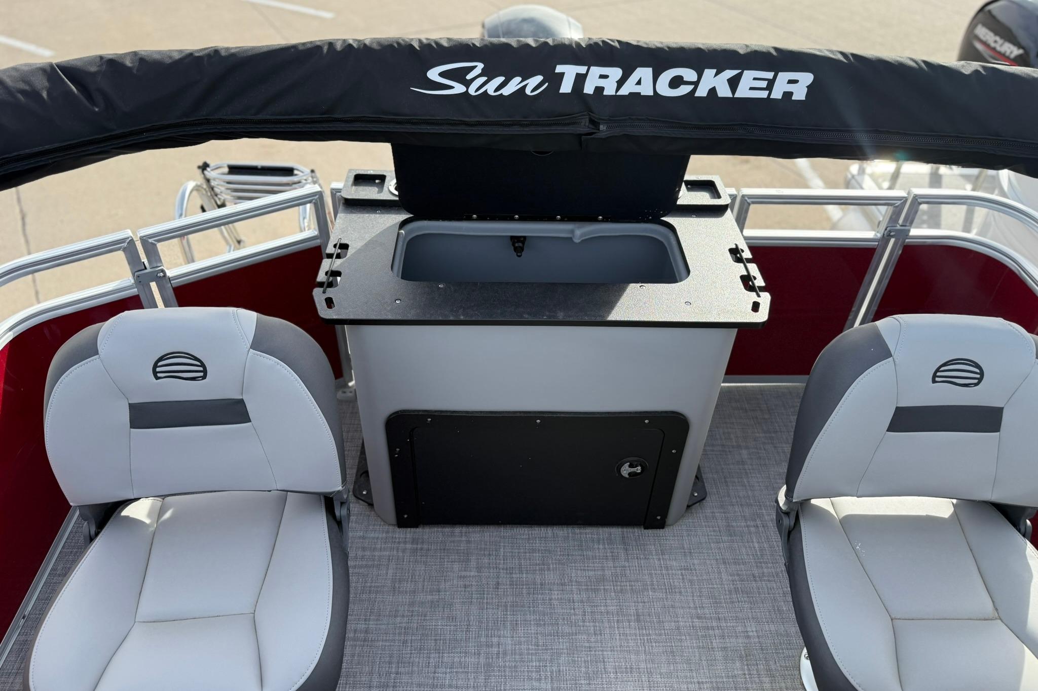 • 10' (3.05 m) Black SUN TRACKER® QuickLift™ Bimini top w/LED courtesy lights, storage pockets & protective boot
