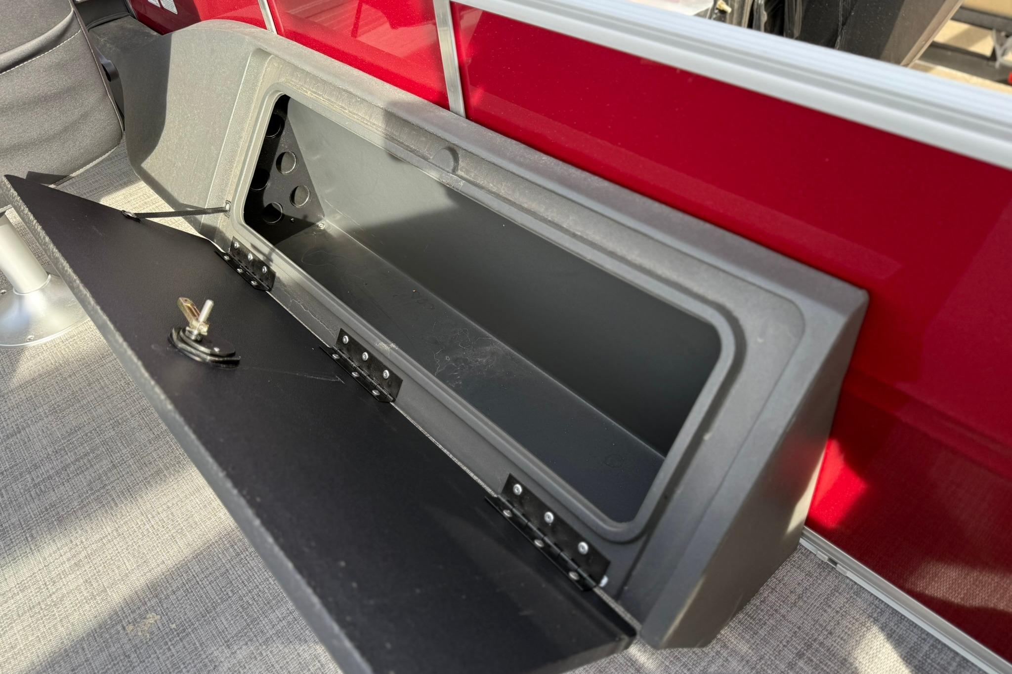 • Aft starboard lockable rod box for 6 rods to 7' 6" (2.29 m) w/lid, rod tube holders & organizer