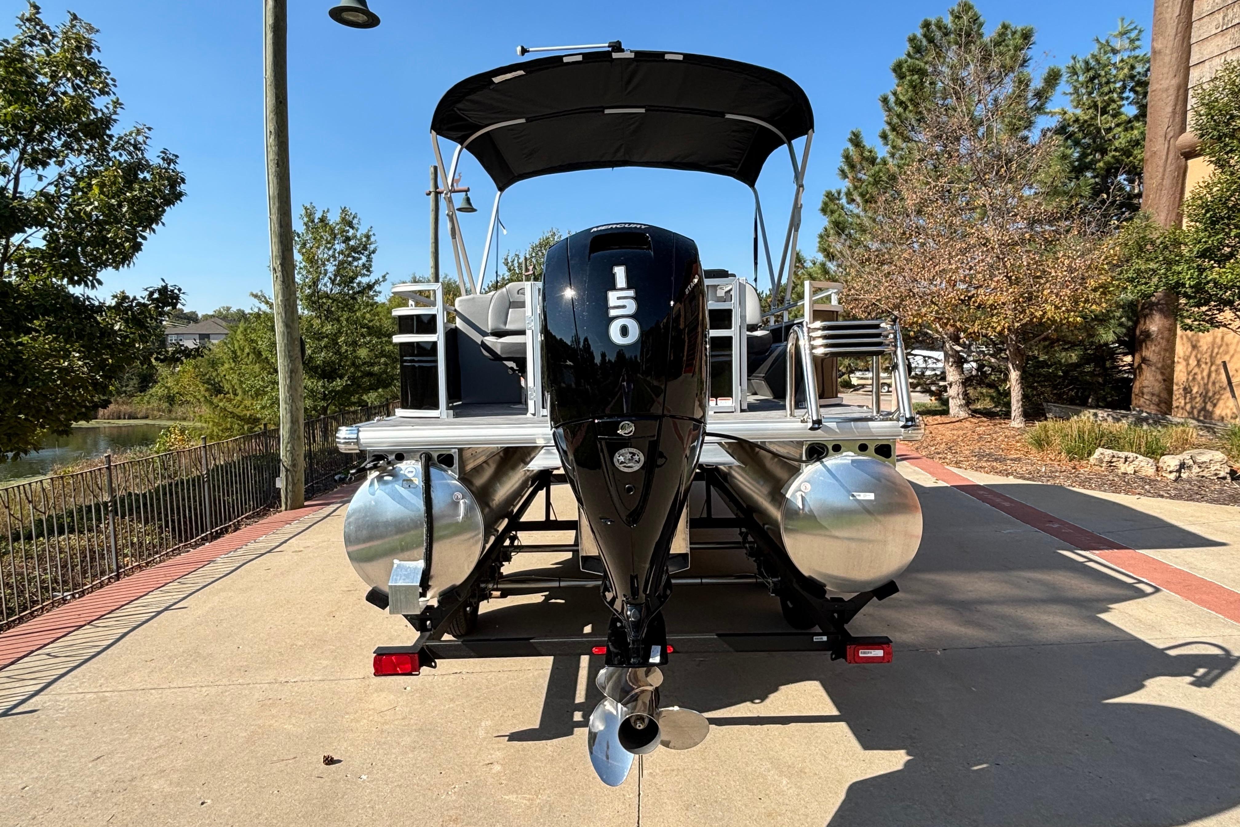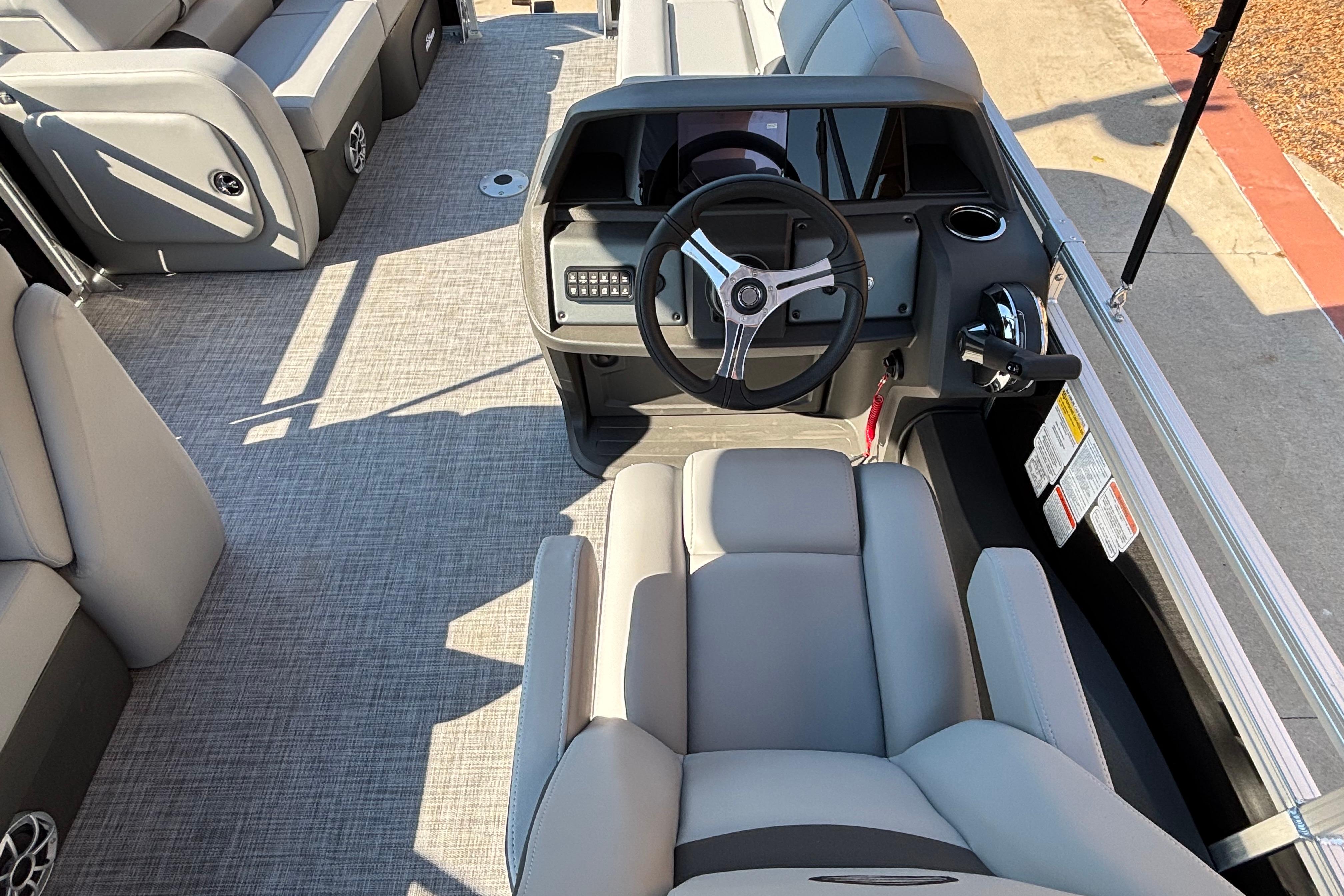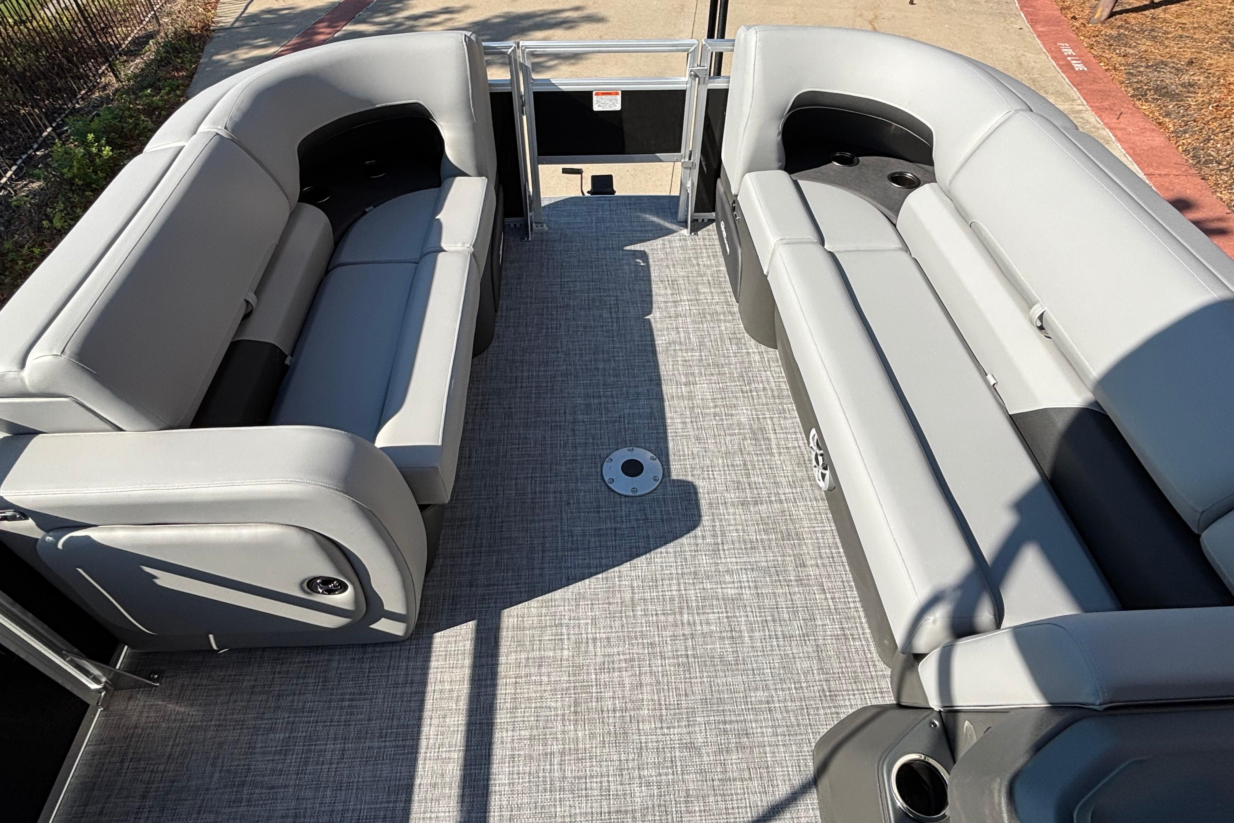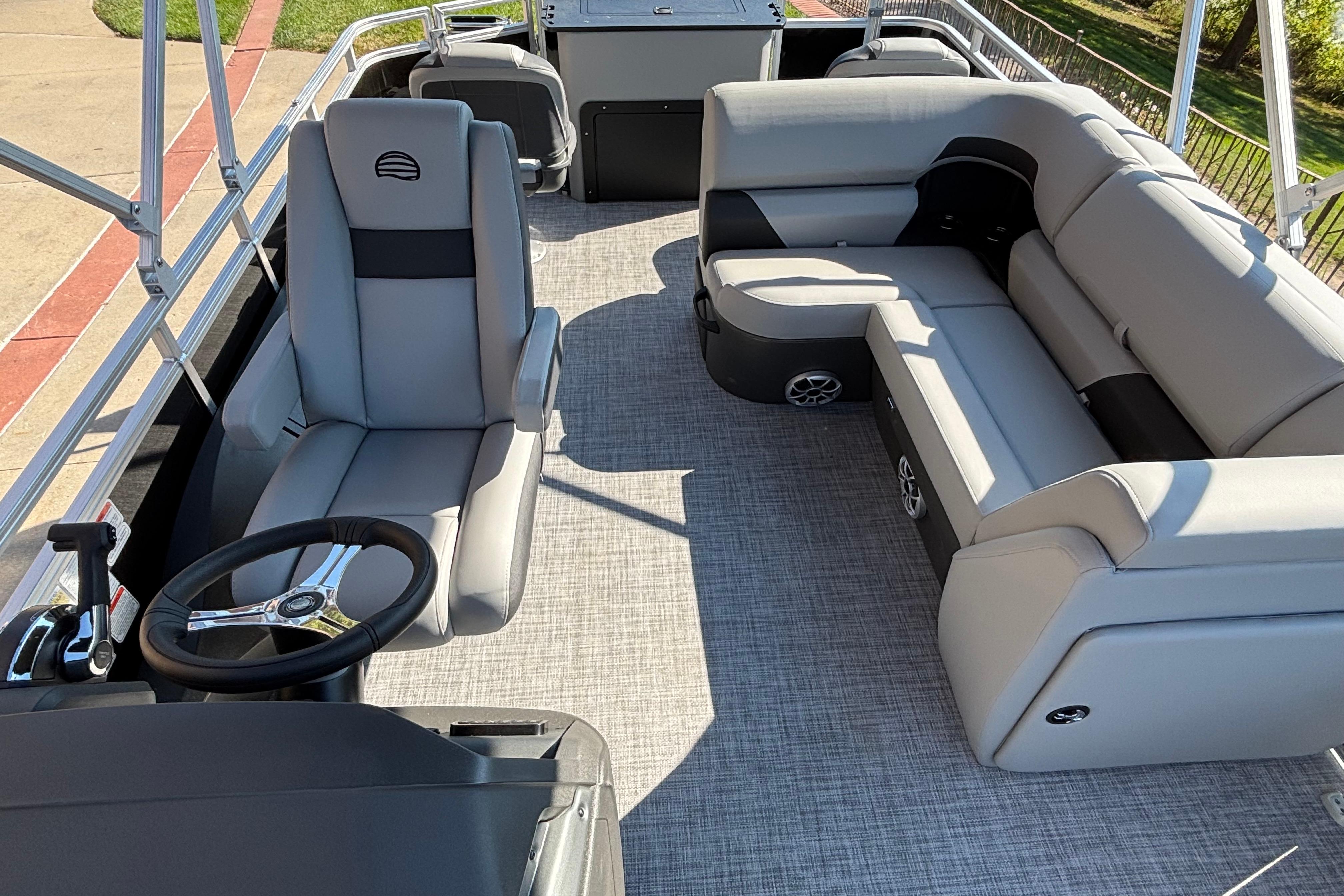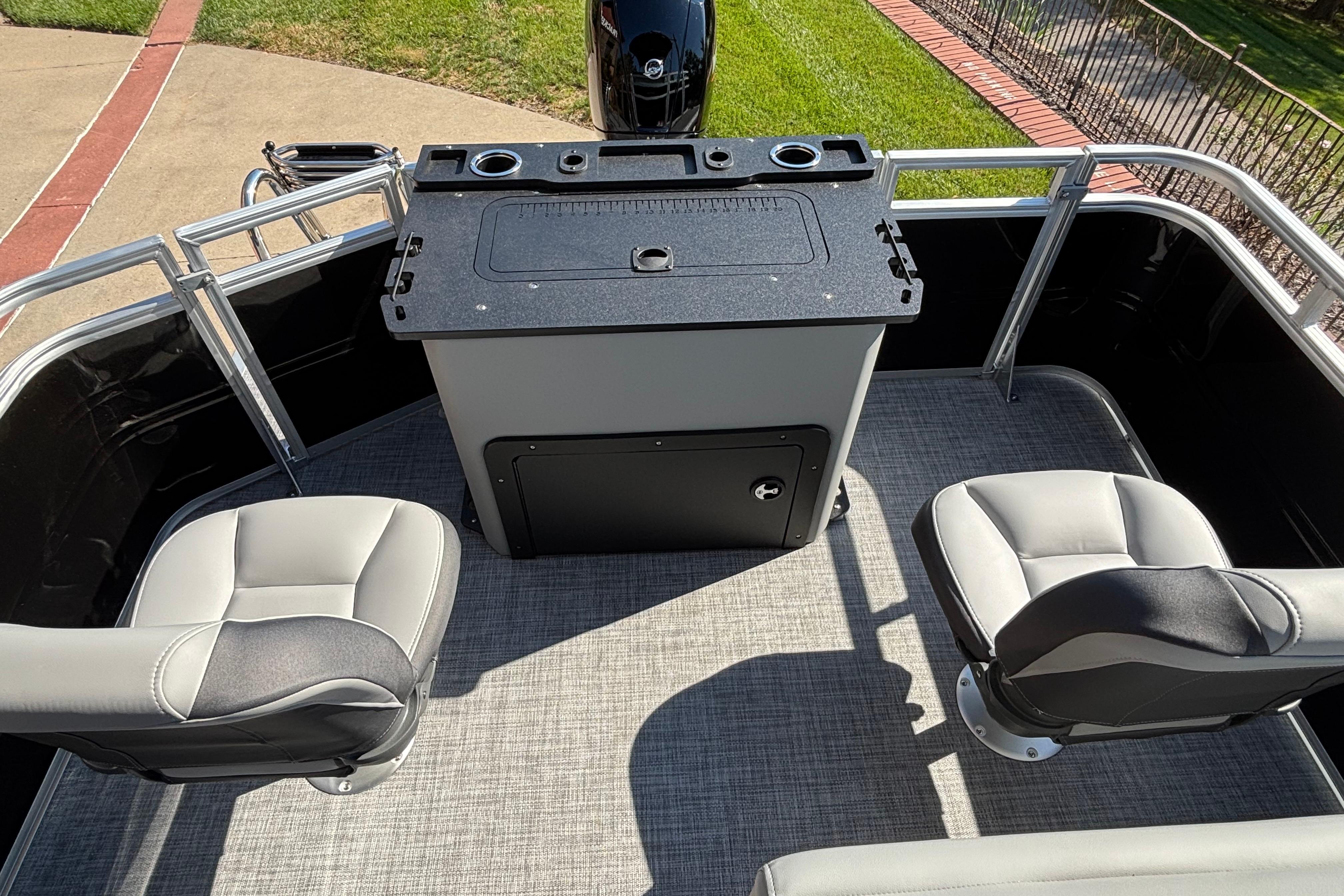 This is the fishing pontoon the whole family can enjoy. This SPORTFISH introduces a third lounge and pushes back the second casting chair to the aft casting deck. The 22 DLX also introduces a lockable rod box that can fit up to six rods. The 2026 model year brings some fine-tuned changes, including a wider boarding ladder, open storage spaces with cupholders built into the seatbacks, and more.