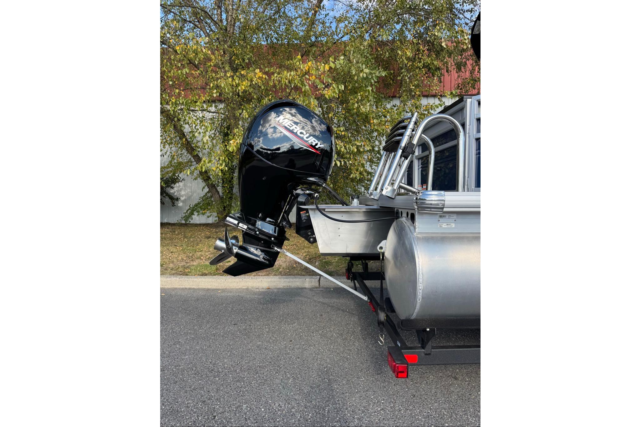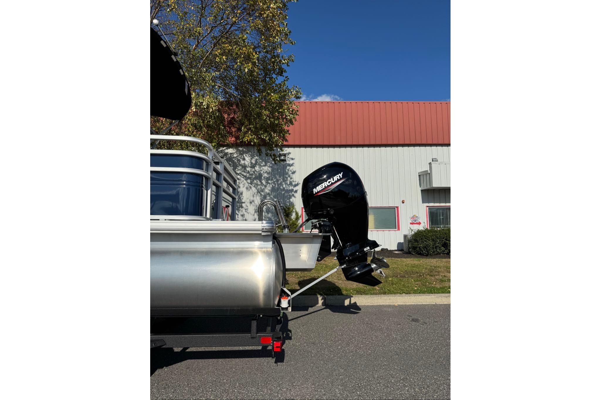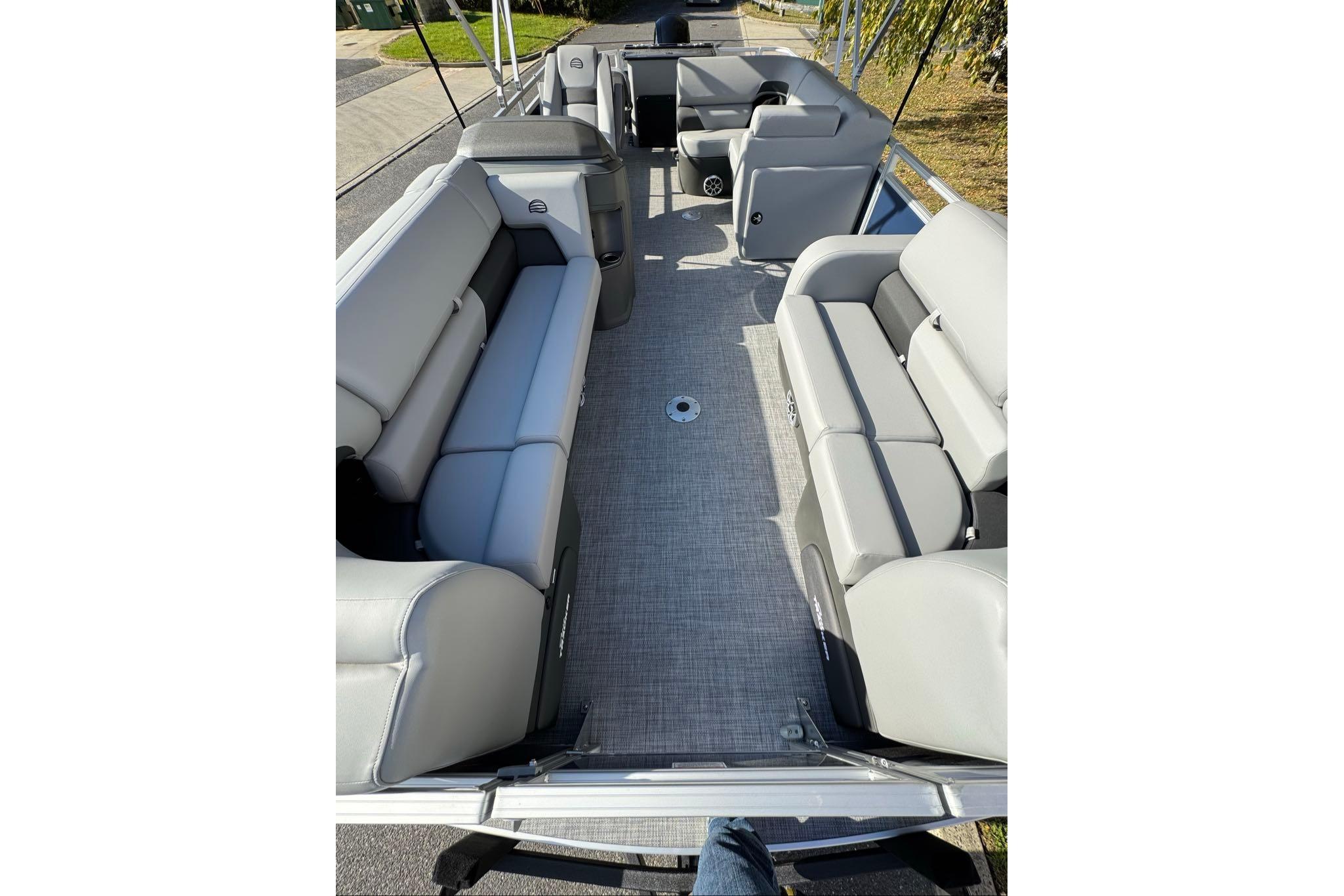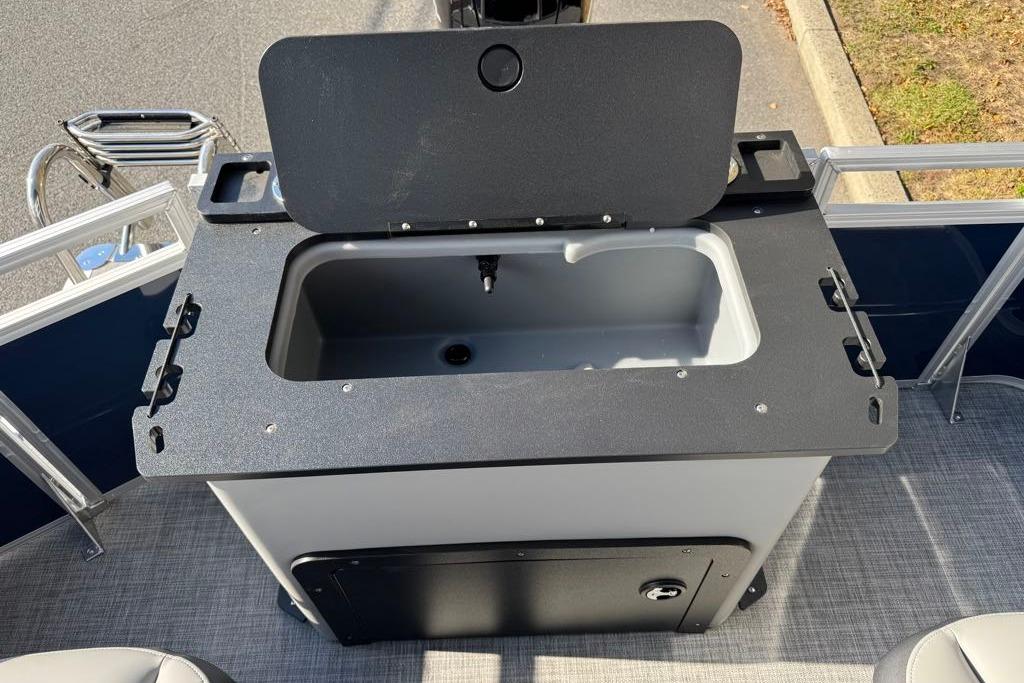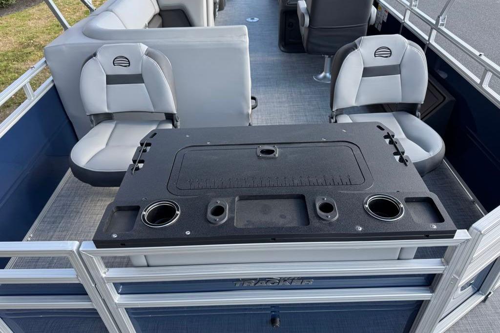 This is the fishing pontoon the whole family can enjoy. This SPORTFISH introduces a third lounge and pushes back the second casting chair to the aft casting deck. The 22 DLX also introduces a lockable rod box that can fit up to six rods. The 2026 model year brings some fine-tuned changes, including a wider boarding ladder, open storage spaces with cupholders built into the seatbacks, and more.