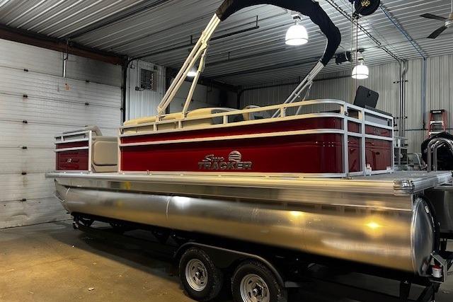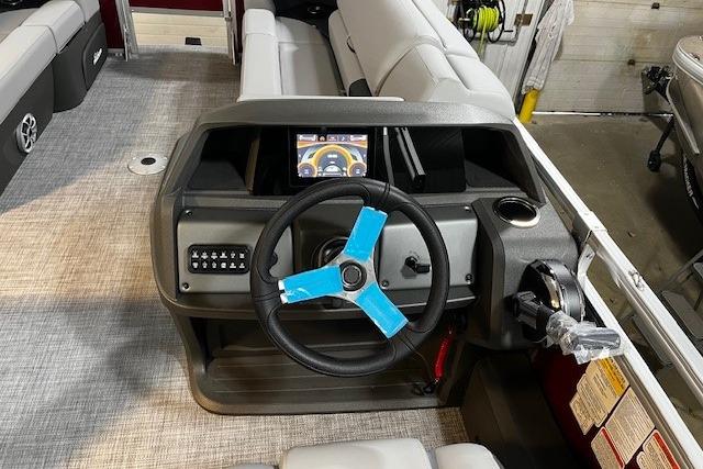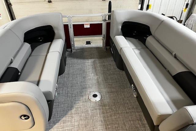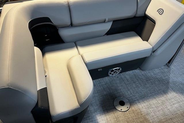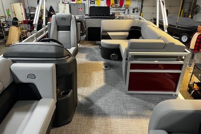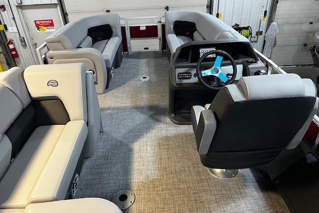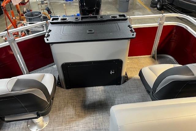 This is the fishing pontoon the whole family can enjoy. This SPORTFISH introduces a third lounge and pushes back the second casting chair to the aft casting deck. The 22 DLX also introduces a lockable rod box that can fit up to six rods. The 2026 model year brings some fine-tuned changes, including a wider boarding ladder, open storage spaces with cupholders built into the seatbacks, and more.