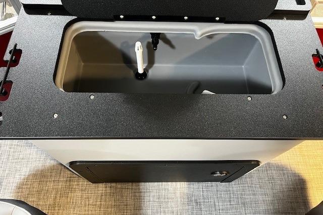 • Aft 15-gal. (56.78 L) aerated livewell/baitwell w/shutoff valve, drink holder, rod holder & composite lid w/fish ruler
