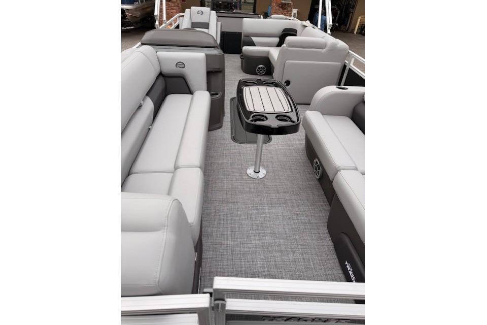 The SPORTFISH 22 XP3's greater stability and strength from its third log—as well as the standard array of fishing features—allows this pontoon to command the lake.