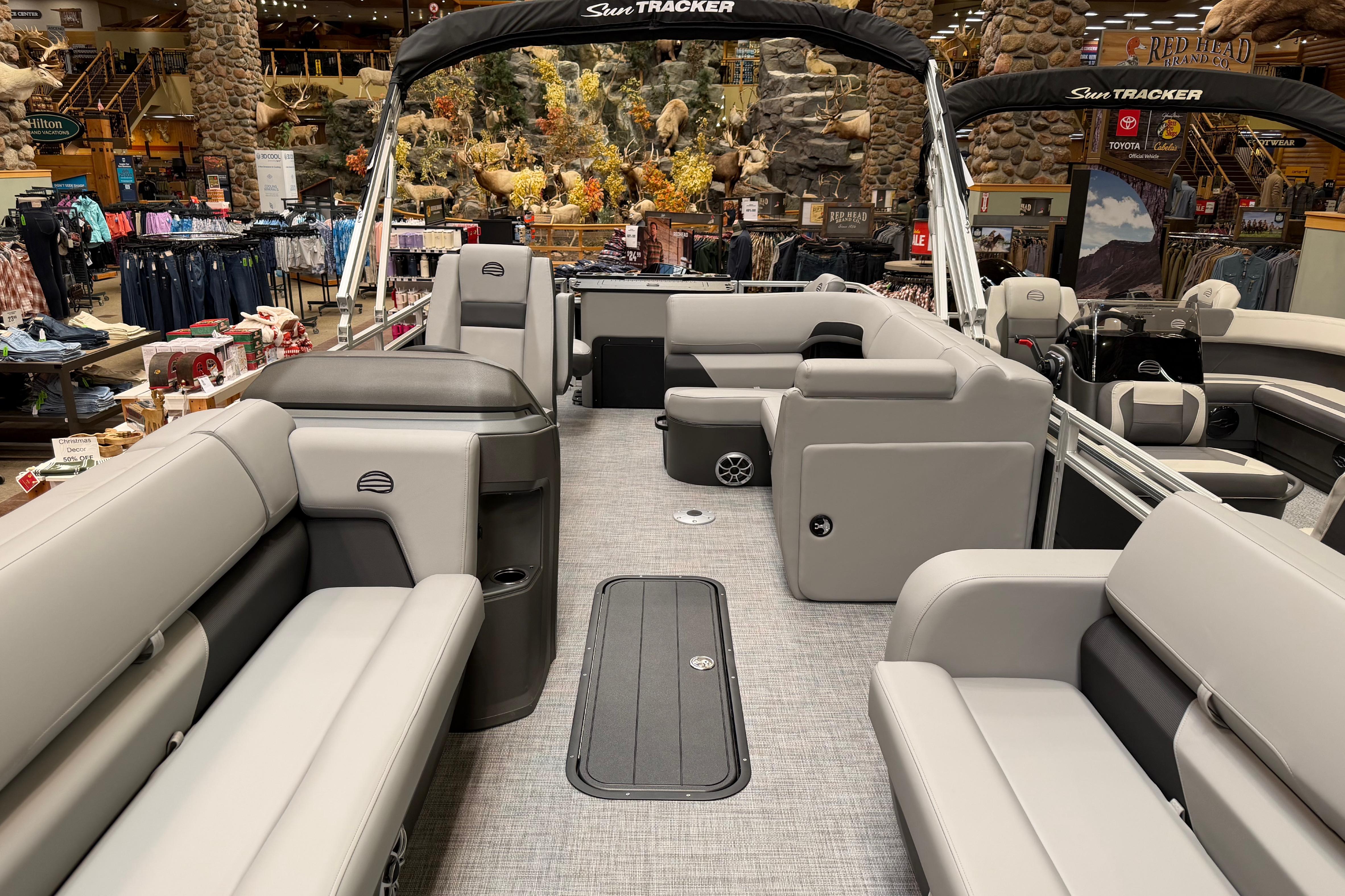 Ramp into the fishing tritoon world with the fully loaded SUN TRACKER® SPORTFISH™ 22 XP3. The difference between the SPORTFISH 22 XP3 and its sibling—the DLX—is that it uses a third pontoon log with lifting strakes to increase the boat’s maximum strength and stability.