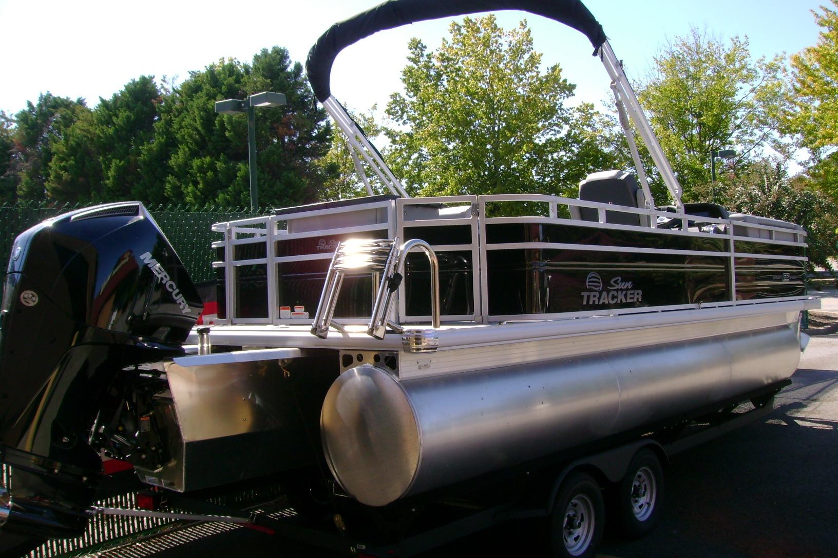 Ramp into the fishing tritoon world with the fully loaded SUN TRACKER® SPORTFISH™ 22 XP3. The difference between the SPORTFISH 22 XP3 and its sibling—the DLX—is that it uses a third pontoon log with lifting strakes to increase the boat’s maximum strength and stability.