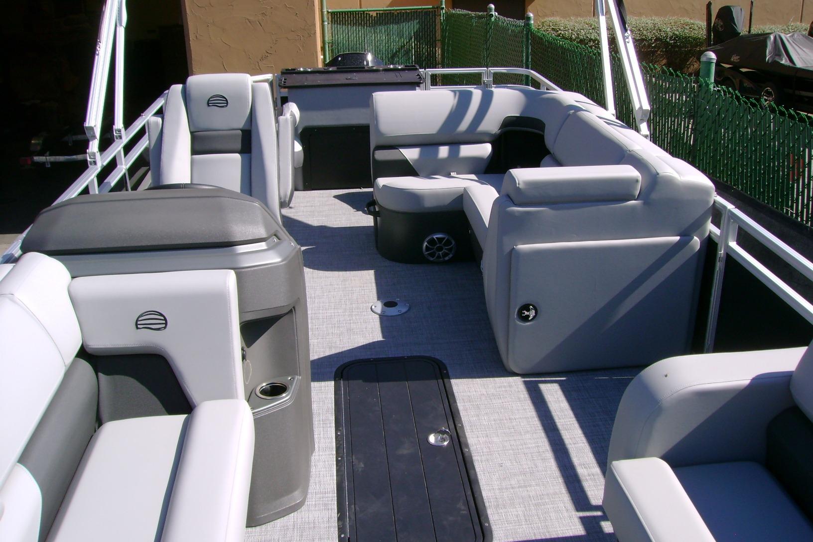 The SPORTFISH 22 XP3's greater stability and strength from its third log—as well as the standard array of fishing features—allows this pontoon to command the lake.