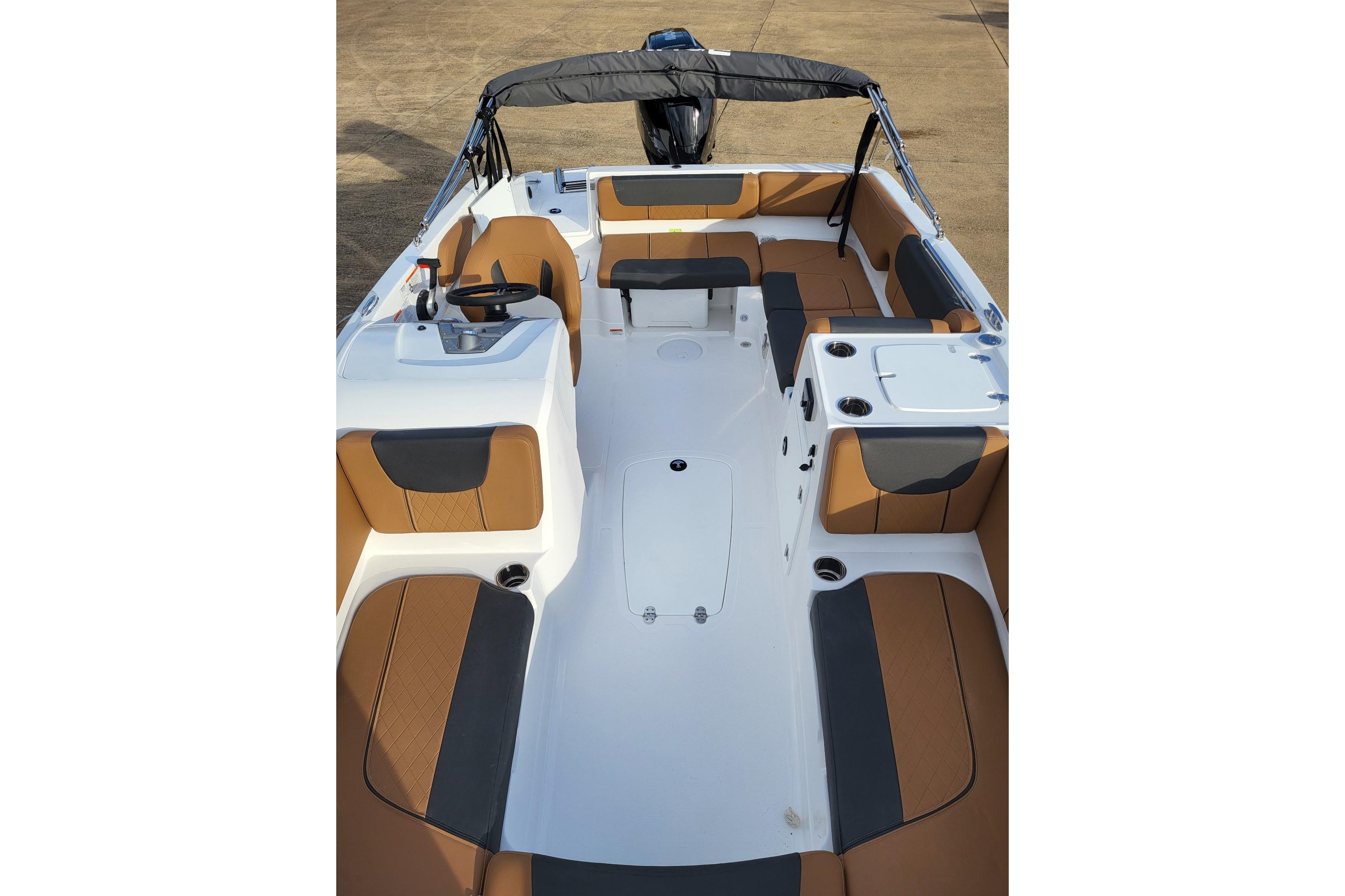 • Aft L-lounge w/storage, tow rope holder & removable 25-qt. (23.66 L) cooler