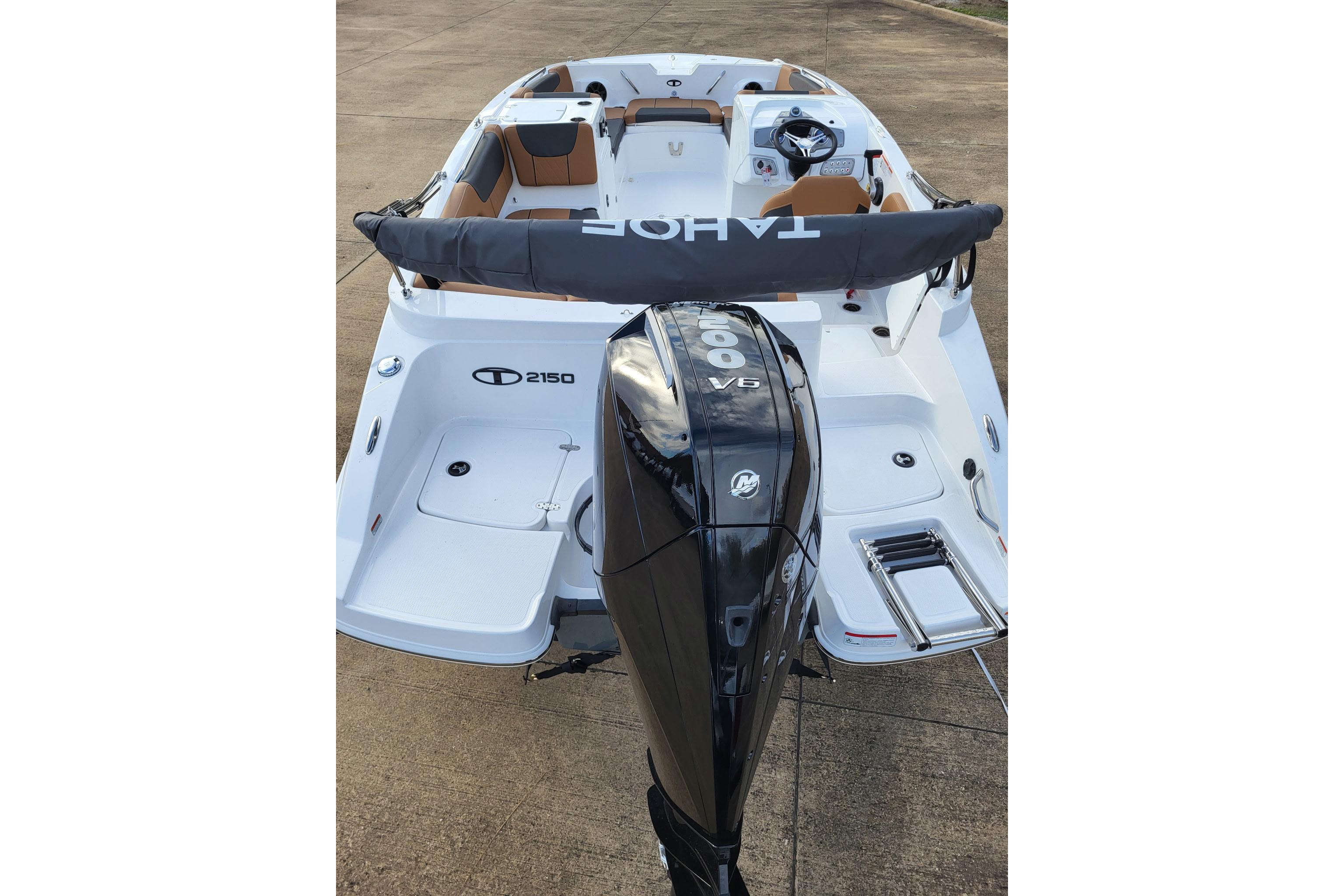 The 2026 TAHOE® 2150 comes standard with a 150hp Mercury® XL Pro XS® FourStroke outboard motor and has a recommended maximum 225hp rating.