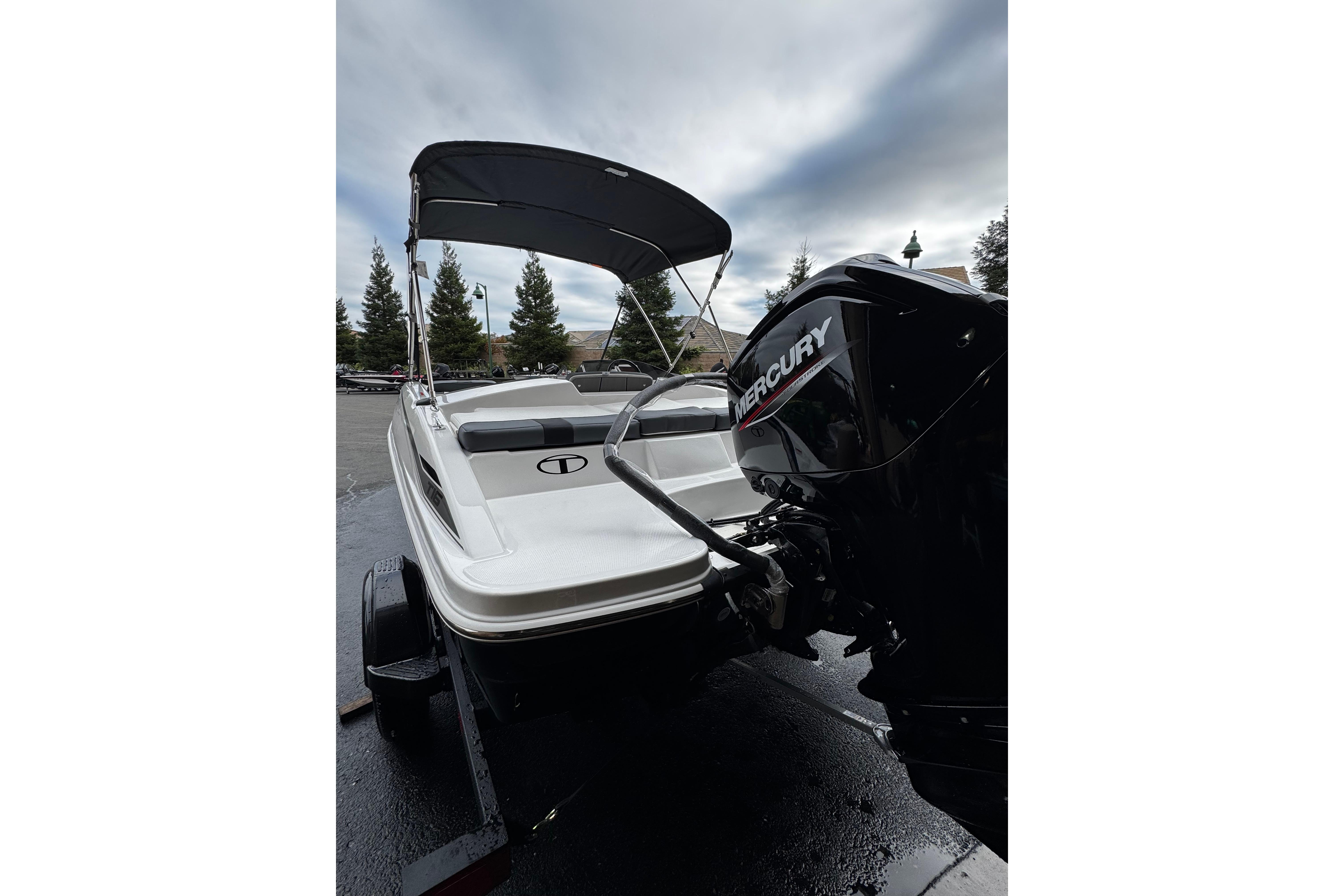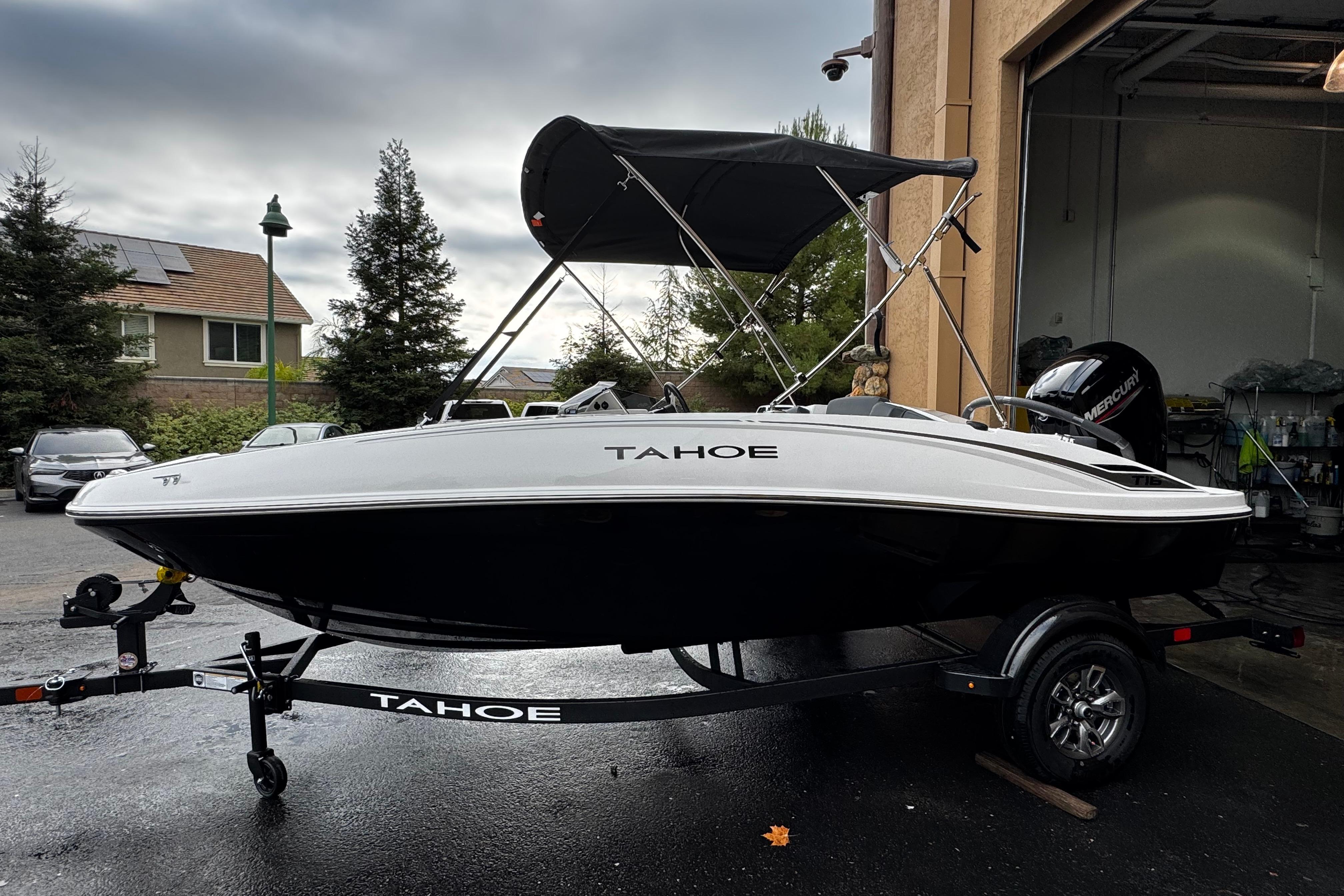 The 2026 TAHOE® T16 comes standard with a 60hp Mercury® ELPT FourStroke outboard motor and has a recommended maximum 75hp rating. This model is packaged with a trailer.