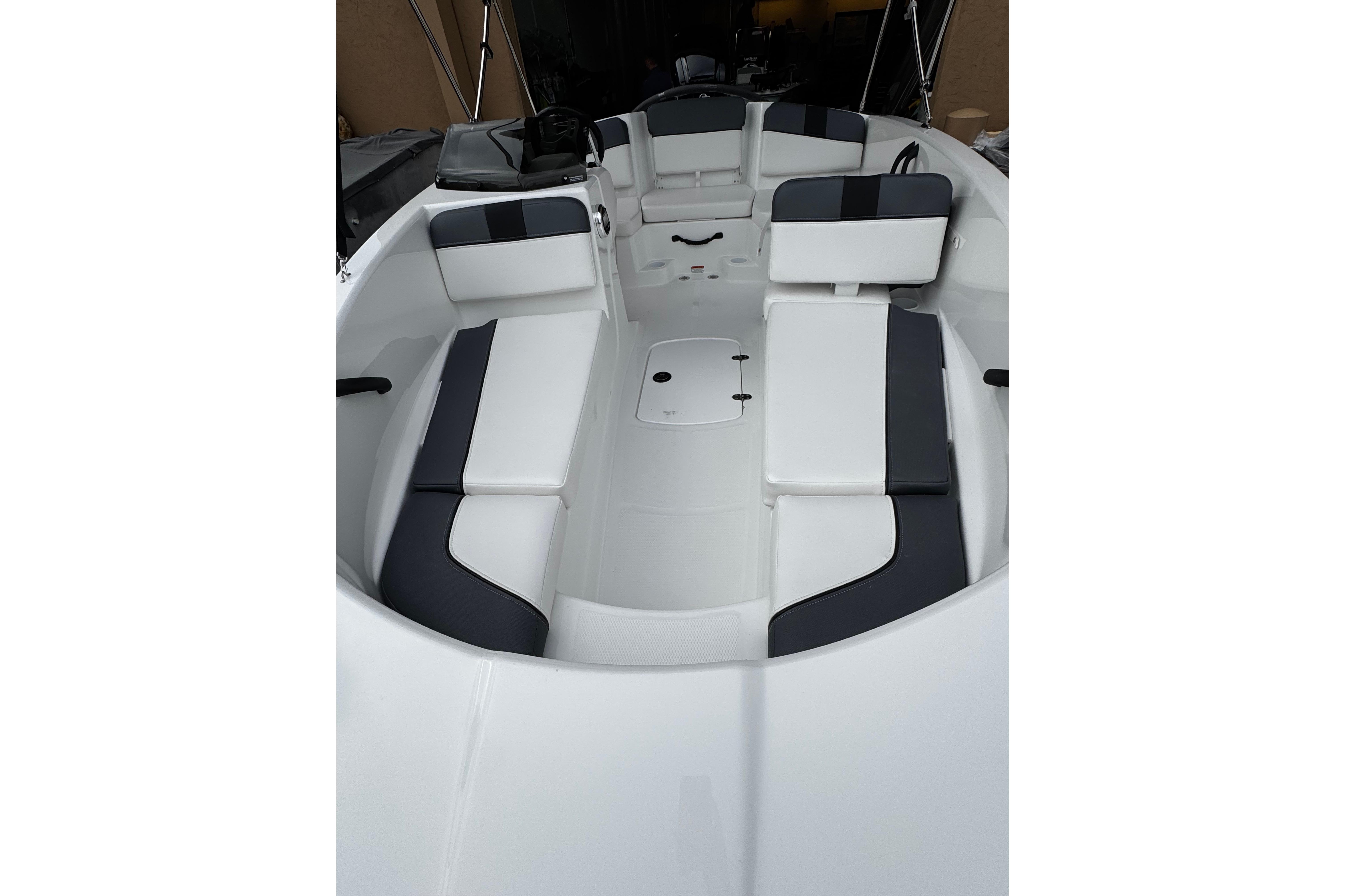 Relax on the water in this boat's midship bench seating and twin forward lounges with under-seat storage. The bow seats have reversible backrests that turn them into spotter seats. Lay out on the aft sun pad when you find your cove. The 4-step telescoping aft boarding ladder makes it easy to get back on the swim platform after diving into the water. Flip-up seat cushions and flip-down seat backs let passengers board the boat without stepping on upholstery. Claim 1 of the 9 drink holders, find your song on the 2-speaker Kicker® stereo, and search for excitement on the water!