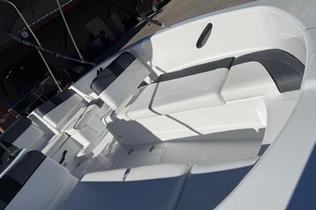 Relax on the water in this boat's midship bench seating and twin forward lounges with under-seat storage. The bow seats have reversible backrests that turn them into spotter seats. Lay out on the aft sun pad when you find your cove. The 4-step telescoping aft boarding ladder makes it easy to get back on the swim platform after diving into the water. Flip-up seat cushions and flip-down seat backs let passengers board the boat without stepping on upholstery. Claim 1 of the 9 drink holders, find your song on the 2-speaker Kicker® stereo, and search for excitement on the water!