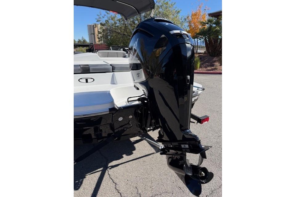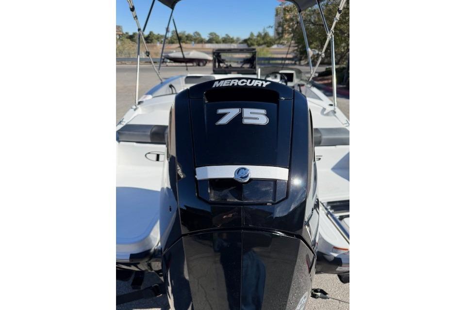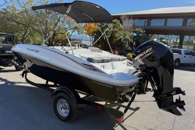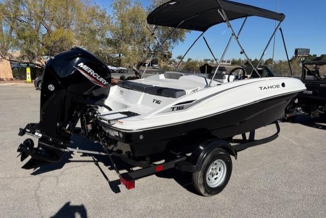 The 2026 TAHOE® T16 comes standard with a 60hp Mercury® ELPT FourStroke outboard motor and has a recommended maximum 75hp rating. This model is packaged with a trailer.