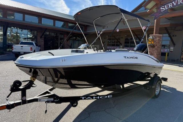 Wade into the world of sport boats with the 2026 TAHOE® T16! This affordable introduction to the TAHOE® family is a 6-passenger sports boat built to perform. Its POWERGLIDE® hull design features HYDROSTEP strakes that deliver exciting and stable riding experiences. Use the 7" TAHOE CRUISE touch screen to monitor GPS-accurate speed, water depth, your motor's vitals, and more. Opt for the available TurboSwing® to prepare your T16 for watersports.