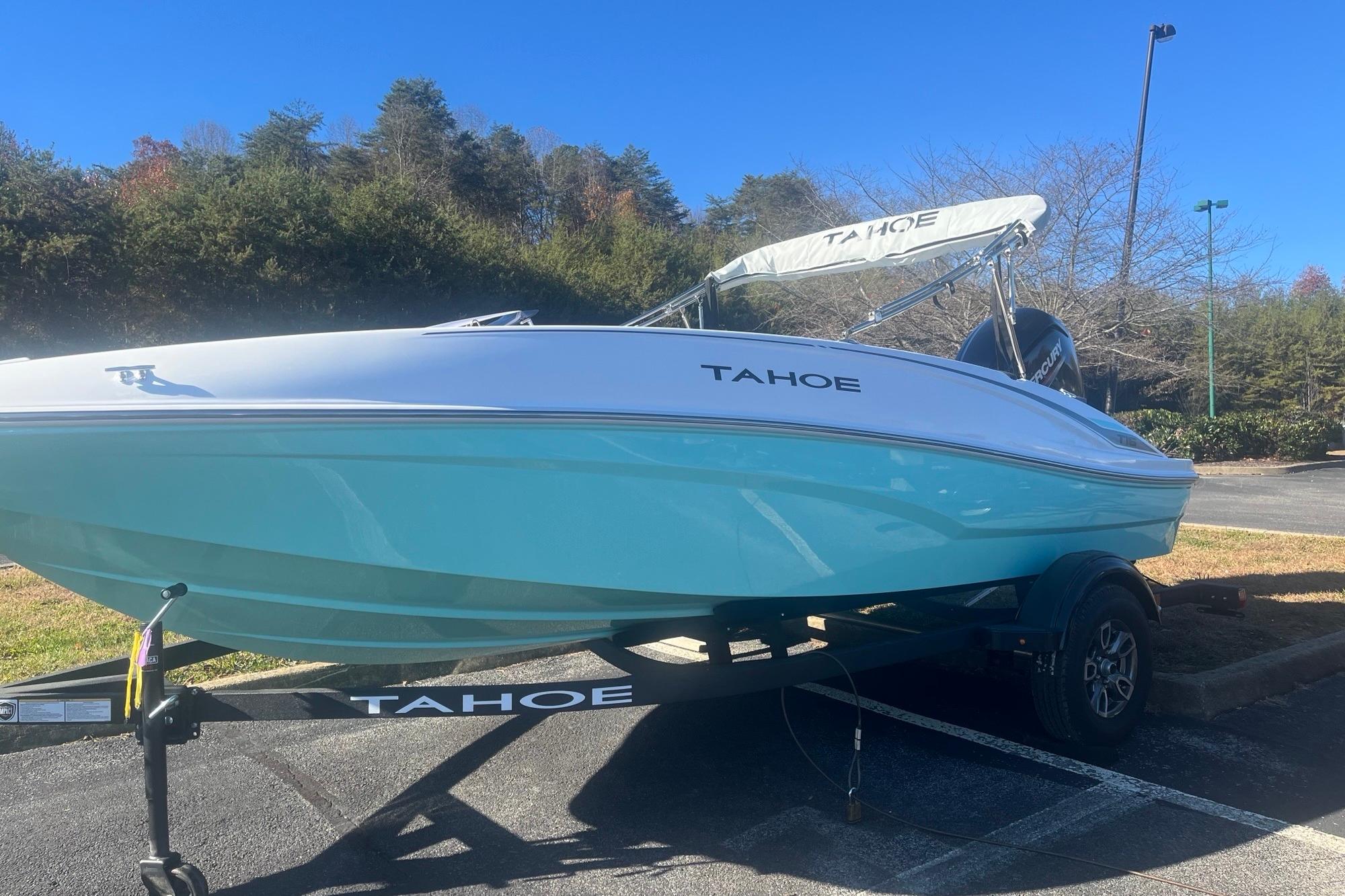 The 2026 TAHOE® T16 comes standard with a 60hp Mercury® ELPT FourStroke outboard motor and has a recommended maximum 75hp rating. This model is packaged with a trailer.
