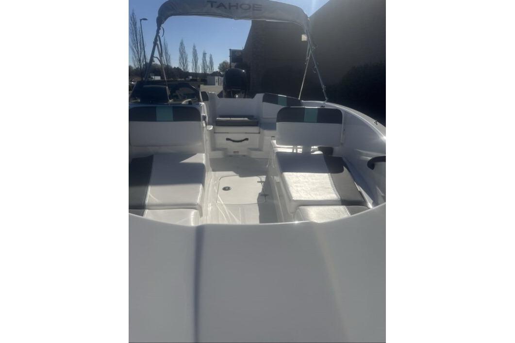 Wade into the world of sport boats with the 2026 TAHOE® T16! This affordable introduction to the TAHOE® family is a 6-passenger sports boat built to perform. Its POWERGLIDE® hull design features HYDROSTEP strakes that deliver exciting and stable riding experiences. Use the 7" TAHOE CRUISE touch screen to monitor GPS-accurate speed, water depth, your motor's vitals, and more. Opt for the available TurboSwing® to prepare your T16 for watersports.