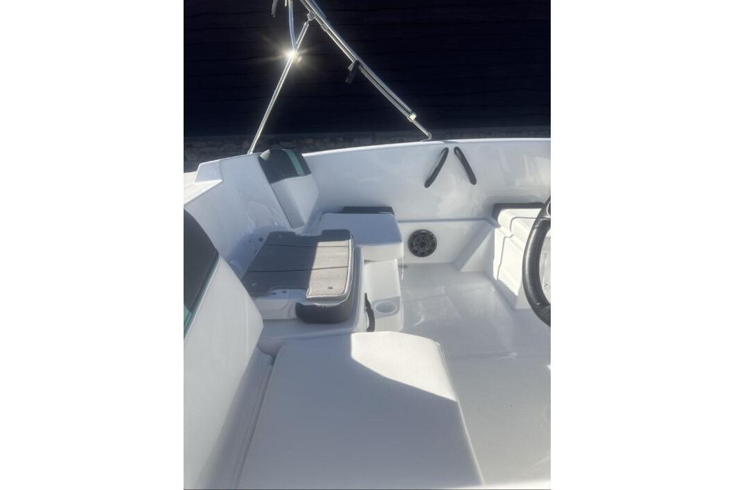 Relax on the water in this boat's midship bench seating and twin forward lounges with under-seat storage. The bow seats have reversible backrests that turn them into spotter seats. Lay out on the aft sun pad when you find your cove. The 4-step telescoping aft boarding ladder makes it easy to get back on the swim platform after diving into the water. Flip-up seat cushions and flip-down seat backs let passengers board the boat without stepping on upholstery. Claim 1 of the 9 drink holders, find your song on the 2-speaker Kicker® stereo, and search for excitement on the water!