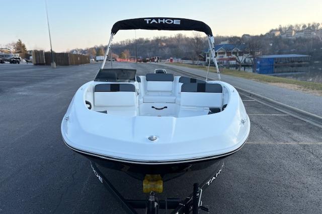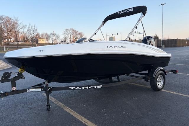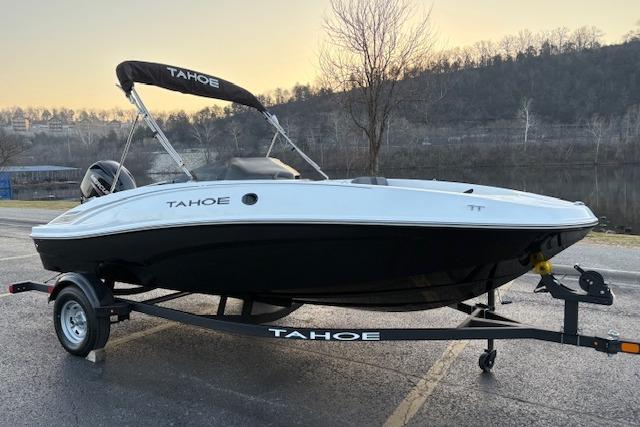 Wade into the world of sport boats with the 2026 TAHOE® T16! This affordable introduction to the TAHOE® family is a 6-passenger sports boat built to perform. Its POWERGLIDE® hull design features HYDROSTEP strakes that deliver exciting and stable riding experiences. Use the 7" TAHOE CRUISE touch screen to monitor GPS-accurate speed, water depth, your motor's vitals, and more. Opt for the available TurboSwing® to prepare your T16 for watersports.