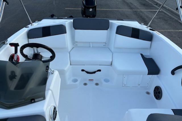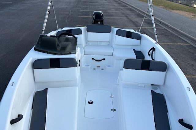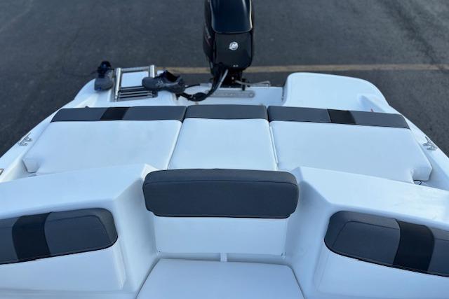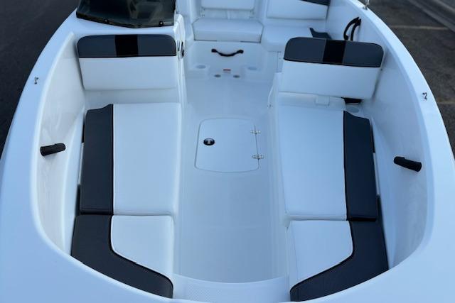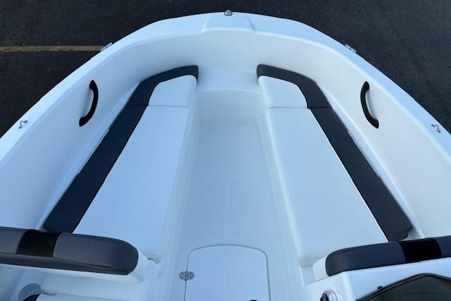 Relax on the water in this boat's midship bench seating and twin forward lounges with under-seat storage. The bow seats have reversible backrests that turn them into spotter seats. Lay out on the aft sun pad when you find your cove. The 4-step telescoping aft boarding ladder makes it easy to get back on the swim platform after diving into the water. Flip-up seat cushions and flip-down seat backs let passengers board the boat without stepping on upholstery. Claim 1 of the 9 drink holders, find your song on the 2-speaker Kicker® stereo, and search for excitement on the water!