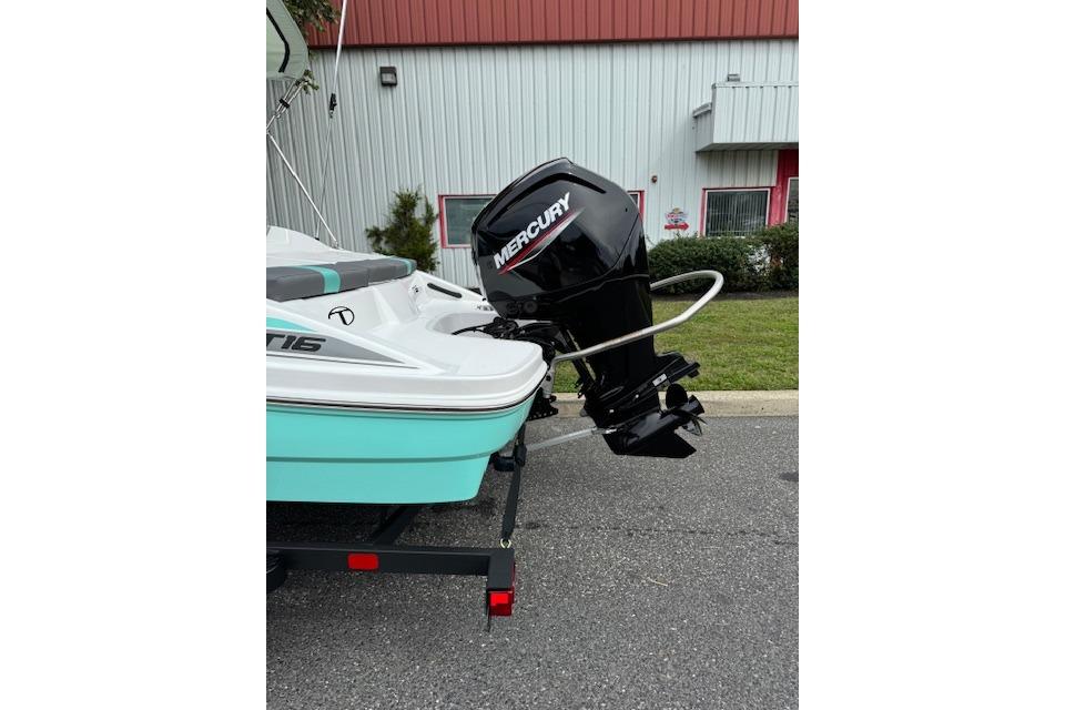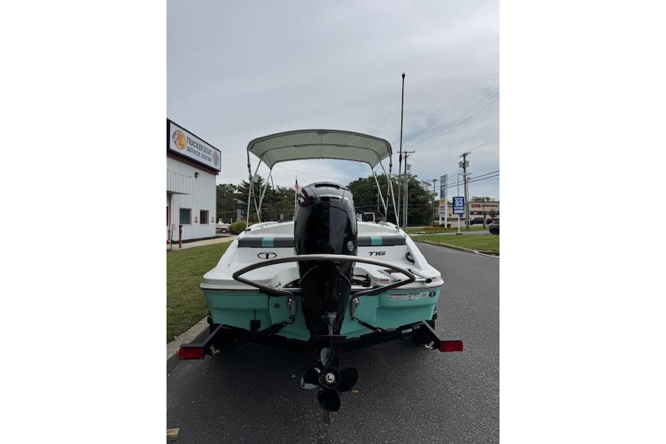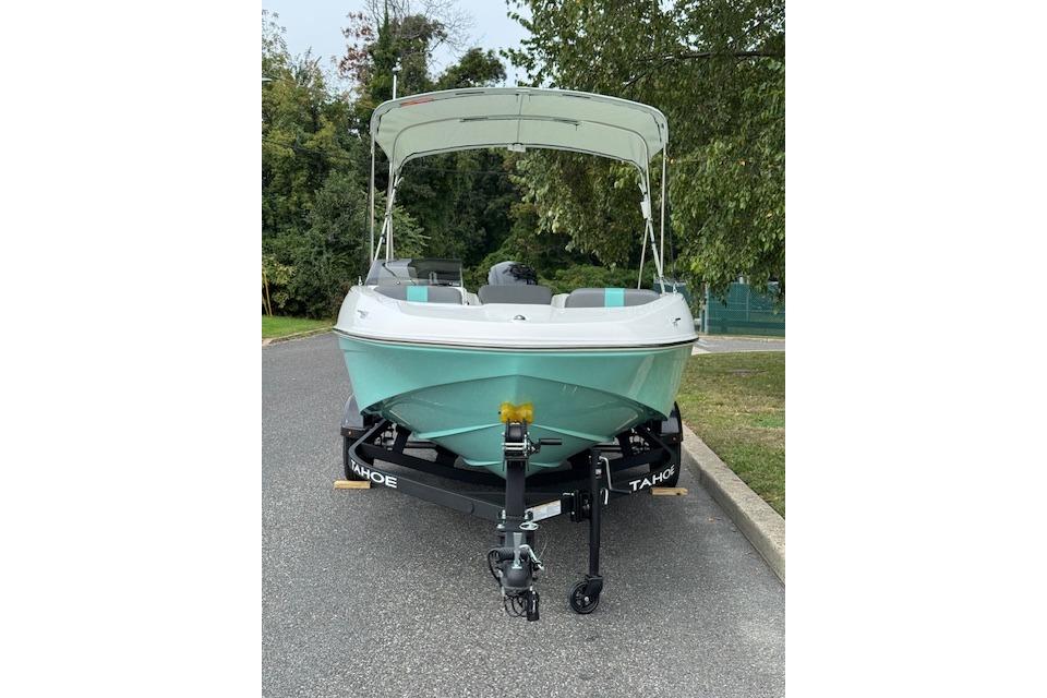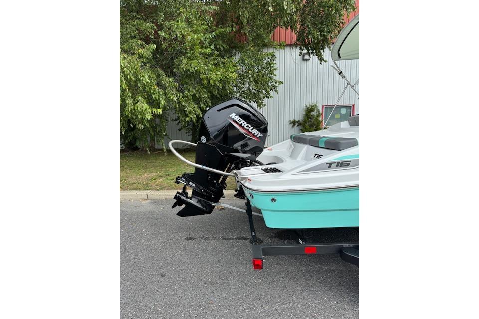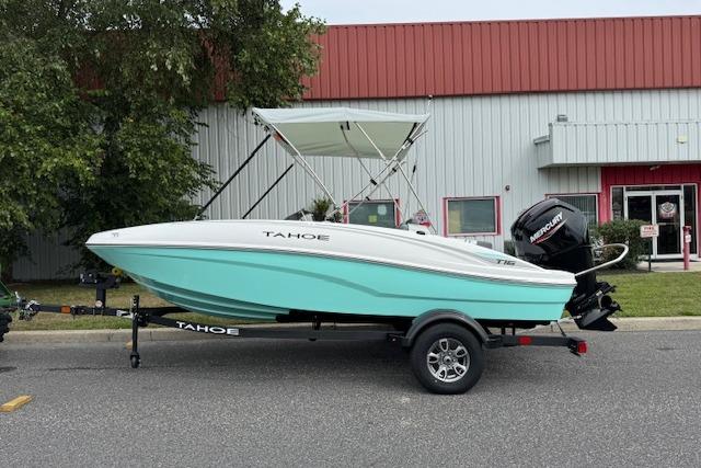 The 2026 TAHOE® T16 comes standard with a 60hp Mercury® ELPT FourStroke outboard motor and has a recommended maximum 75hp rating. This model is packaged with a trailer.