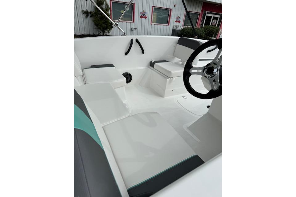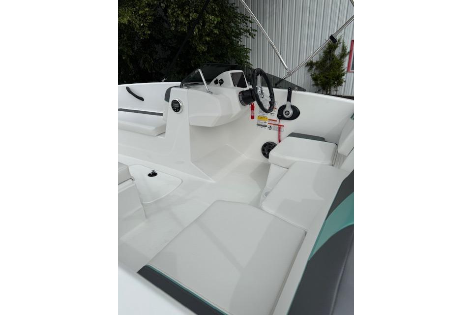 Relax on the water in this boat's midship bench seating and twin forward lounges with under-seat storage. The bow seats have reversible backrests that turn them into spotter seats. Lay out on the aft sun pad when you find your cove. The 4-step telescoping aft boarding ladder makes it easy to get back on the swim platform after diving into the water. Flip-up seat cushions and flip-down seat backs let passengers board the boat without stepping on upholstery. Claim 1 of the 9 drink holders, find your song on the 2-speaker Kicker® stereo, and search for excitement on the water!