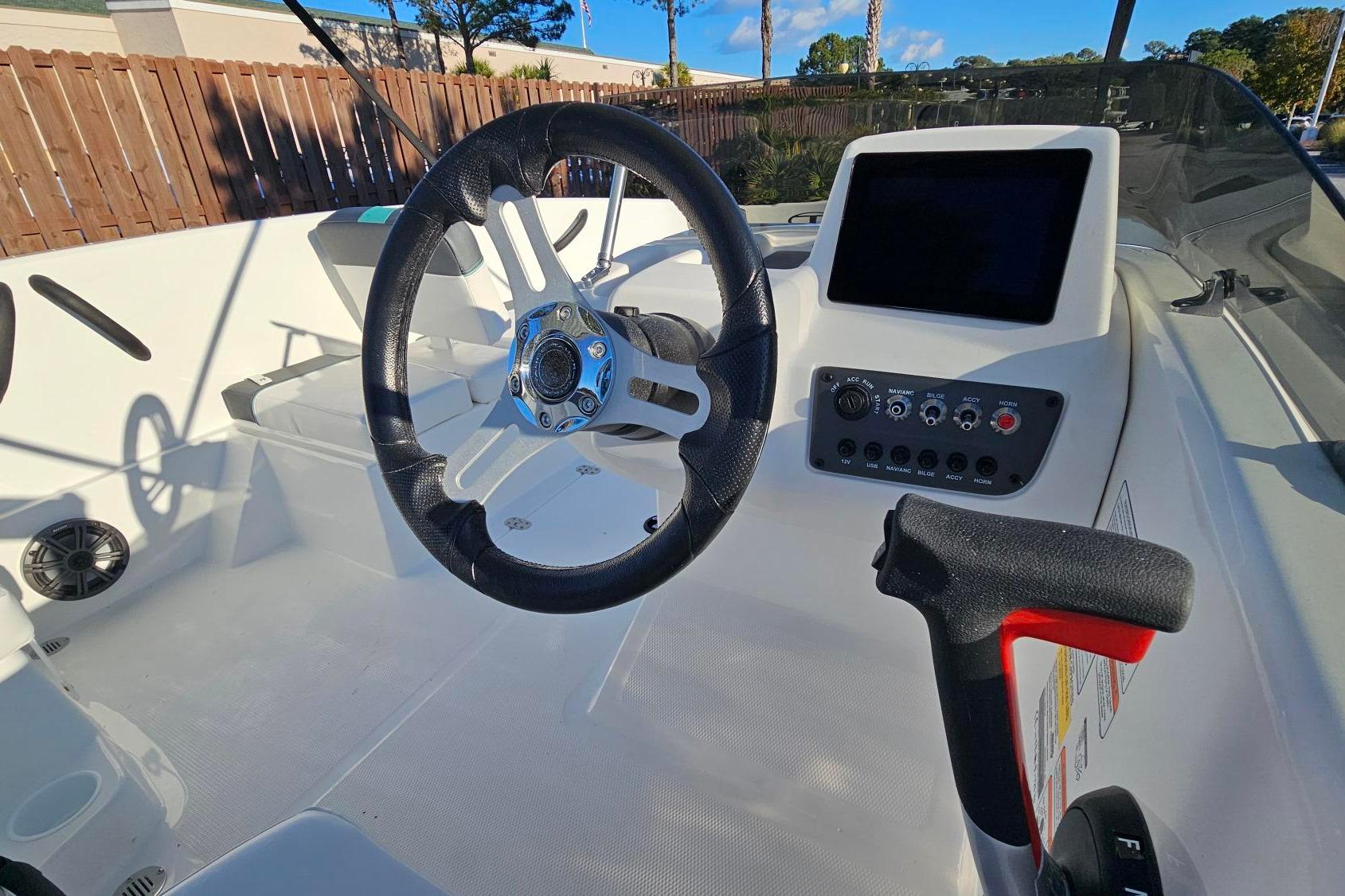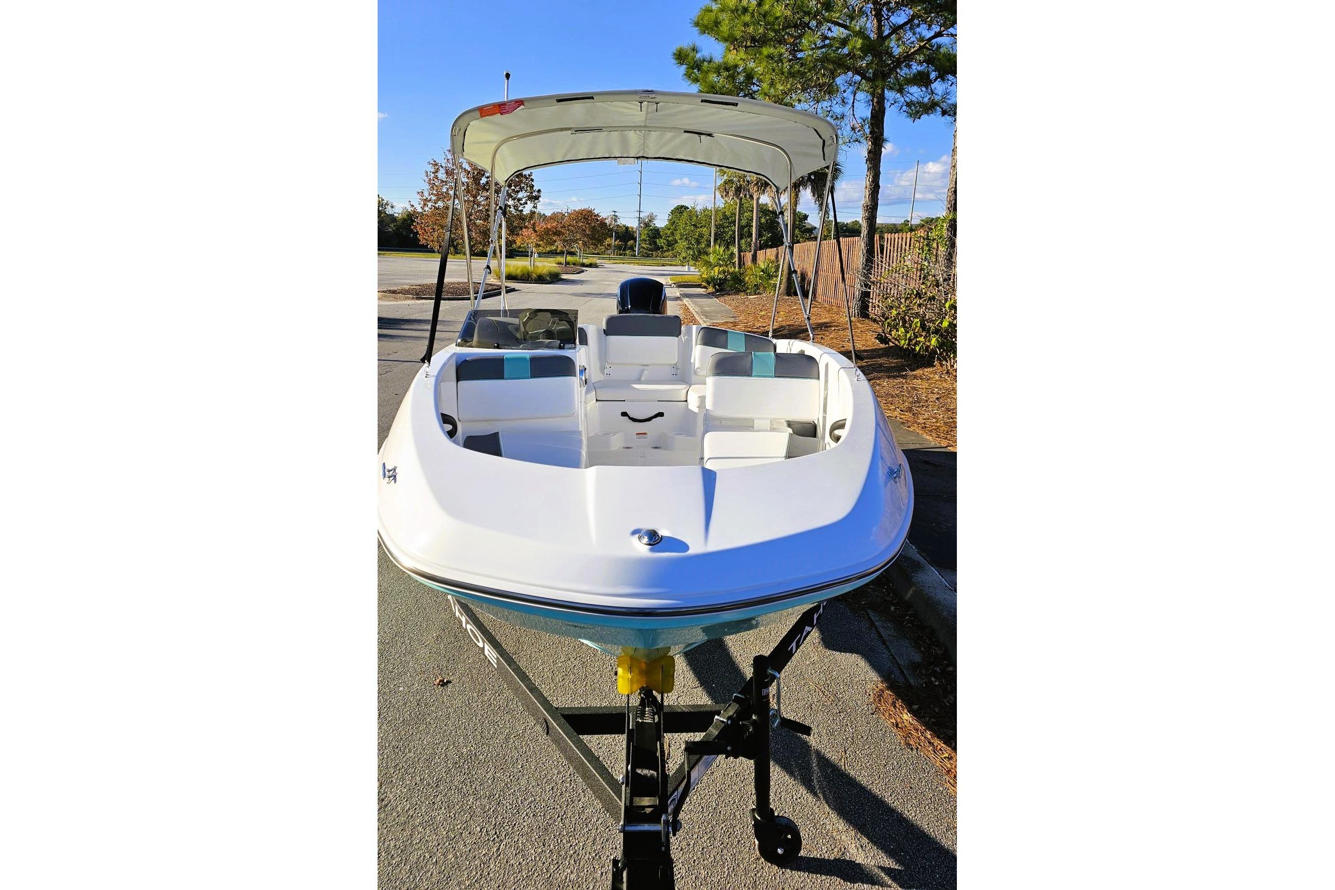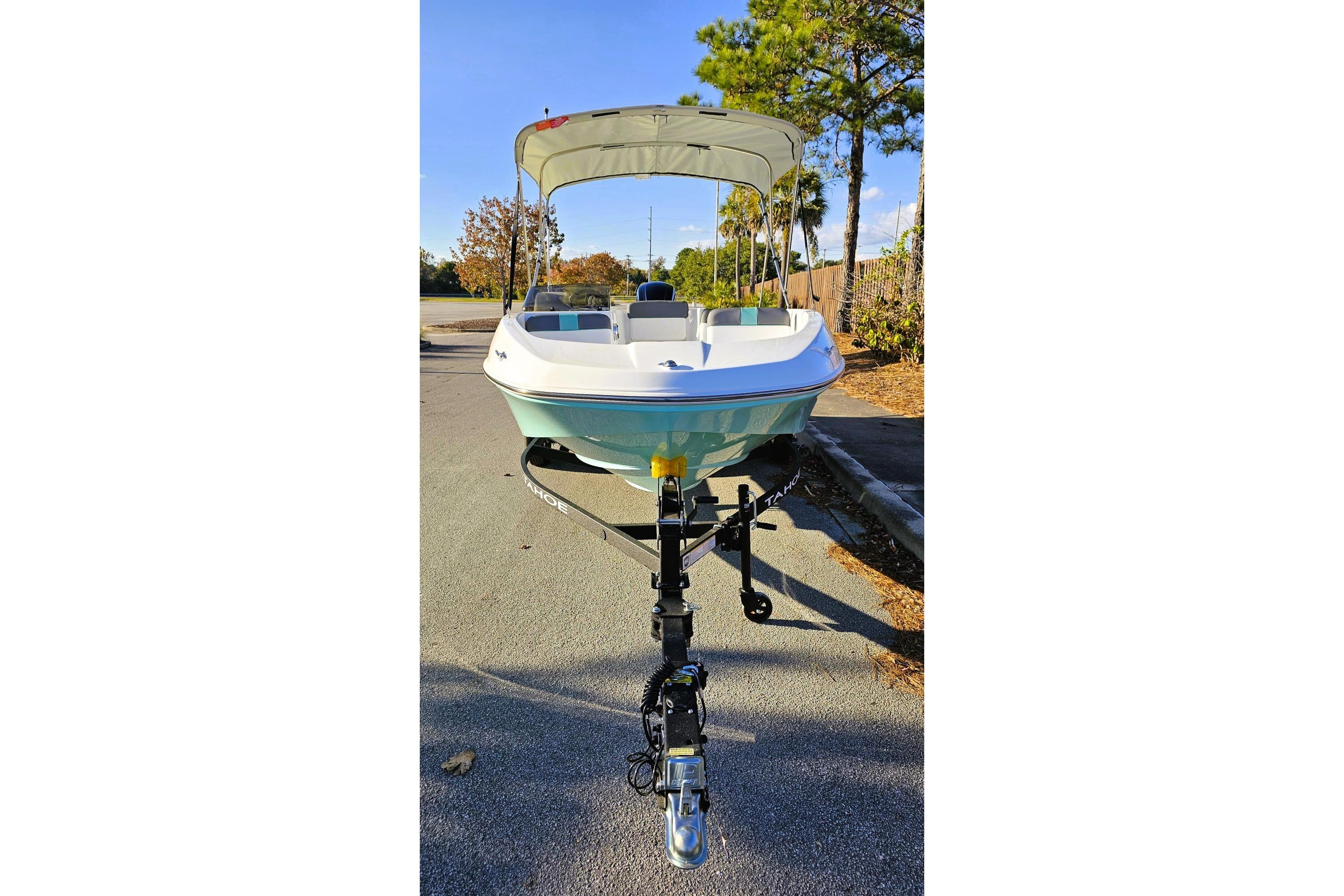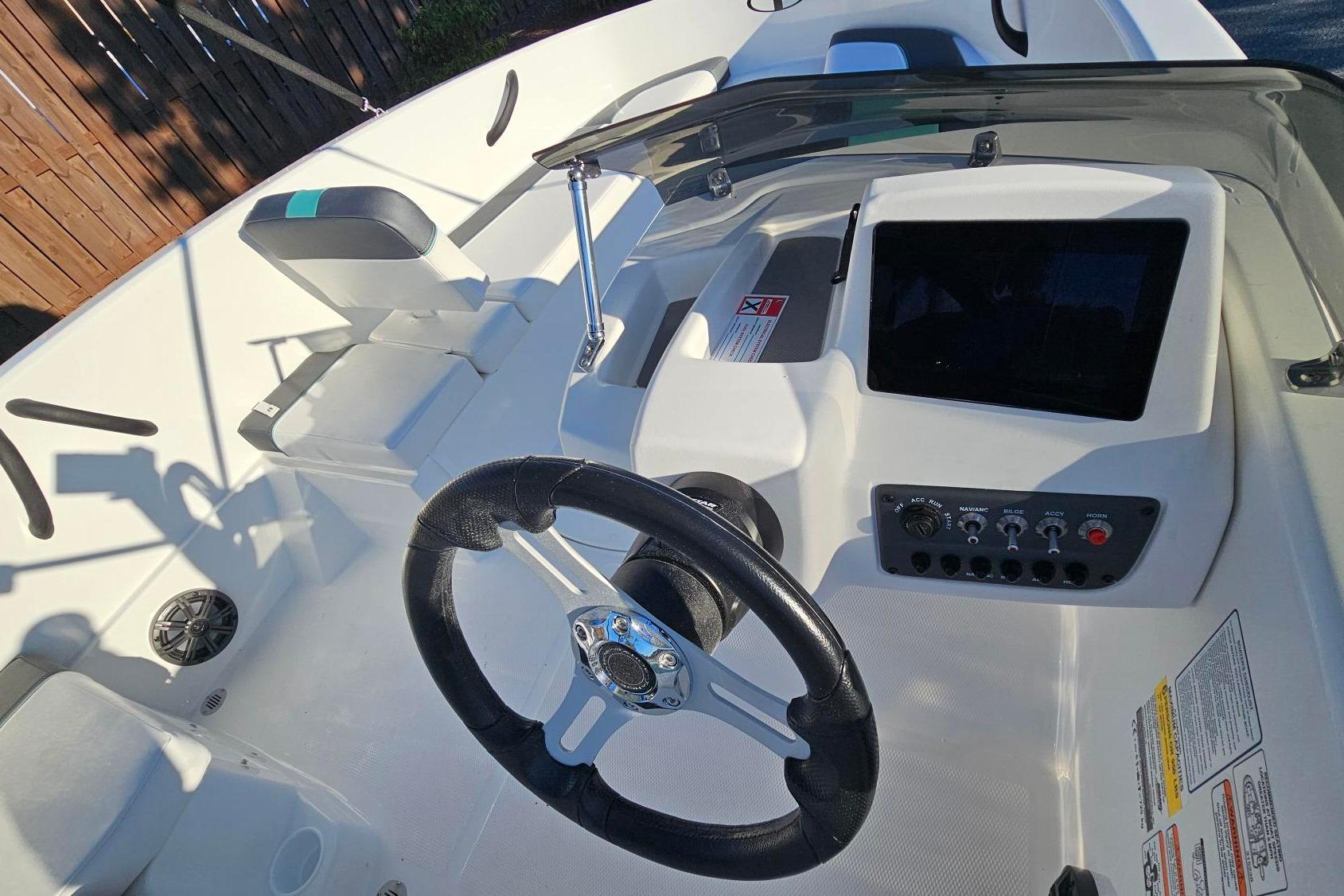 HYDRAULIC STEERING, STERN MOUNT TURBO SWING, STAINLESS STEEL BIMINI TOP, RATCHET MOORING COVER, 13" ALUMINUM WHEEL UPGRADE, TRAILER BRAKES, MERCURY SMART CRAFT CONNECT MOBILE.