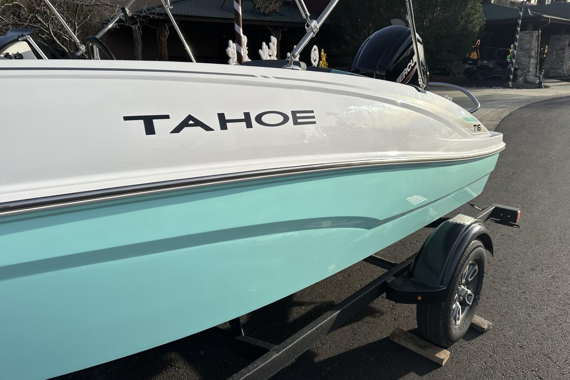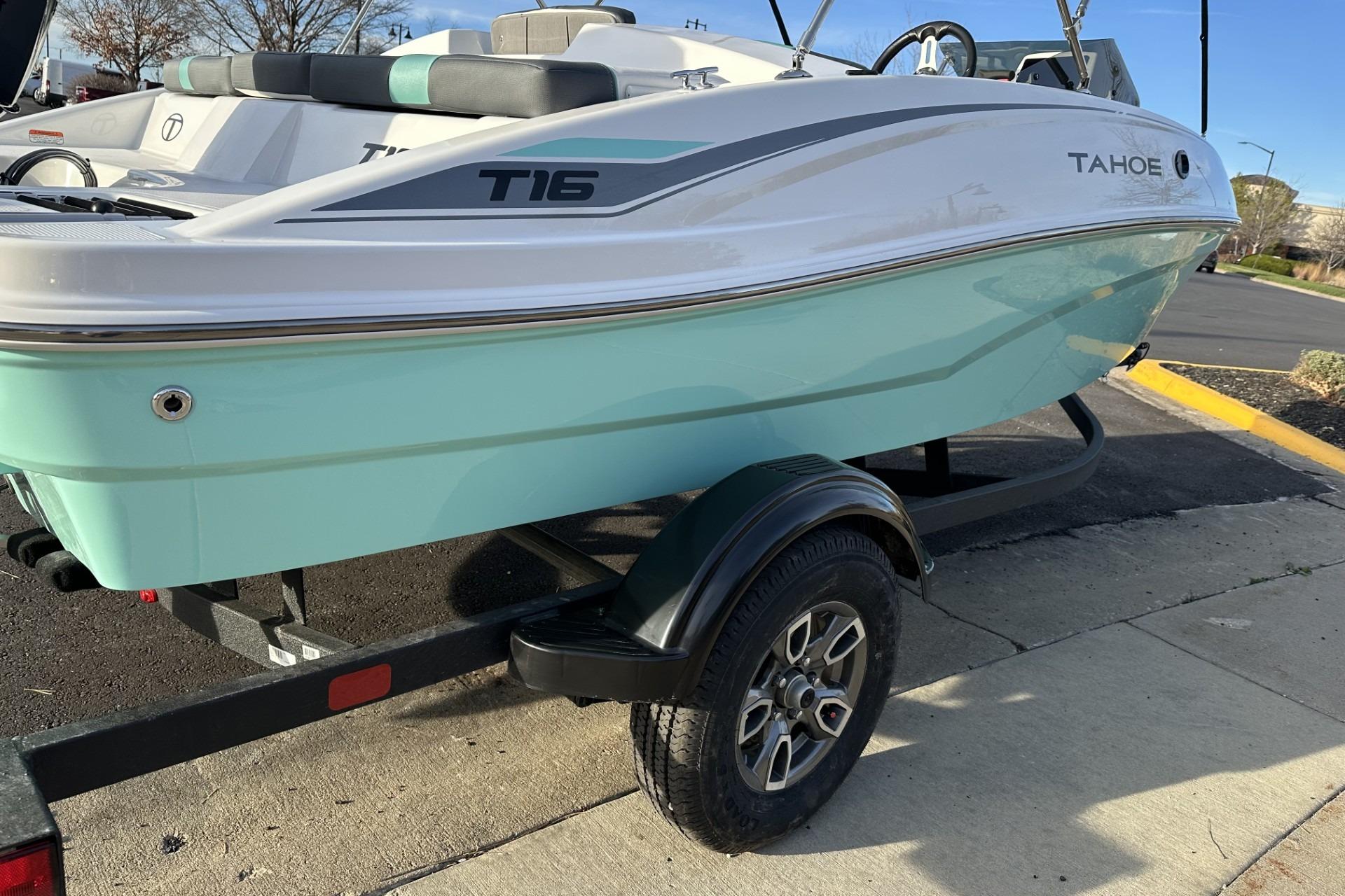 Wade into the world of sport boats with the 2026 TAHOE® T16! This affordable introduction to the TAHOE® family is a 6-passenger sports boat built to perform. Its POWERGLIDE® hull design features HYDROSTEP strakes that deliver exciting and stable riding experiences. Use the 7" TAHOE CRUISE touch screen to monitor GPS-accurate speed, water depth, your motor's vitals, and more. Opt for the available TurboSwing® to prepare your T16 for watersports.