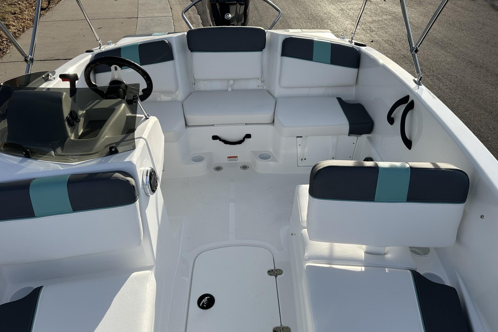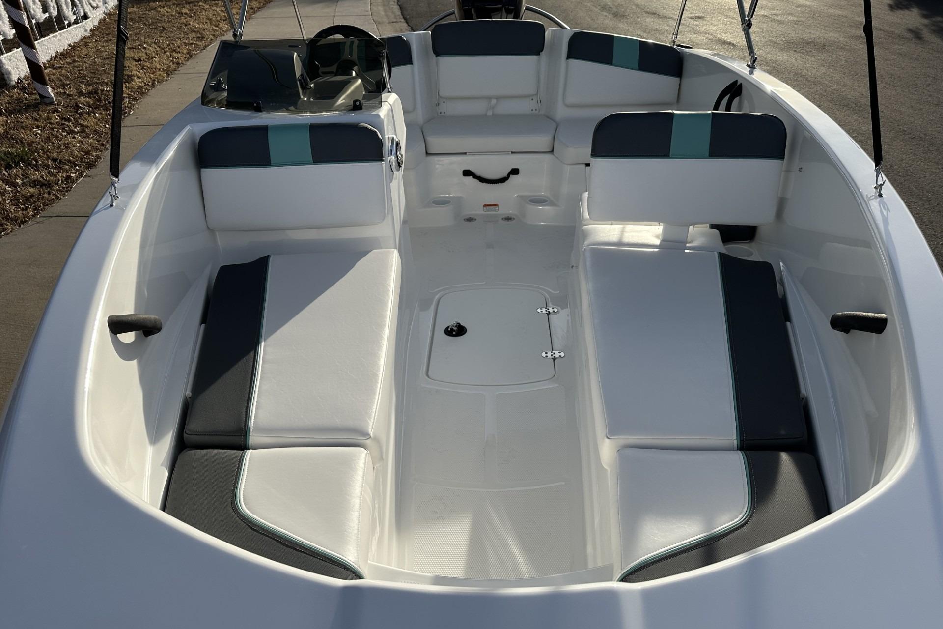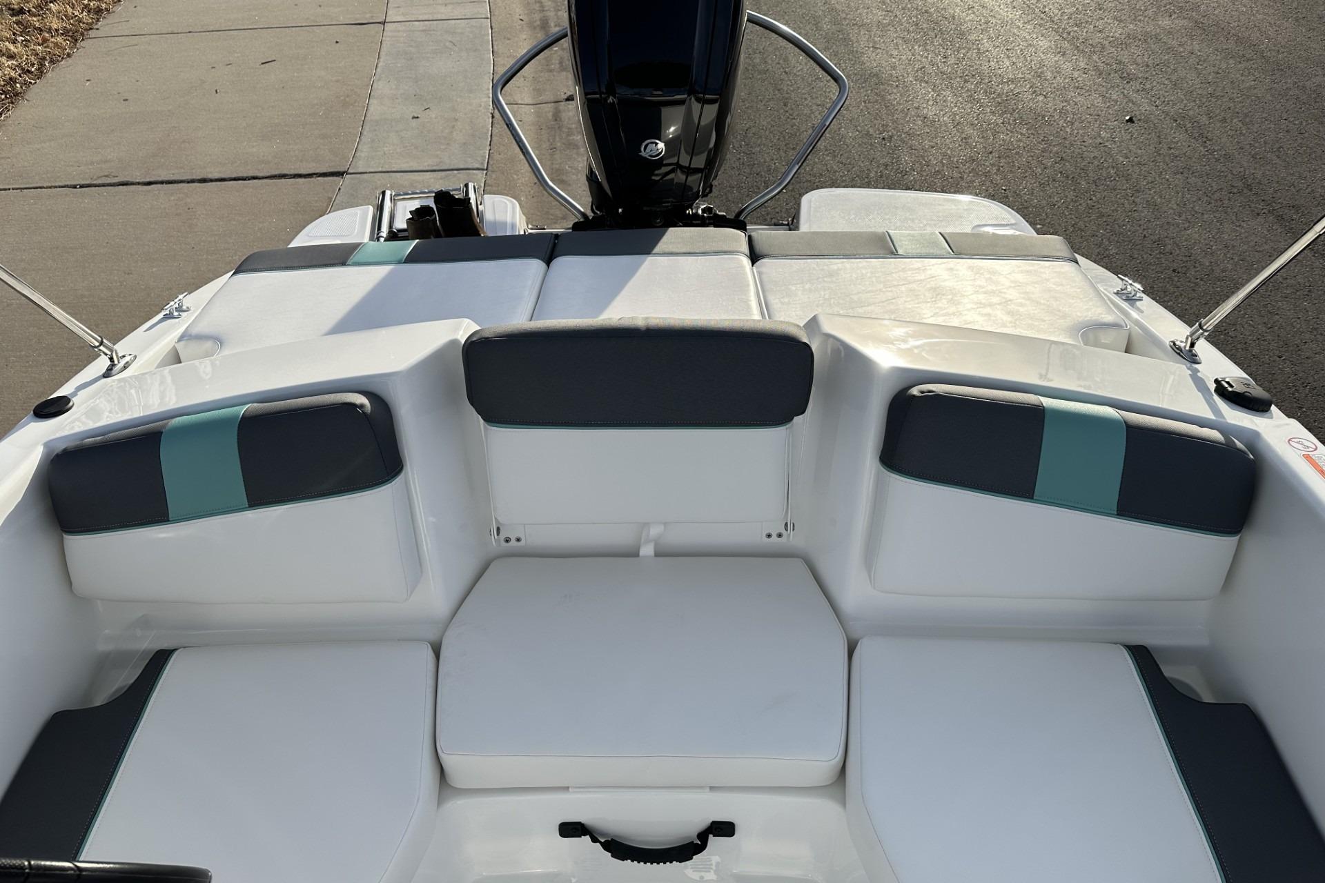 Included Options: Solid Hull Color - Mint, SeaStar Hydraulic Steering, TurboSwing Ski Tow Bar, Bimini Top, Trailerable Ratchet Cover, Brakes on Trailer, 13" Aluminum wheels upgrade