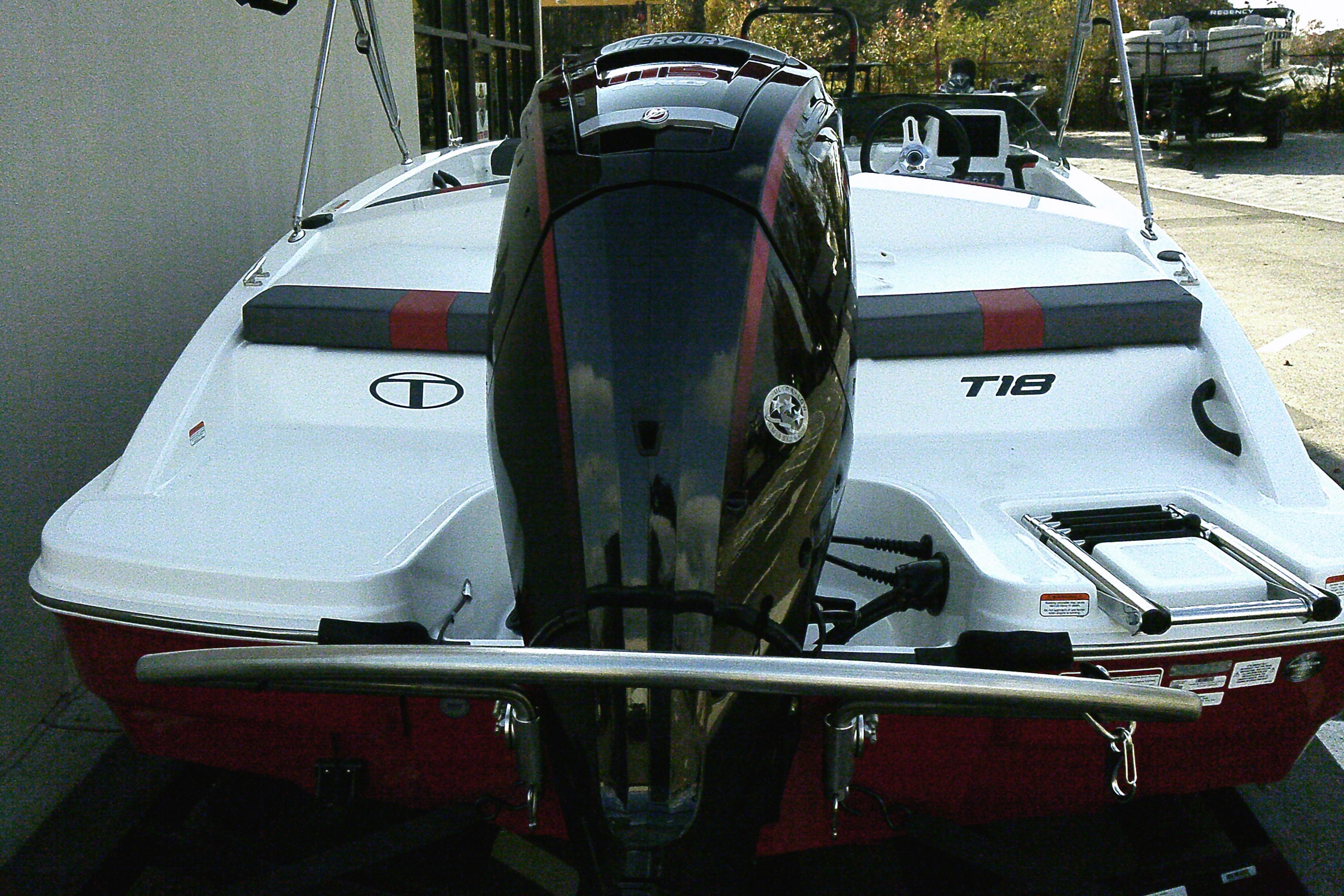 The 2026 TAHOE® T18 comes standard with a 90hp Mercury® ELPT FourStroke outboard motor and has a recommended maximum 115hp rating. This model is packaged with a trailer.